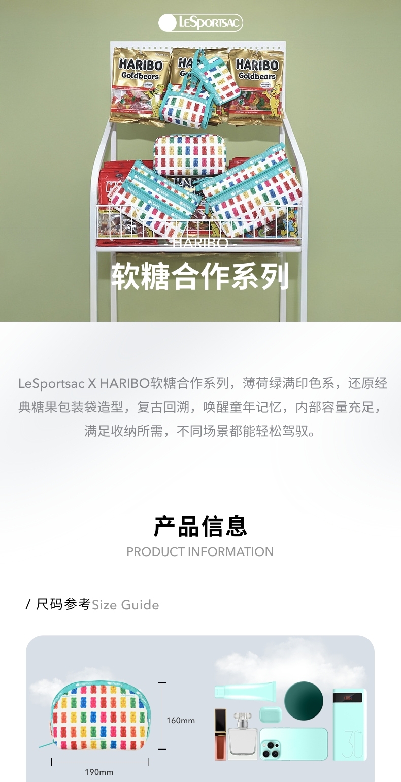 Lesportsac Lesportsac 25 New Model Haribo Cute Gummy Bear All-Over Print Cosmetic Bag Zipper Clutch Bag