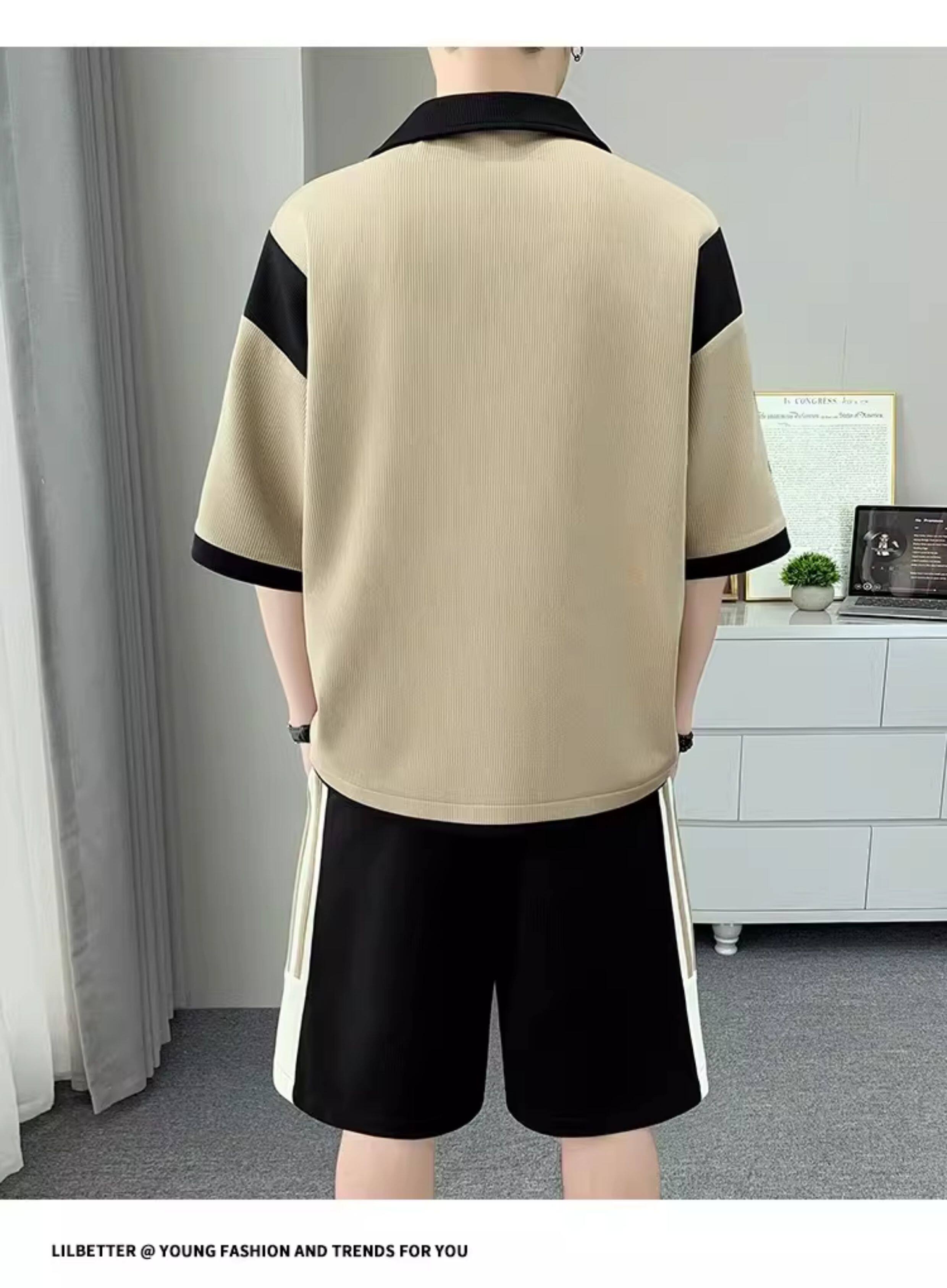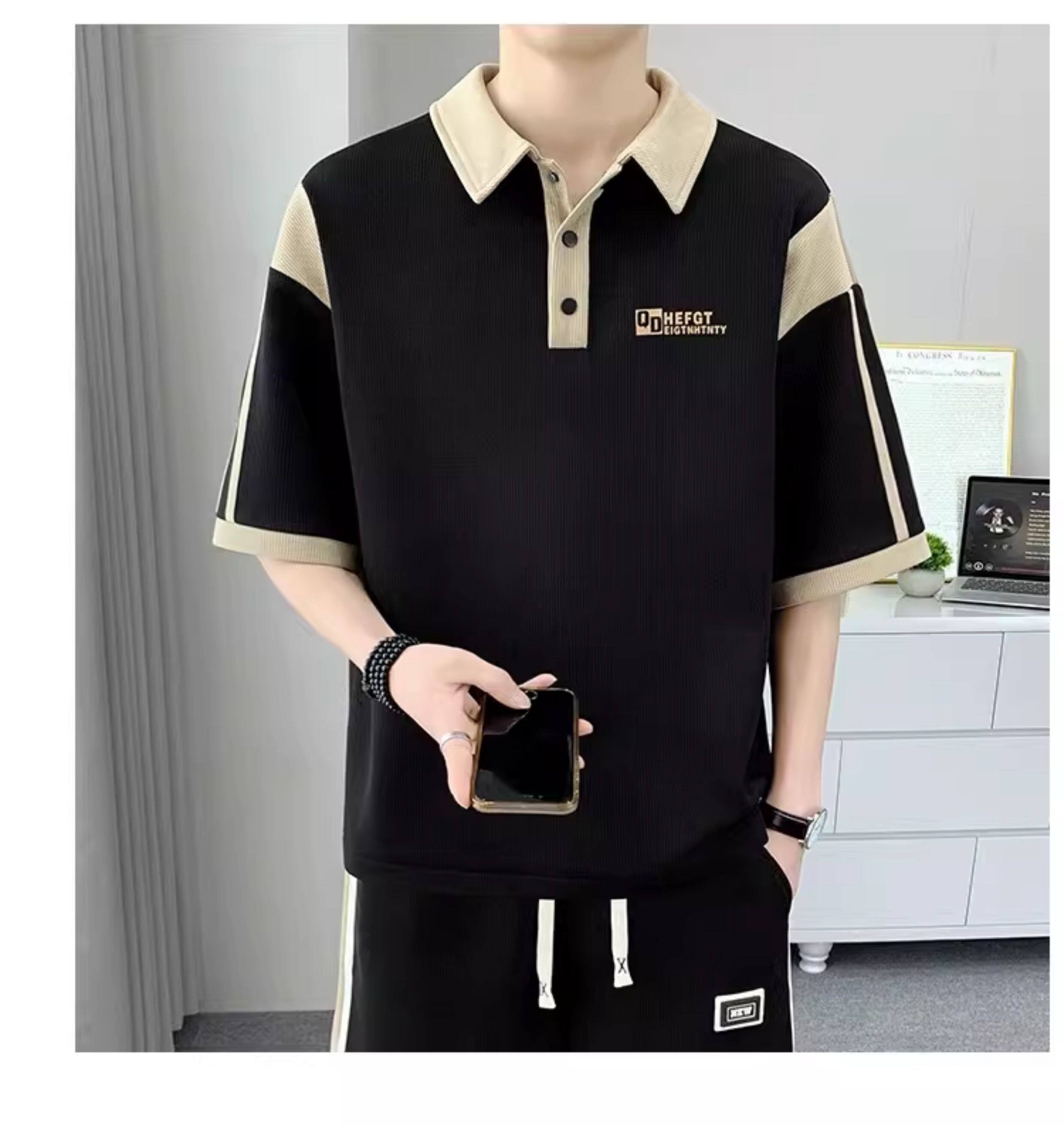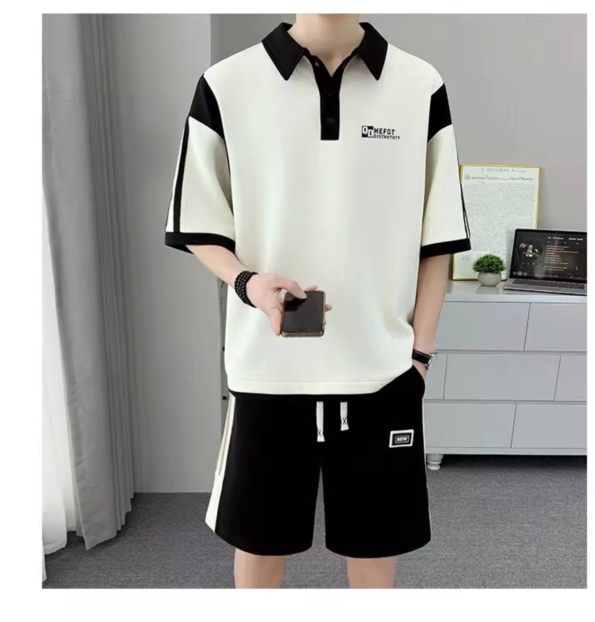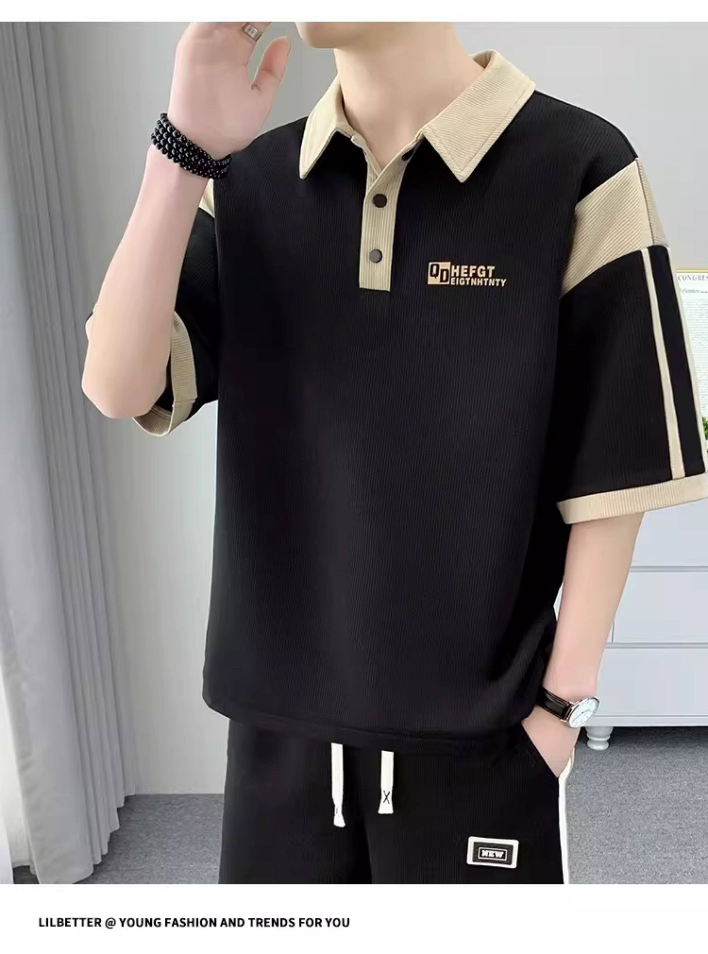 Men's Polo Shirt Set, Short-Sleeved Shorts Set, Summer Youth Lapel T-Shirt, Loose and Trendy Two-Piece Set