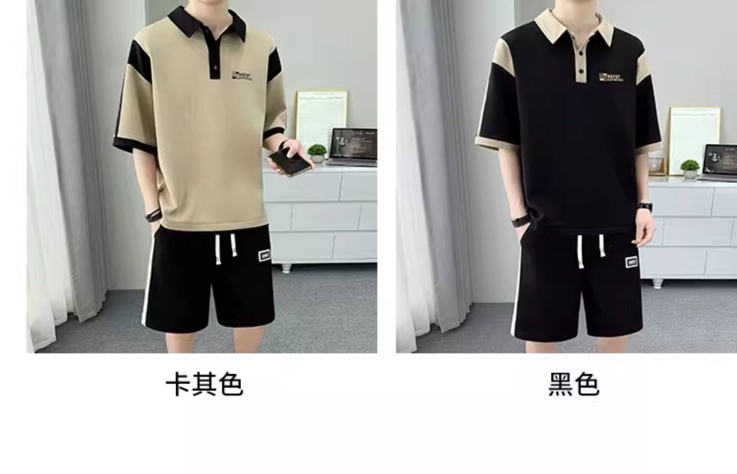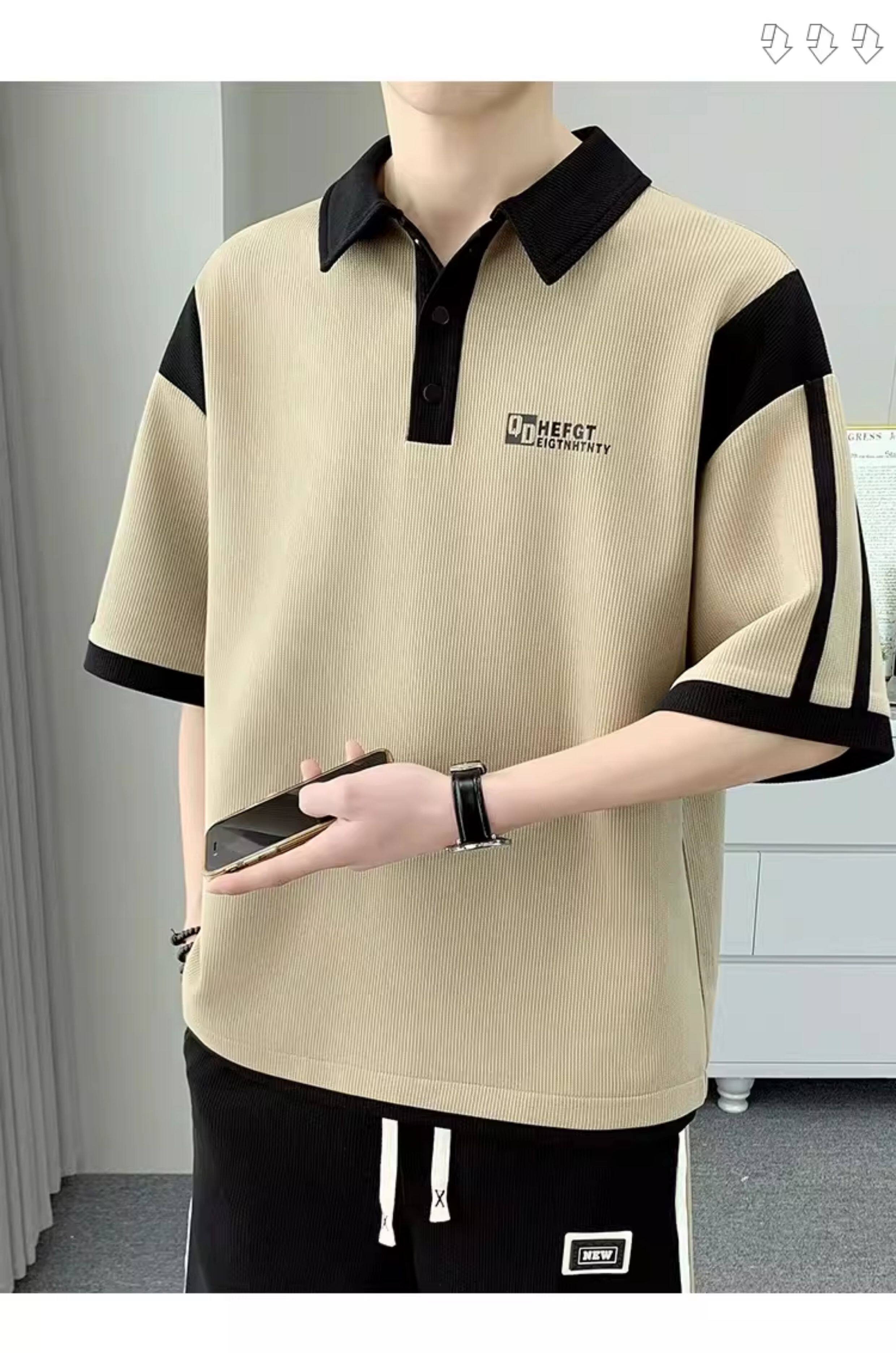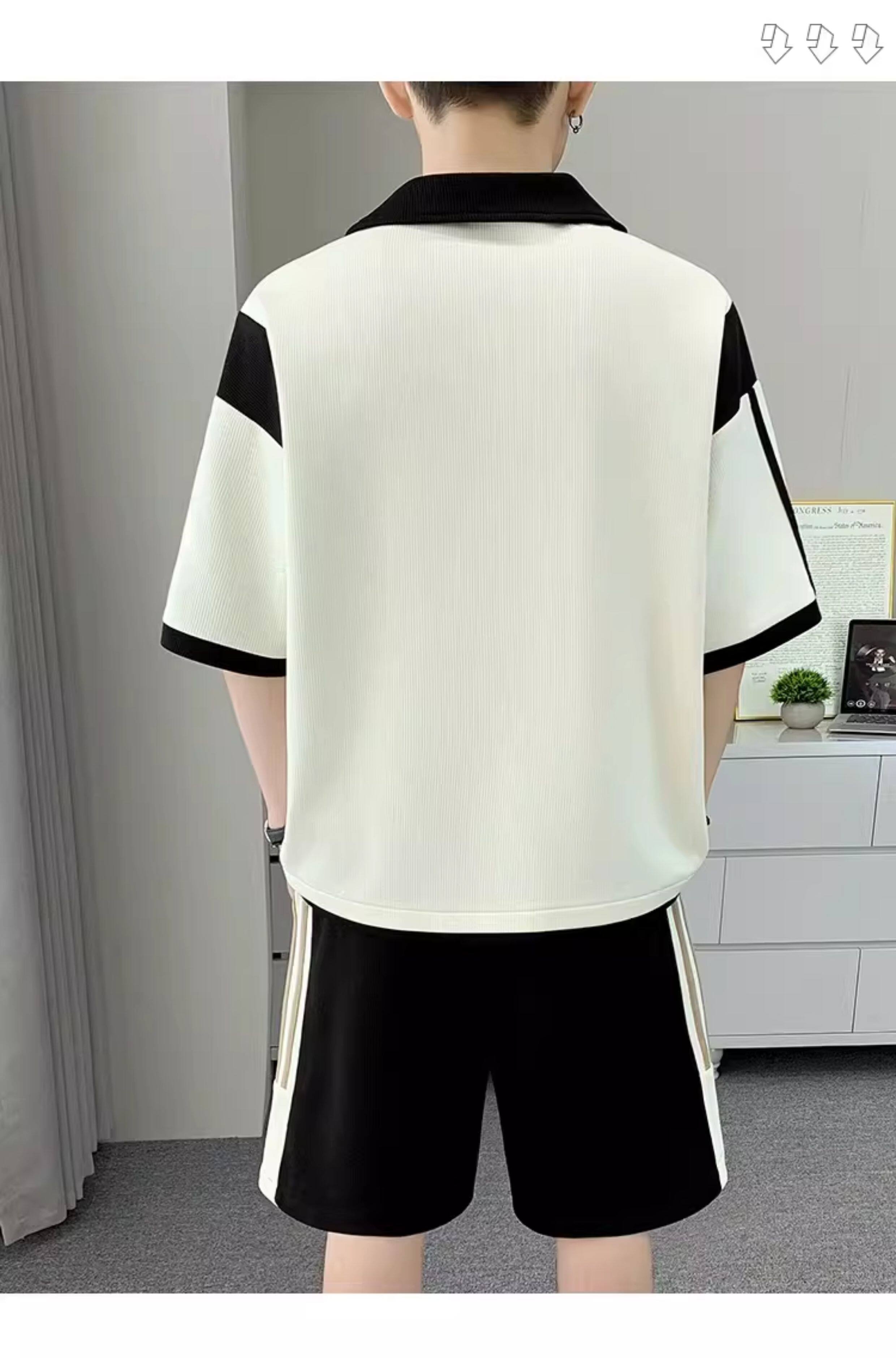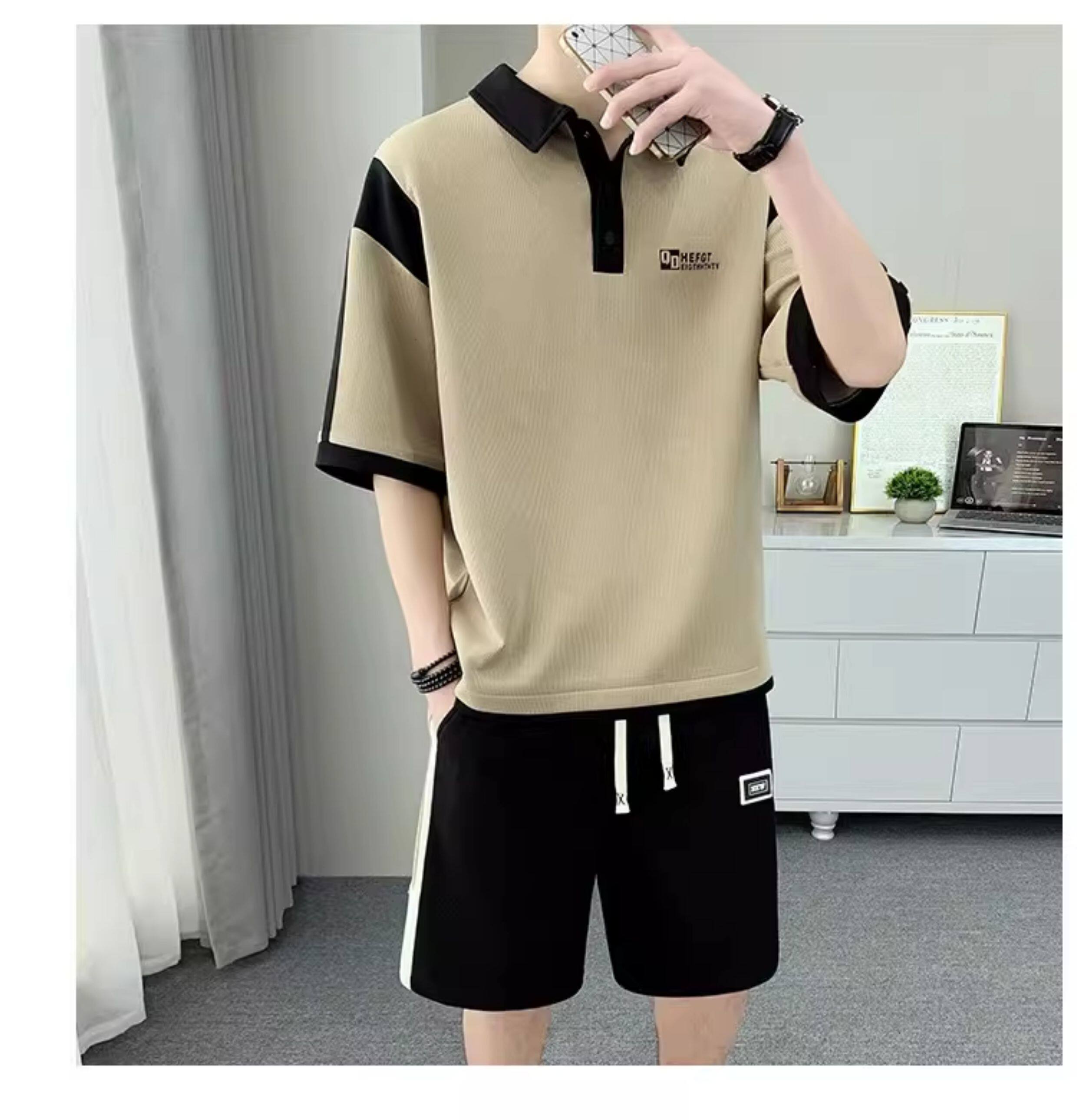 Men's Polo Shirt Set, Short-Sleeved Shorts Set, Summer Youth Lapel T-Shirt, Loose and Trendy Two-Piece Set