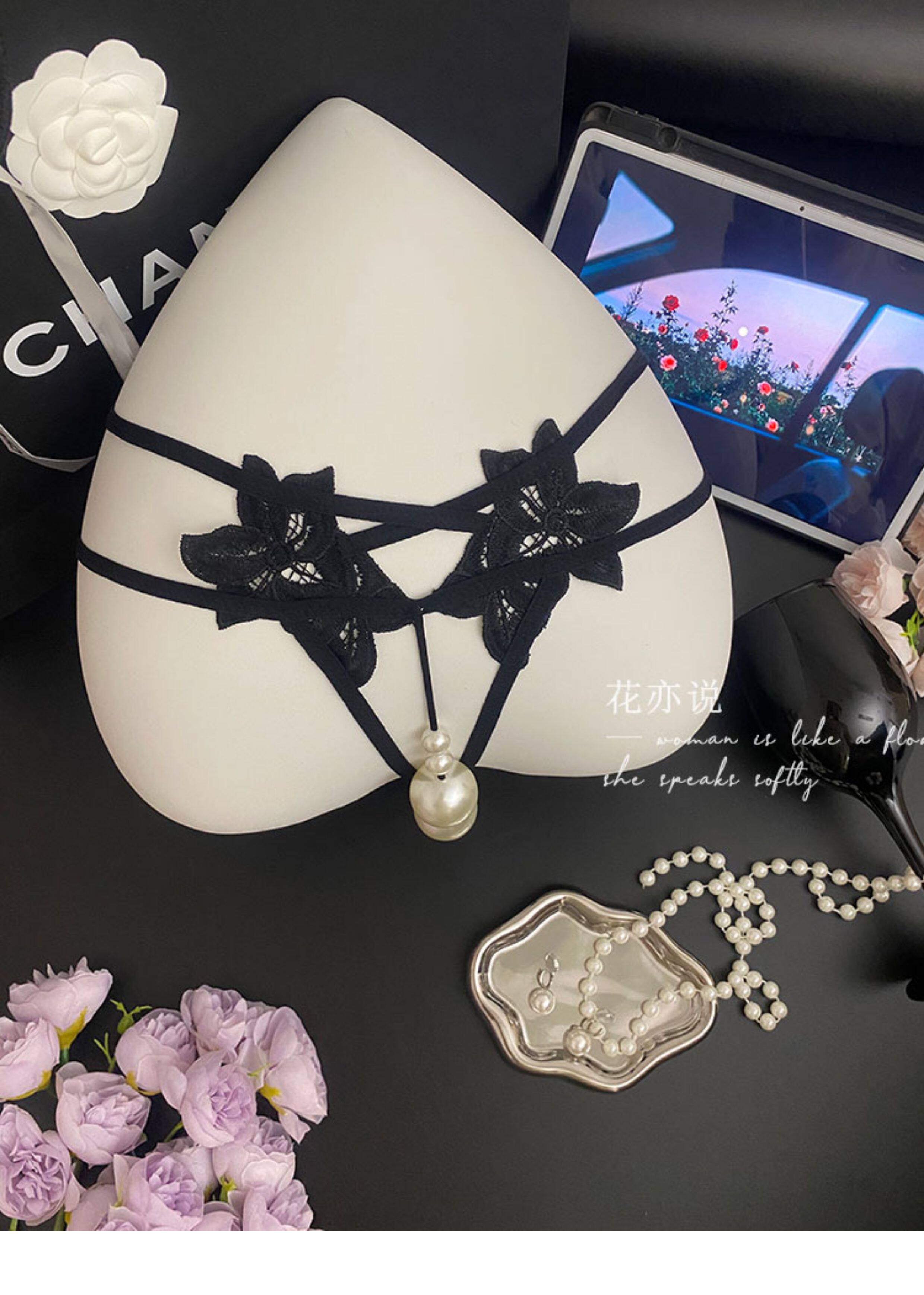 [Floral Plus Size] Large Pearl Diameter 2.5cm Sexy Lace Thong Women's Pure Desire Underwear 2025 New Style