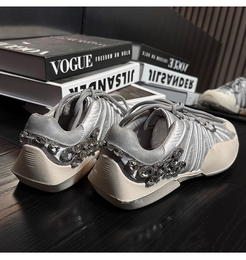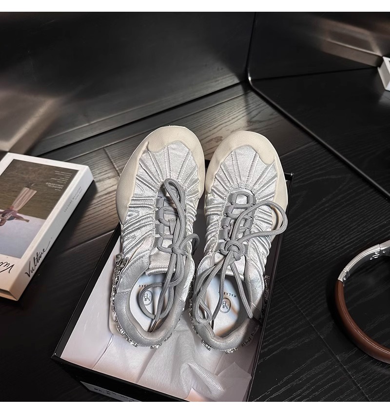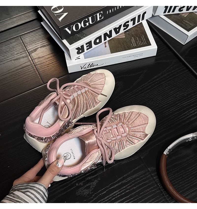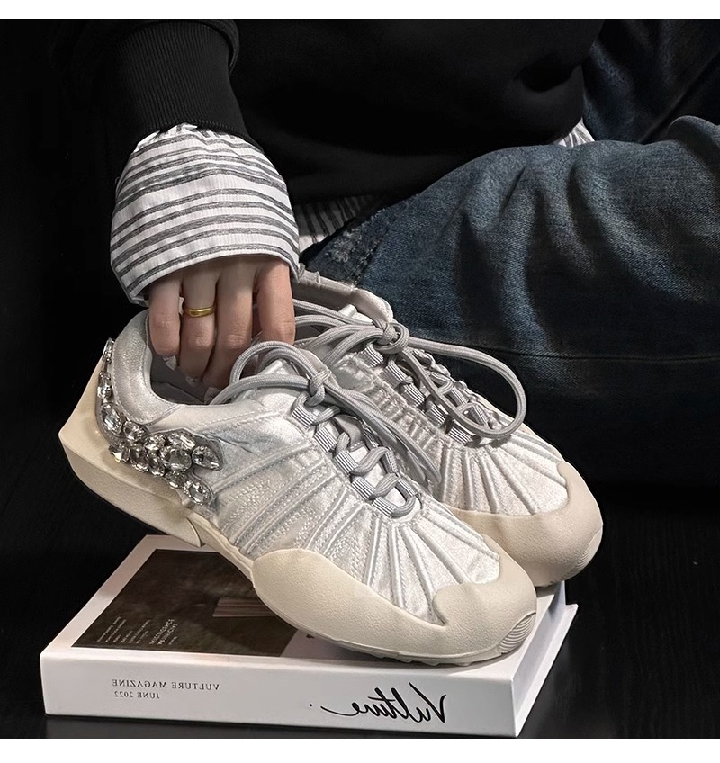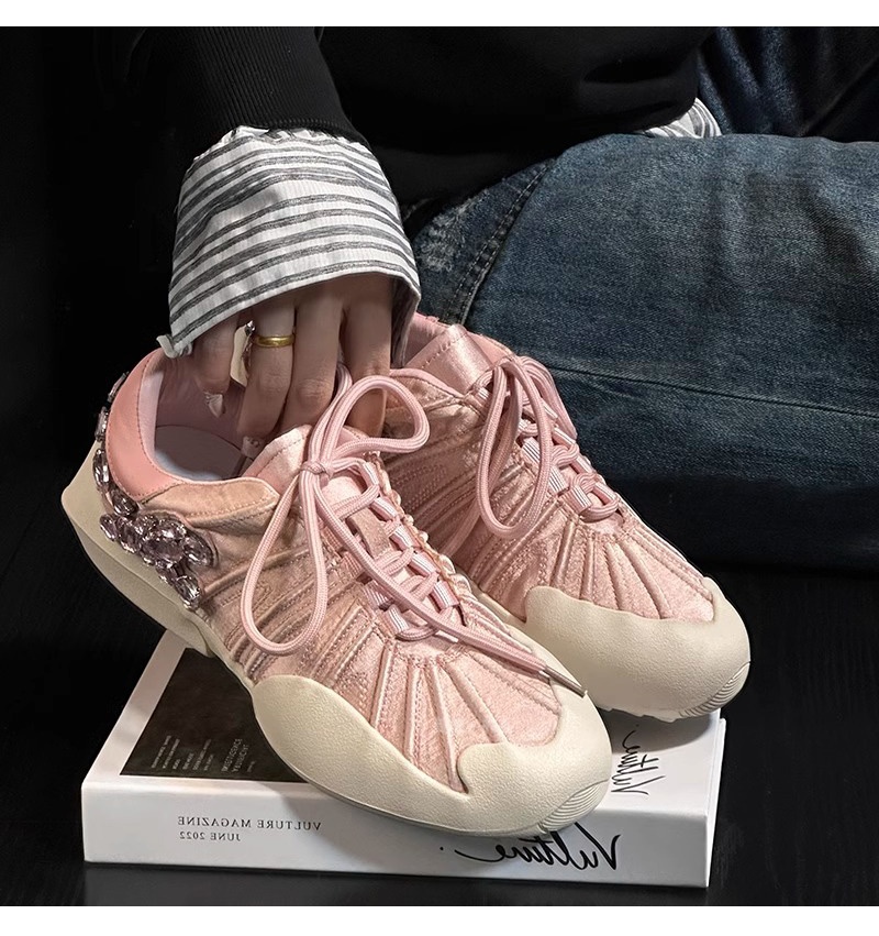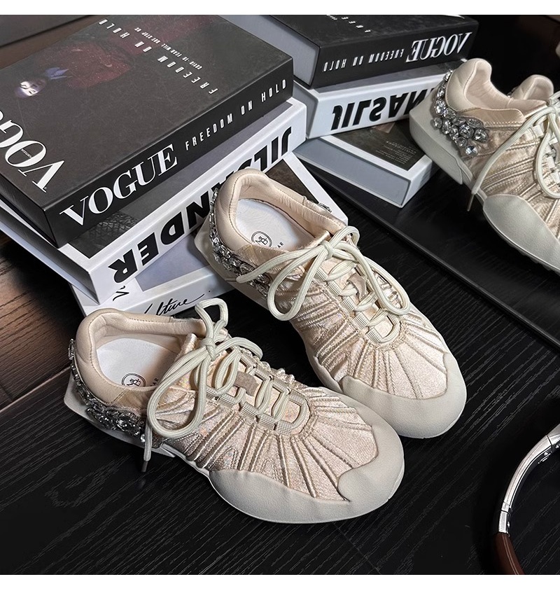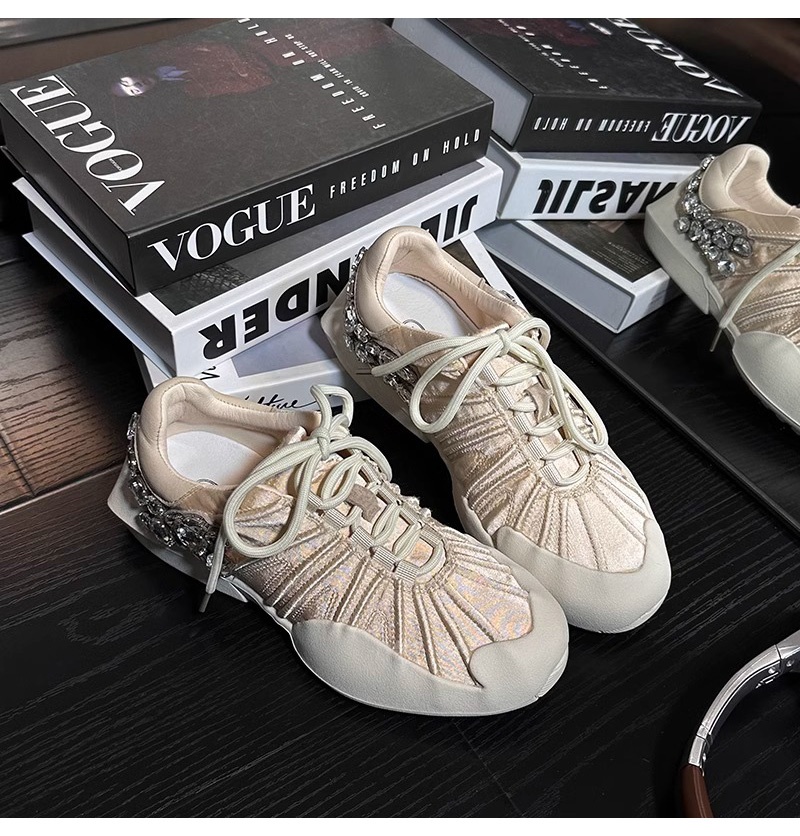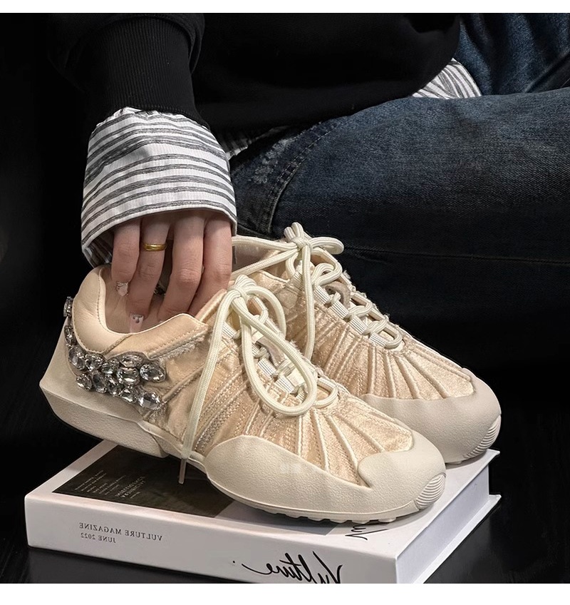Sanli Chou Cute Rhinestone Fabric Casual Shoes for Women 2025 Summer New Lace-Up Round Toe Flat Low-Top German Training Shoes