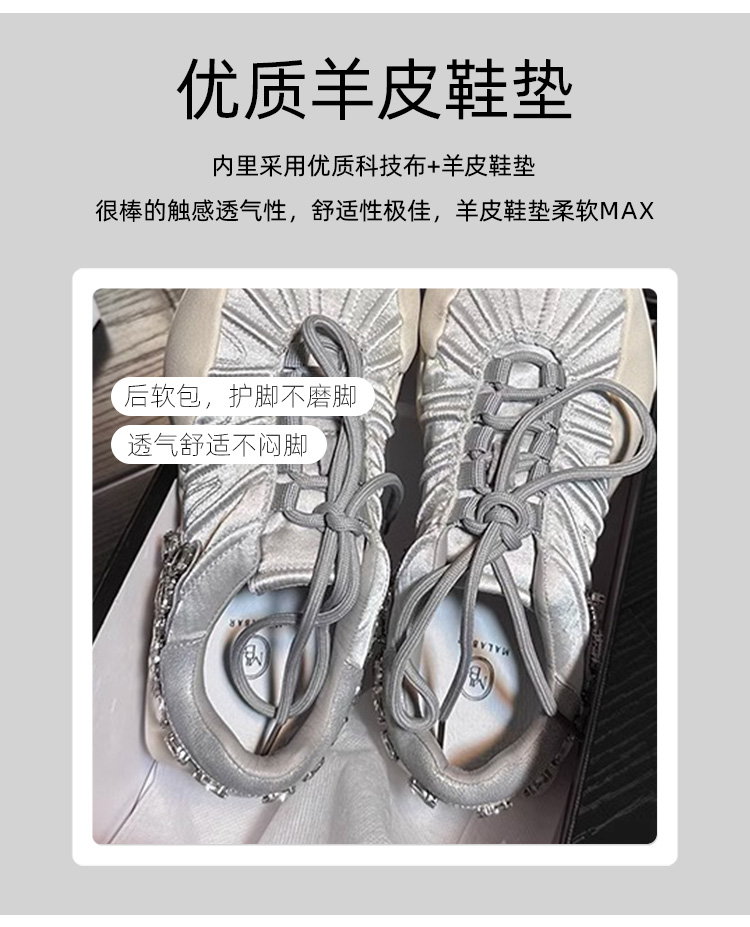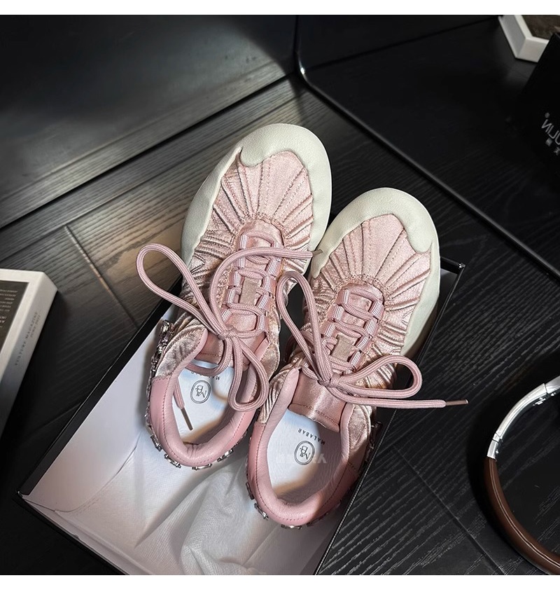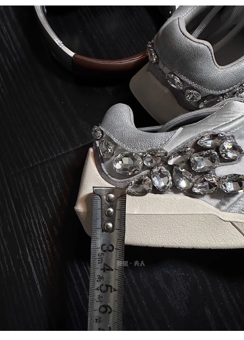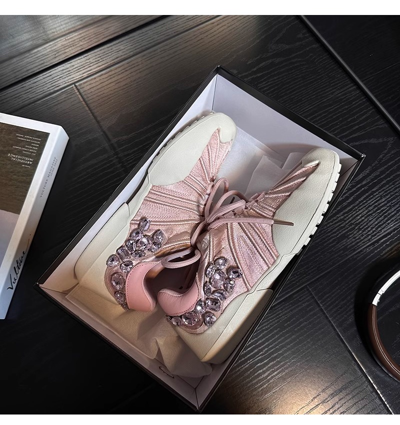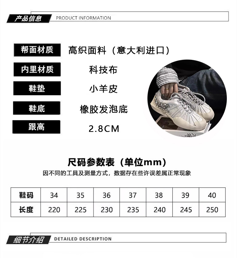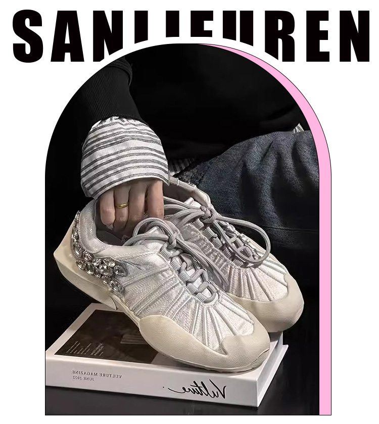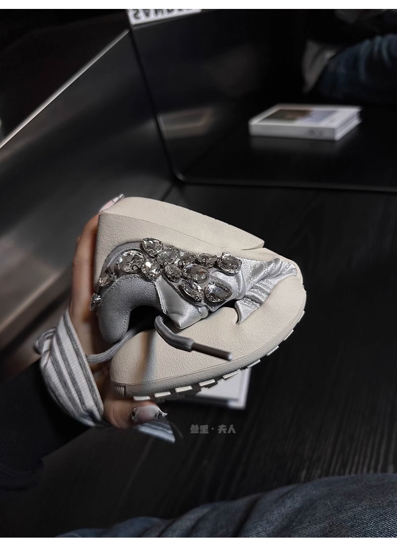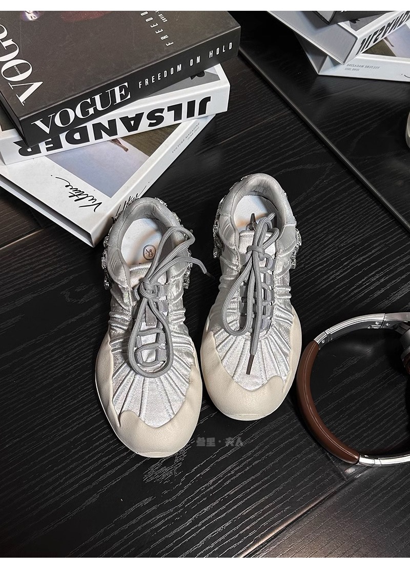 Sanli Chou Cute Rhinestone Fabric Casual Shoes for Women 2025 Summer New Lace-Up Round Toe Flat Low-Top German Training Shoes