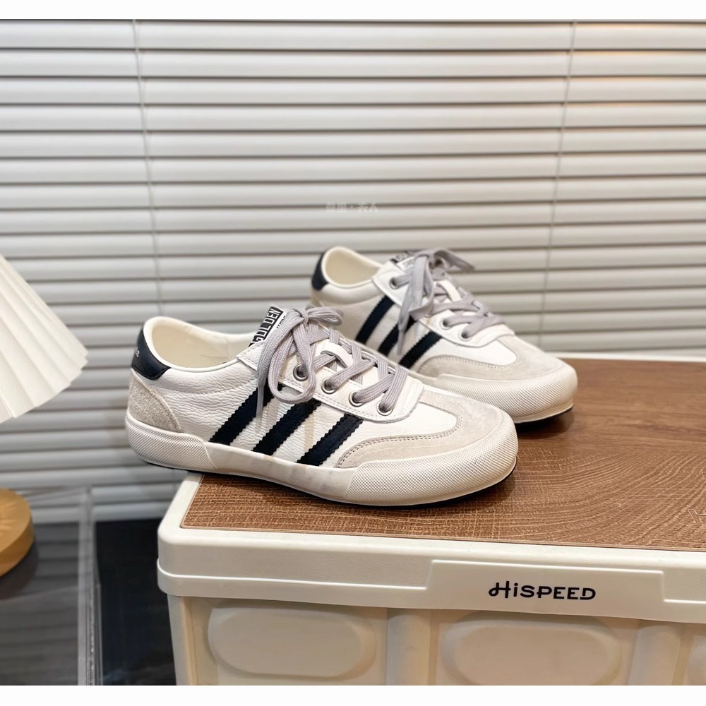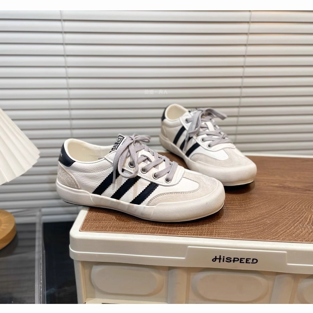 Sanli Genuine Leather Vintage Distressed Flat Shoes for Women 2025 Summer New Casual German Training Shoes Non-Slip Sneakers Trendy
