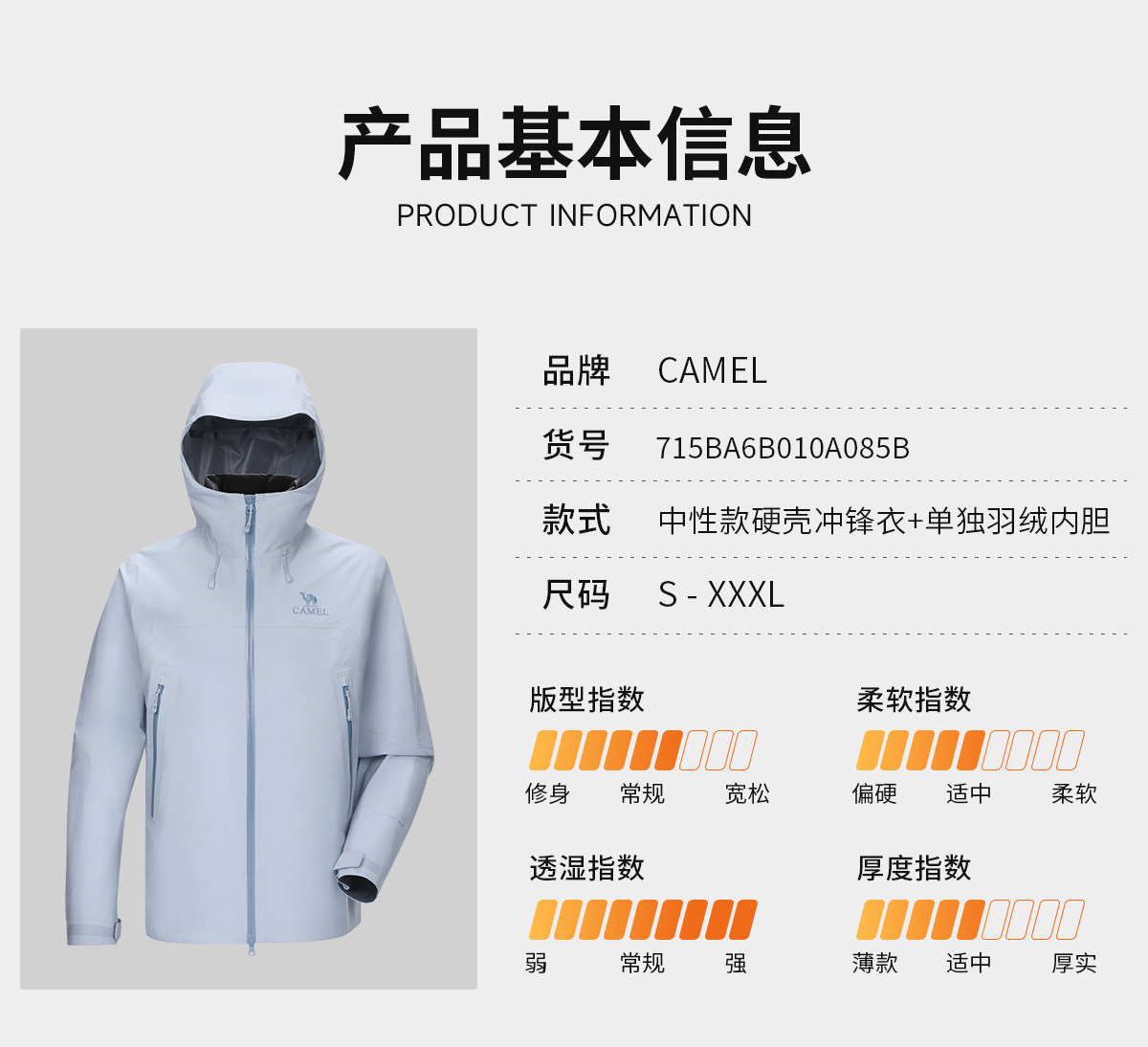 Camel King Armor Pro Outdoor Hard Shell Jacket Women's Professional Windproof Waterproof Mountaineering Jacket Spring Coat Men