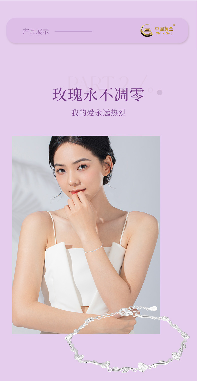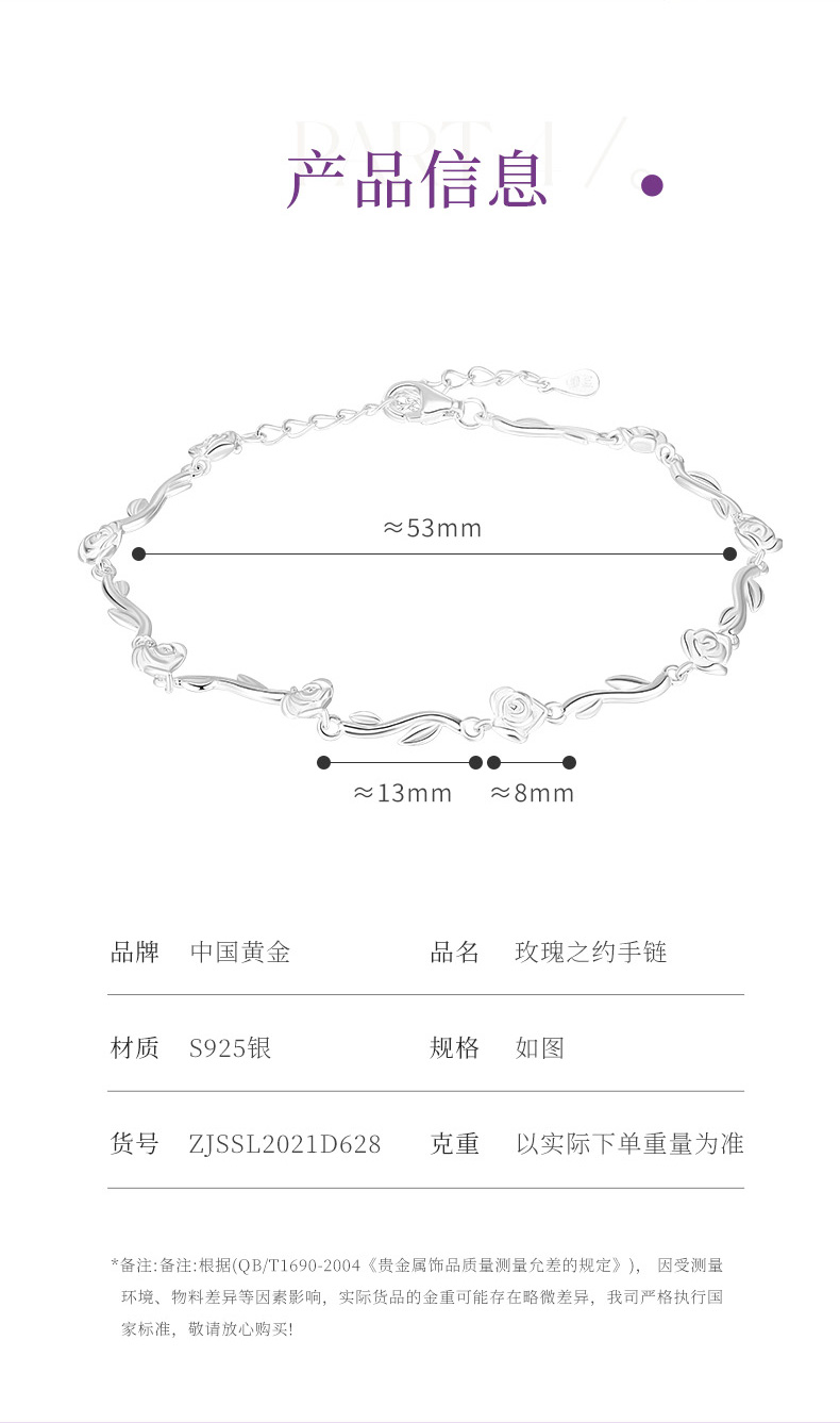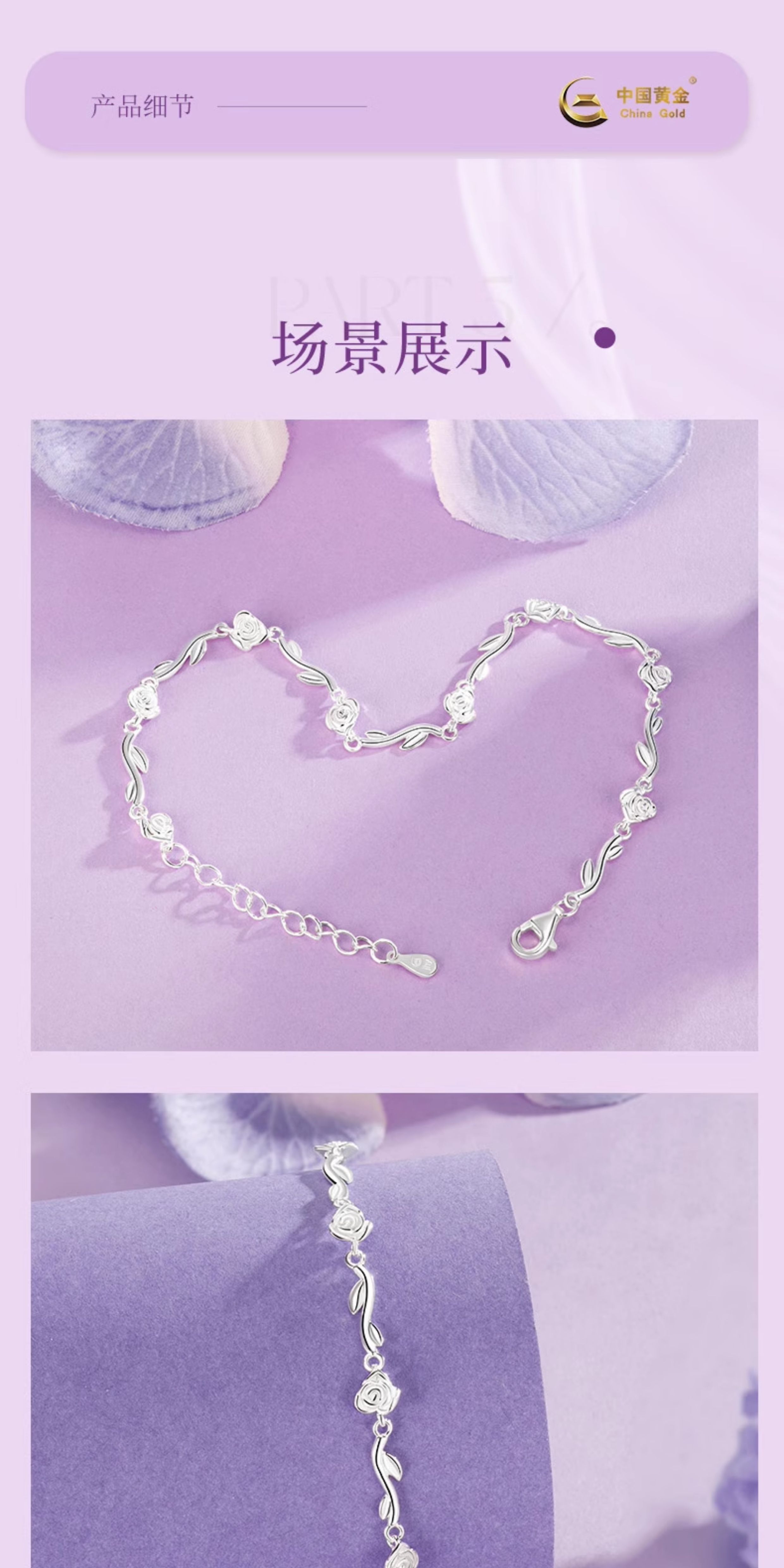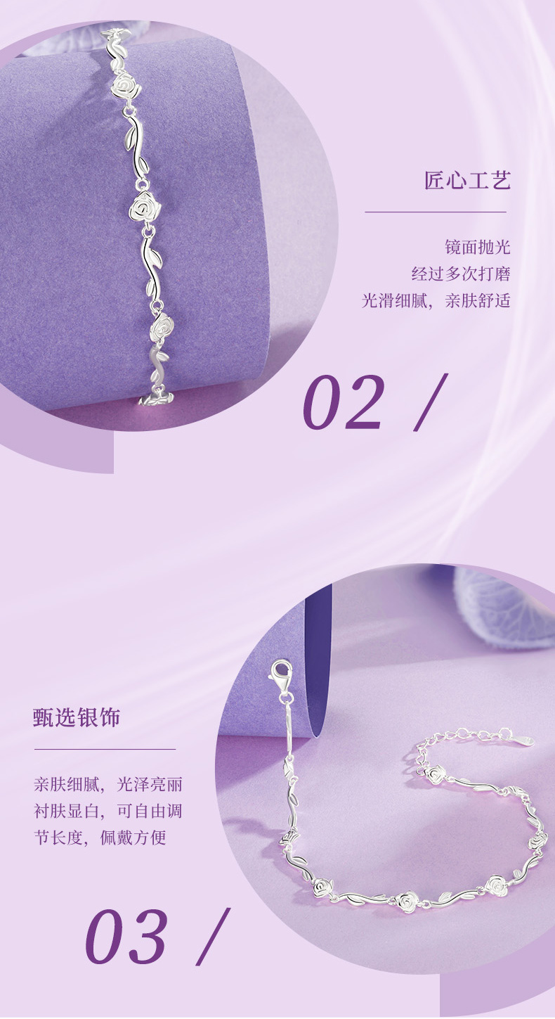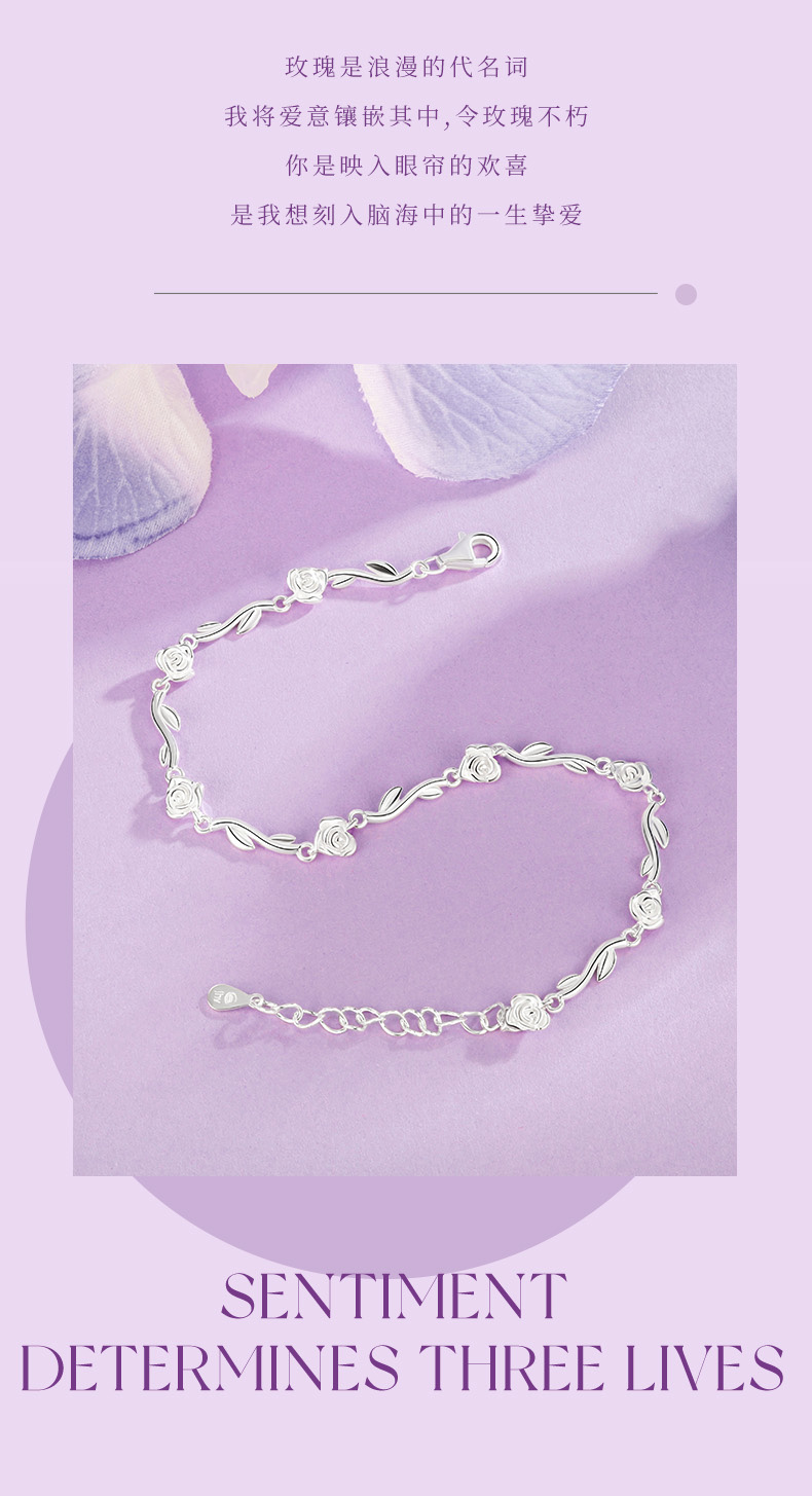China Gold 2025 New Rose Silver Bracelet for Women, Pure Silver Bracelet, Gift for Girlfriend on Valentine's Day or Birthday E