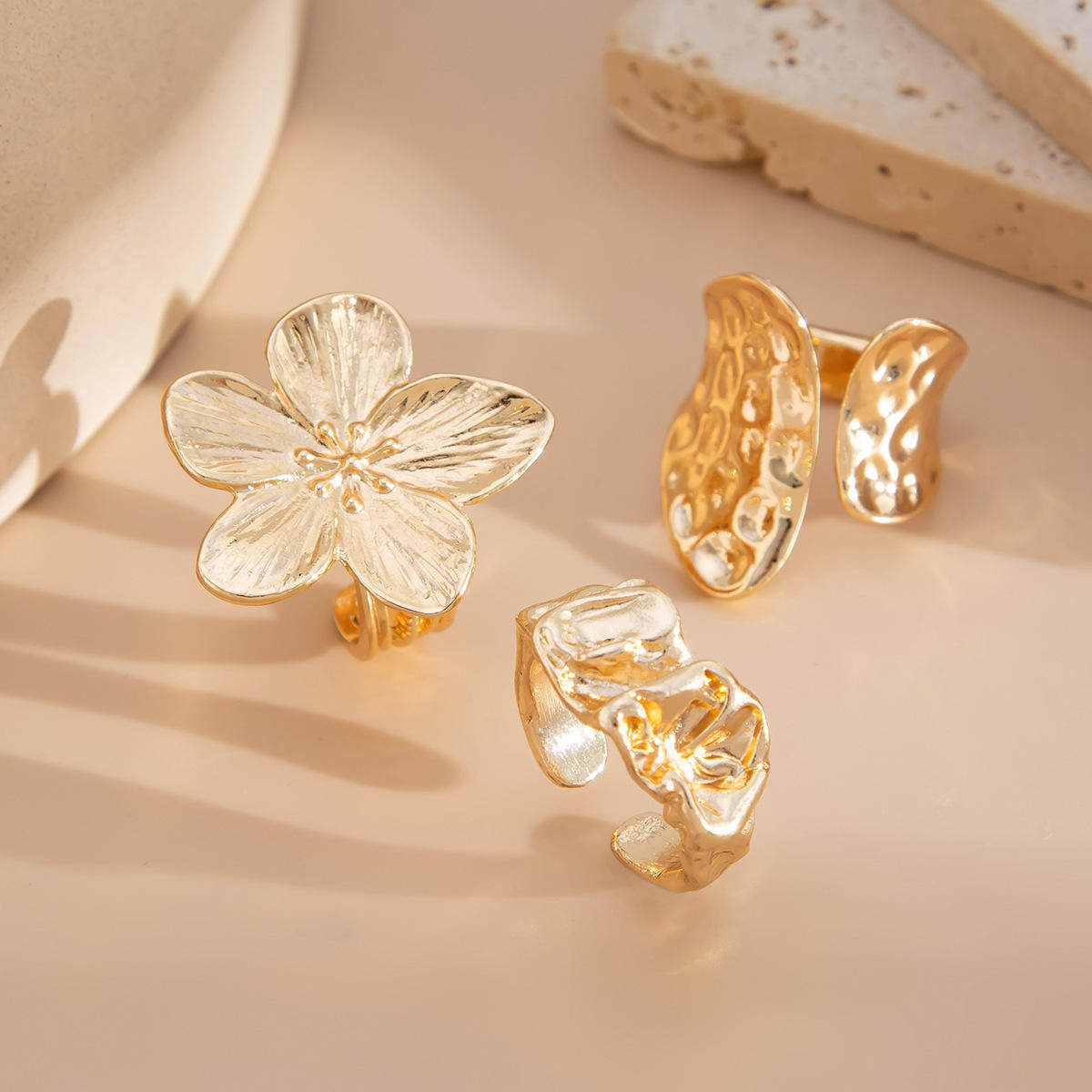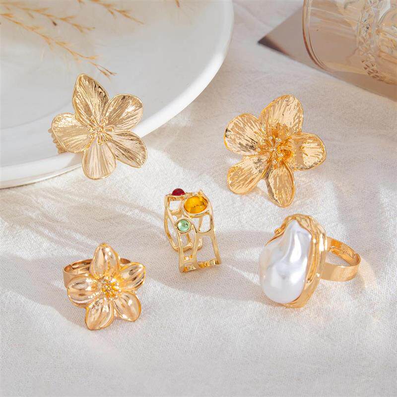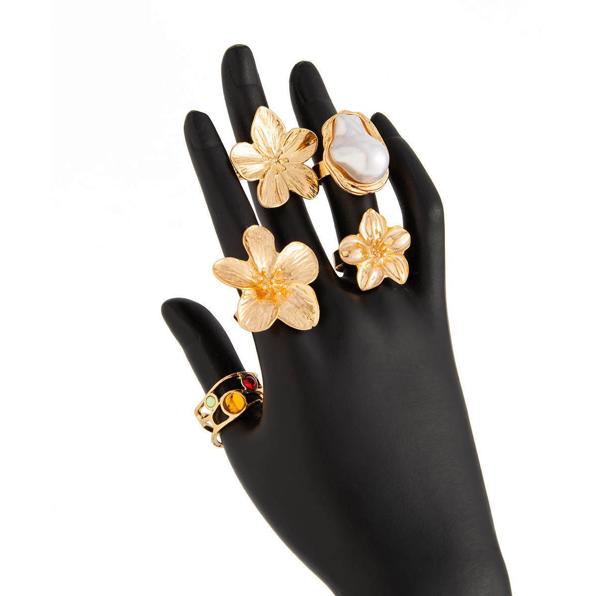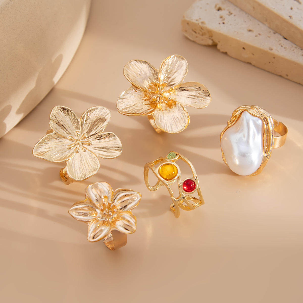 European and American Cross-Border ins Baroque Imitation Pearl Gemstone Ring, Design-Inspired Liquid Lava Flower Open Ring