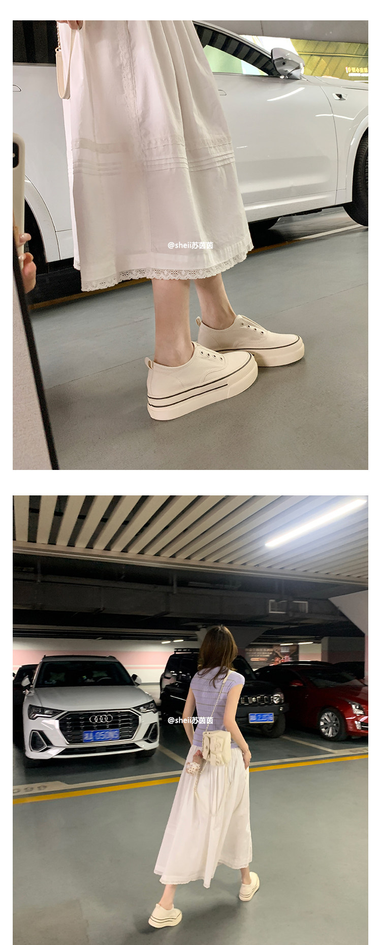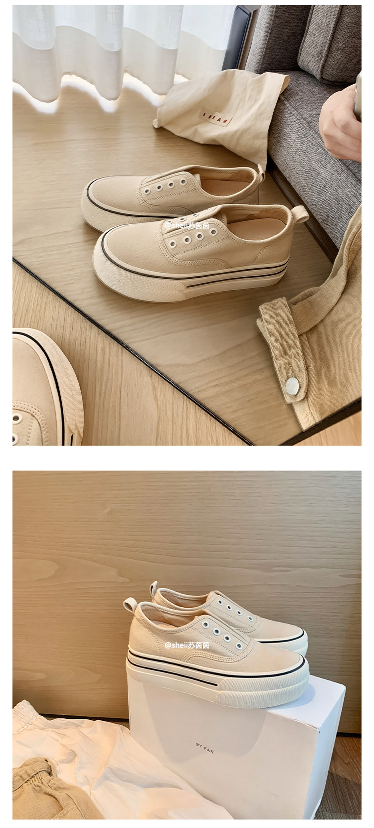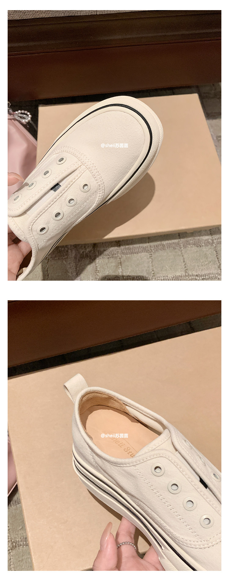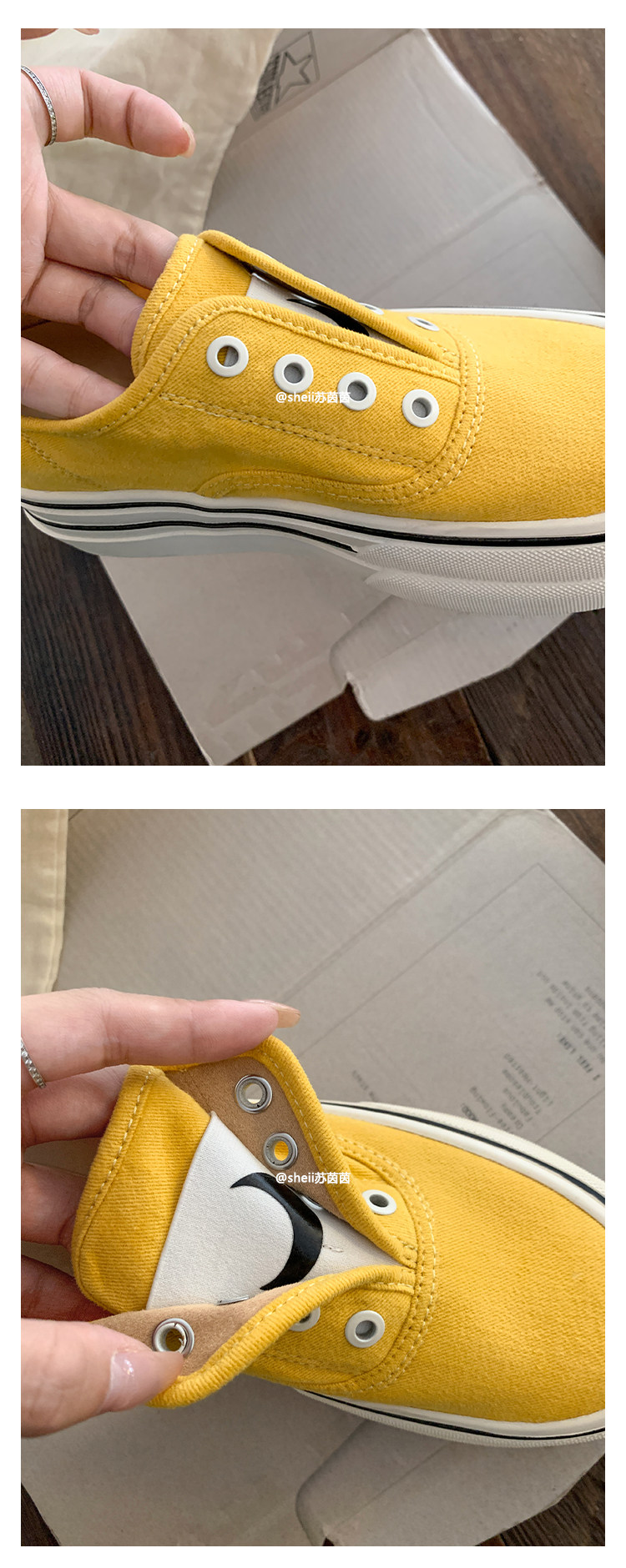 【Su Yinyin】Li Haofei's Style~ Horse Leather Crescent Lazy Casual Thick-Soled Loafers Women's Canvas Sneakers