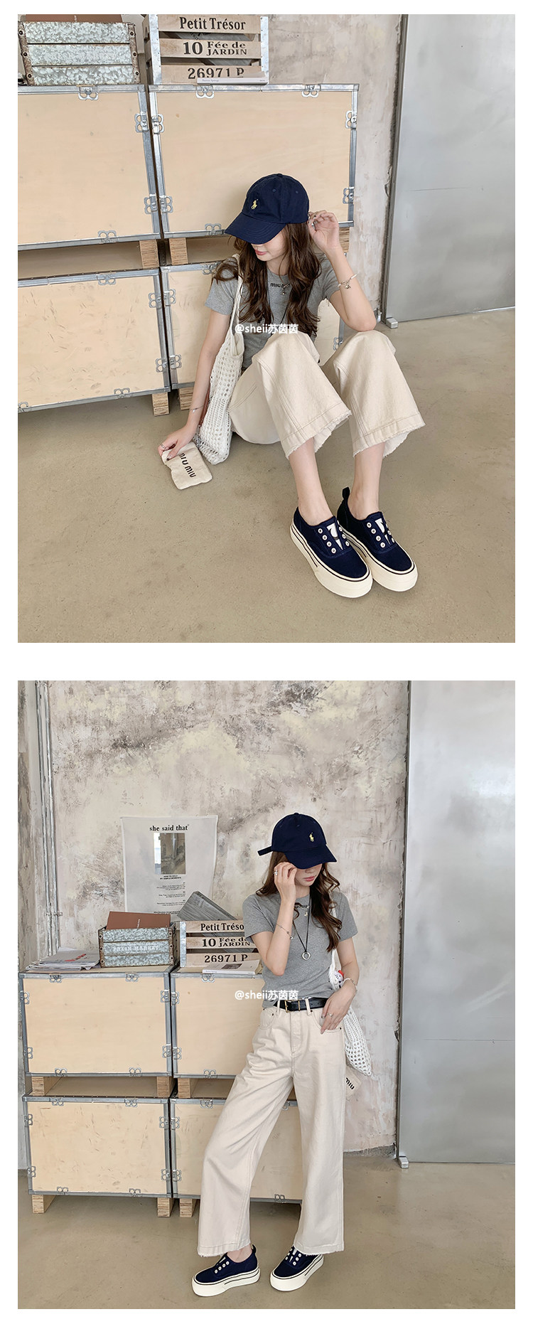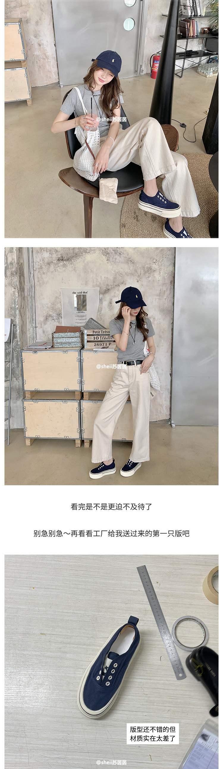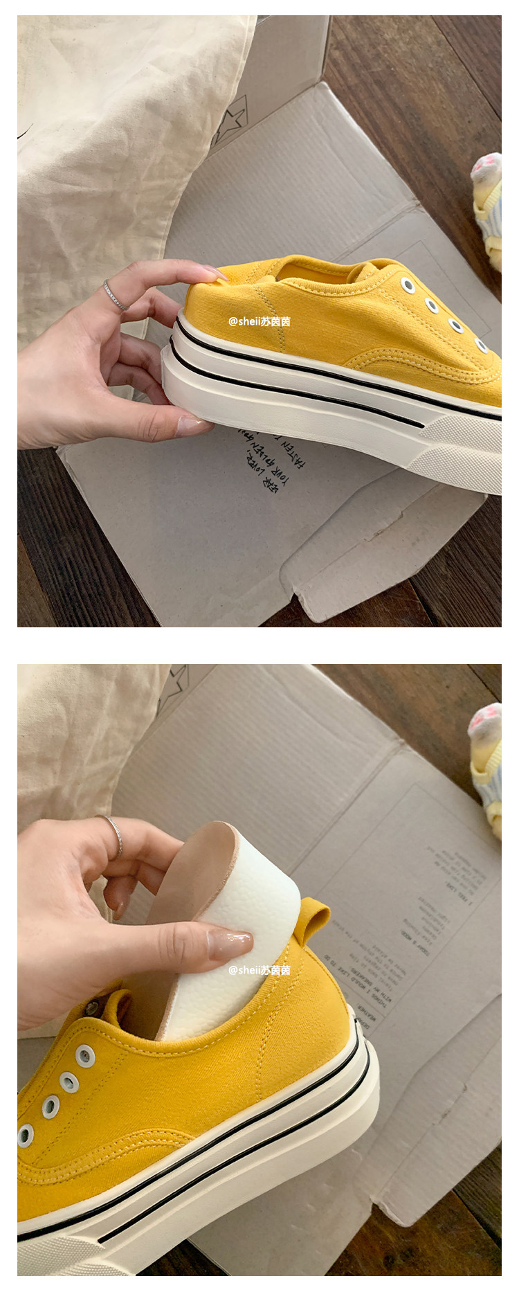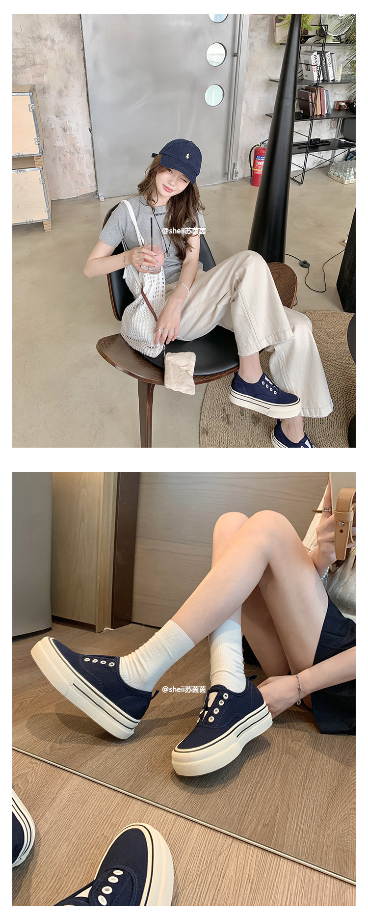 【Su Yinyin】Li Haofei's Style~ Horse Leather Crescent Lazy Casual Thick-Soled Loafers Women's Canvas Sneakers