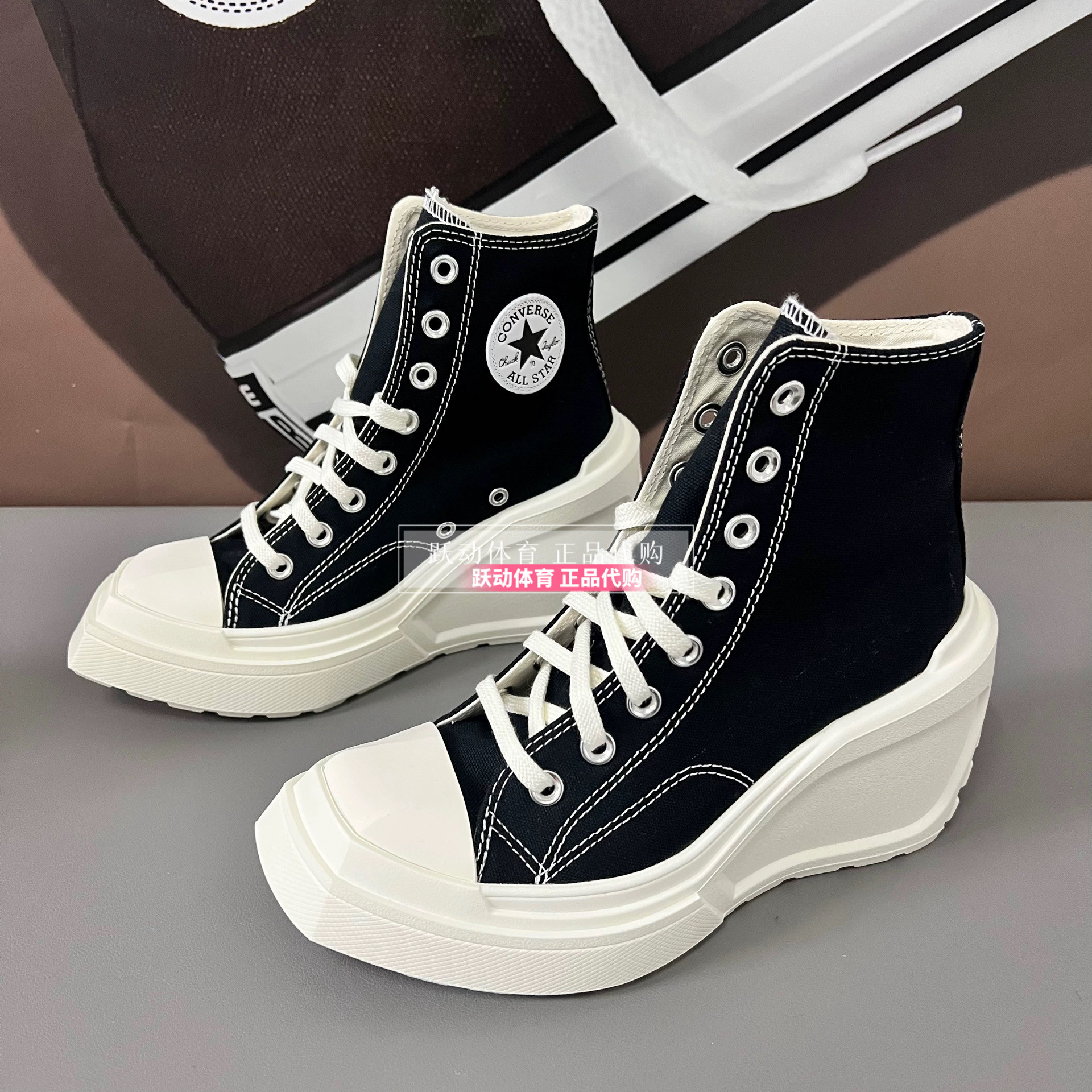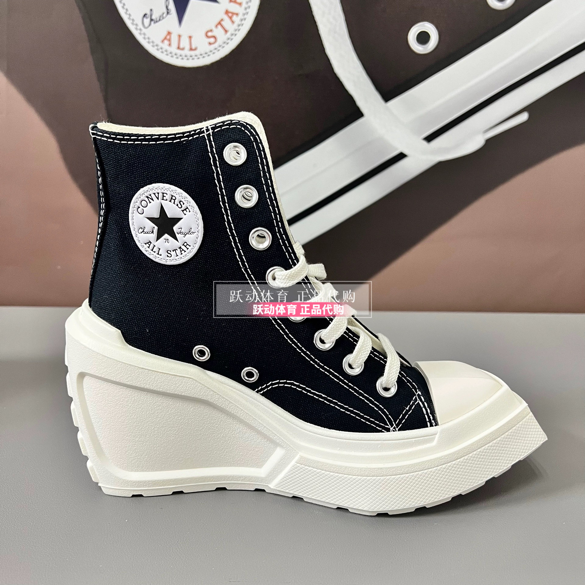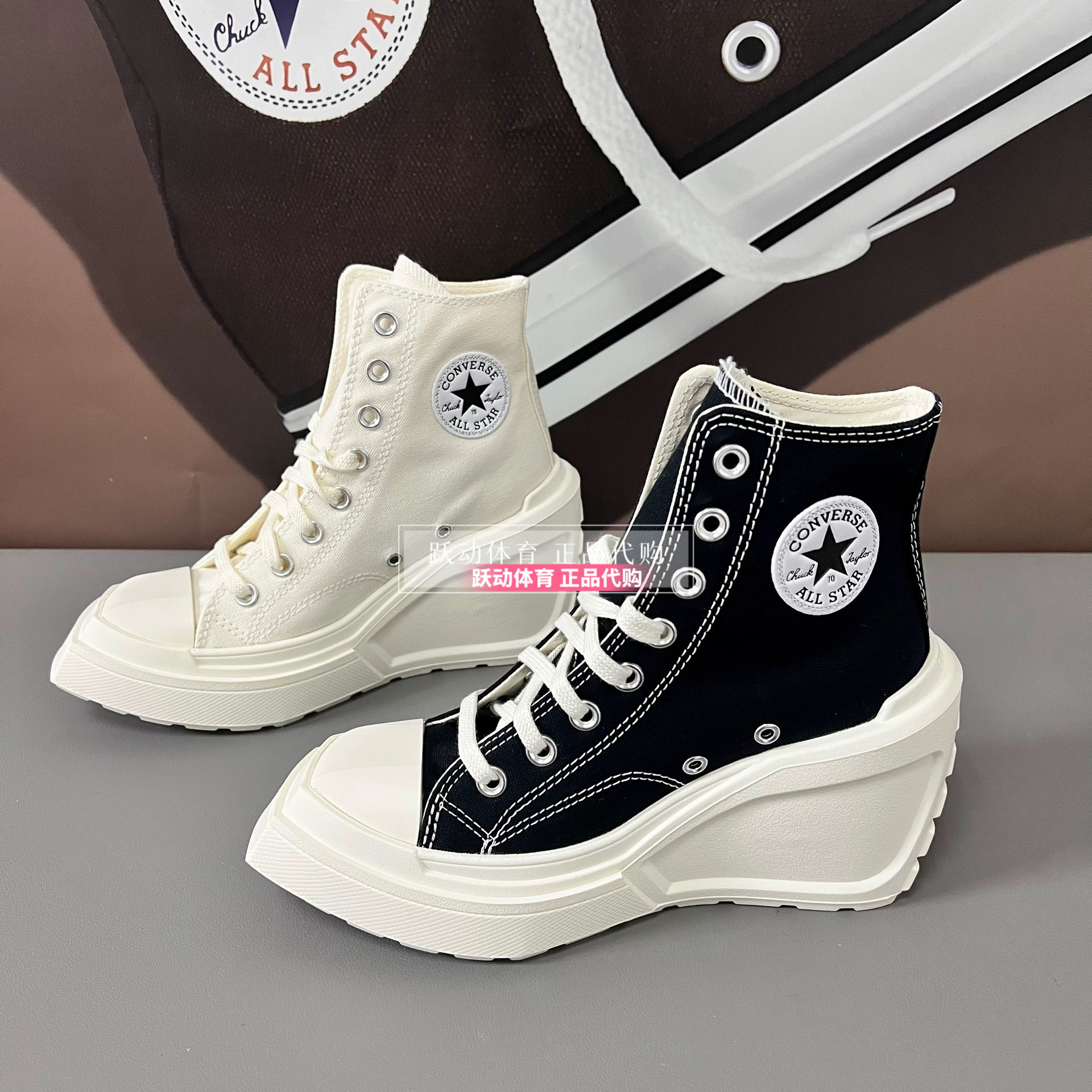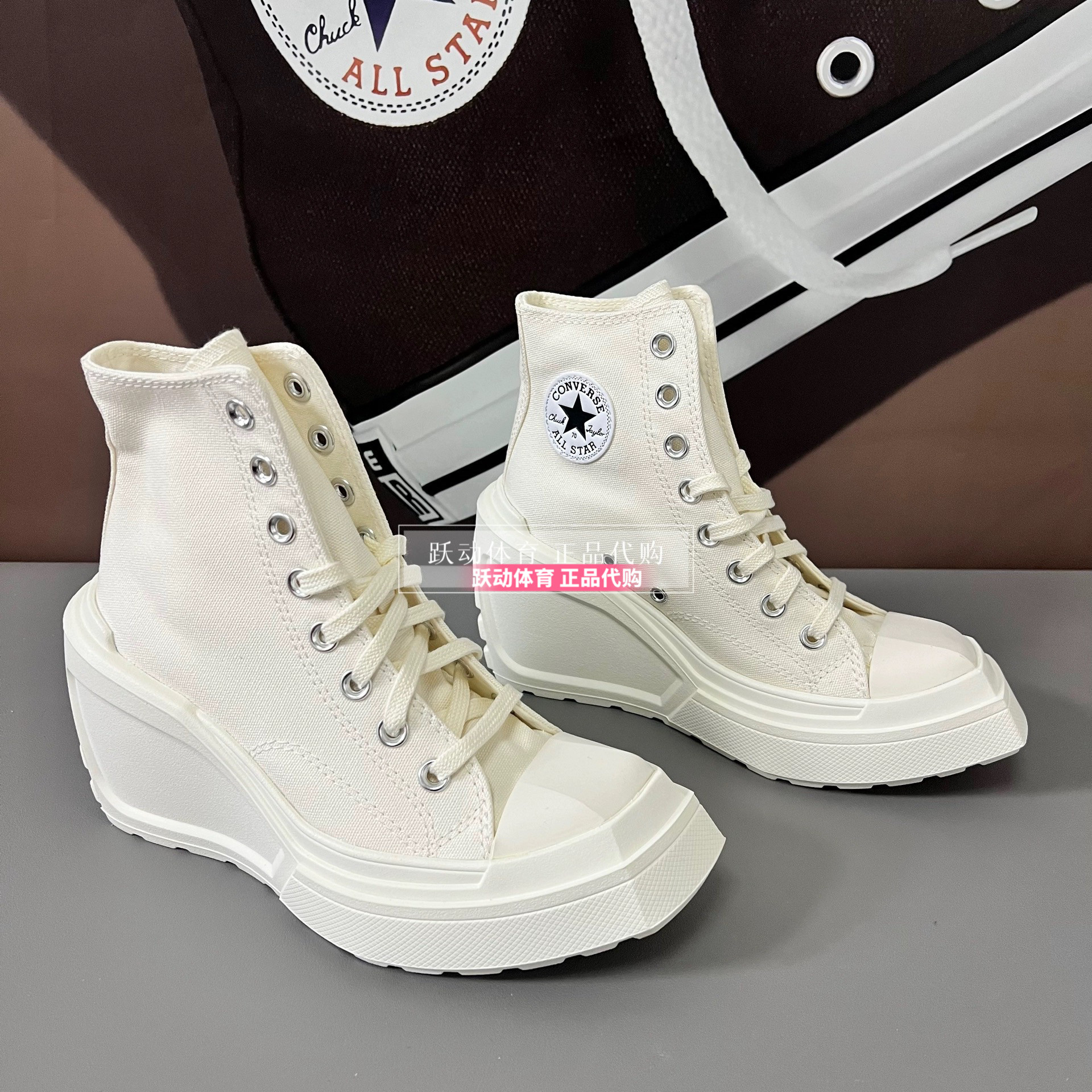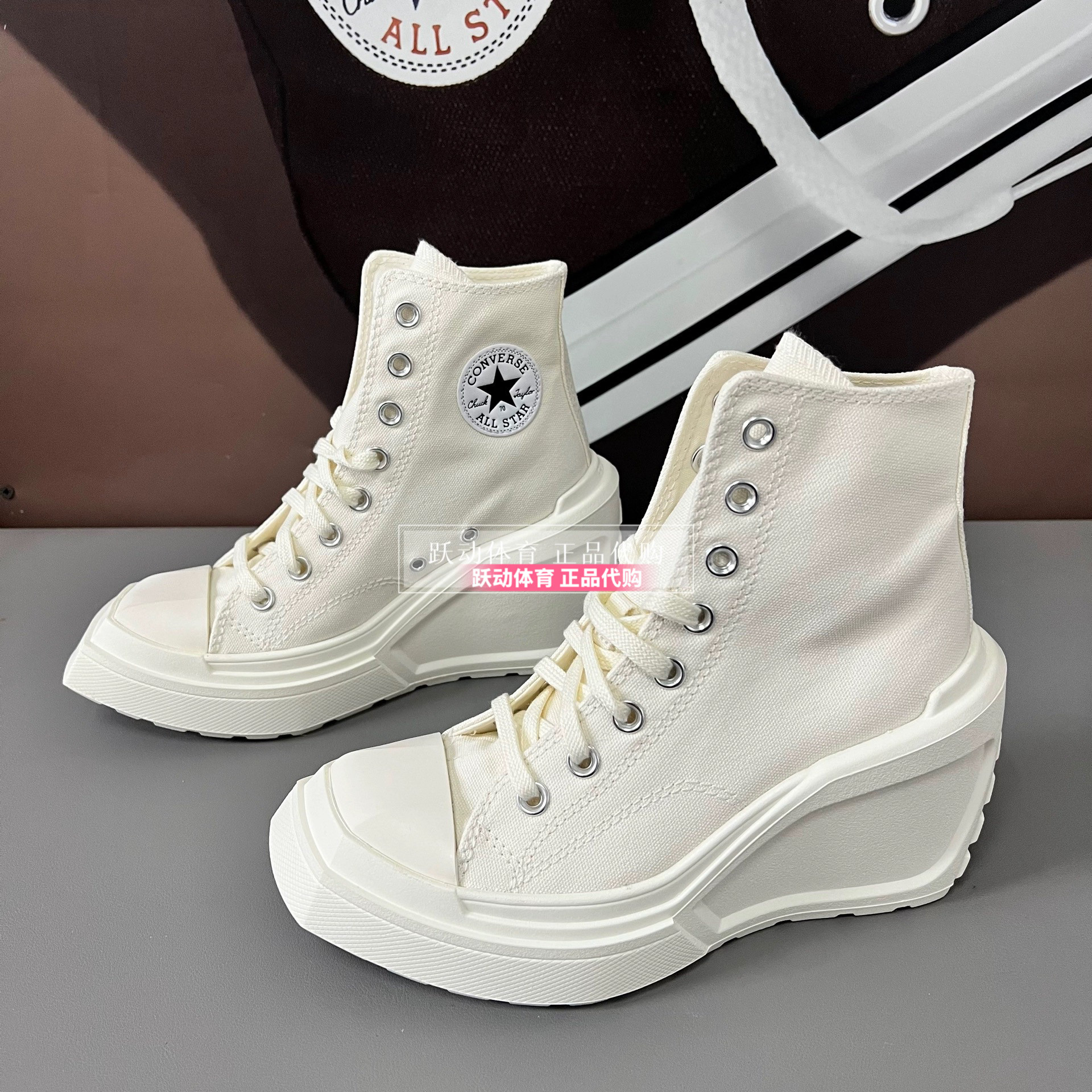 Converse Men's and Women's Height-Increasing Thick-Soled Retro Black and White Wedge High-Heeled Canvas Shoes A06478Ca06479Ca05347C