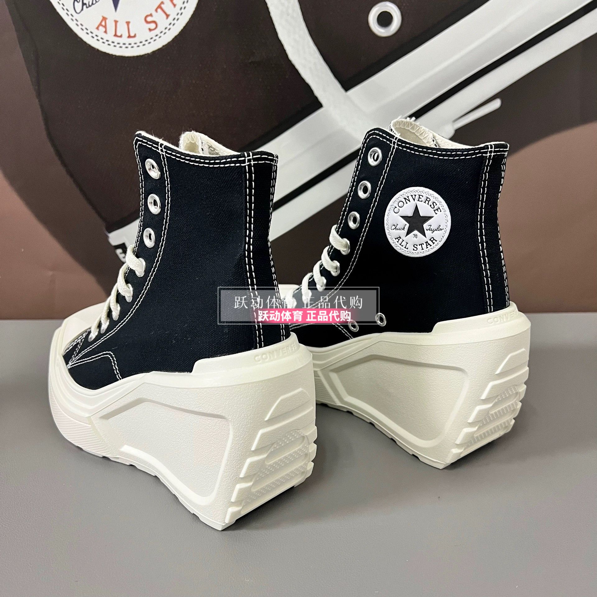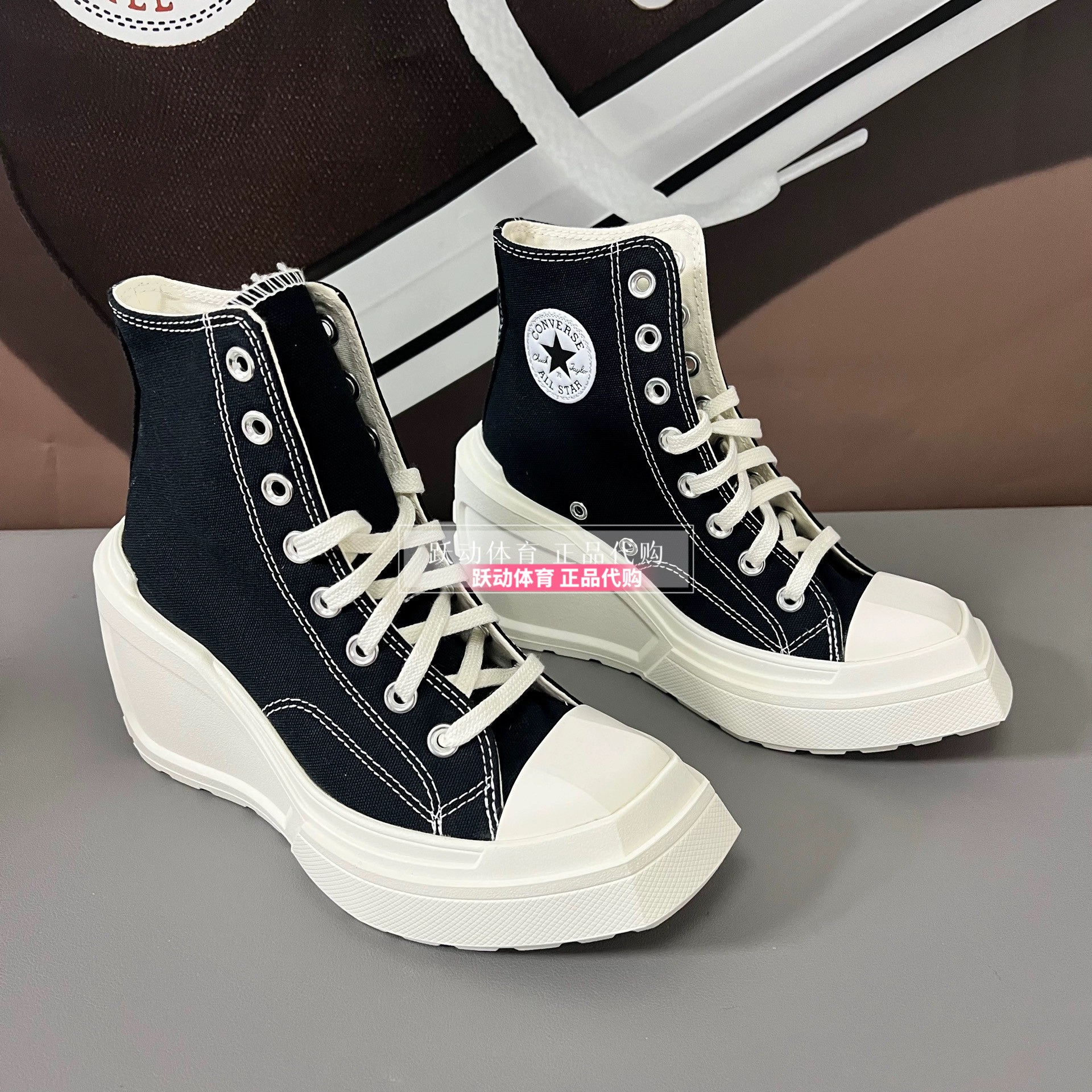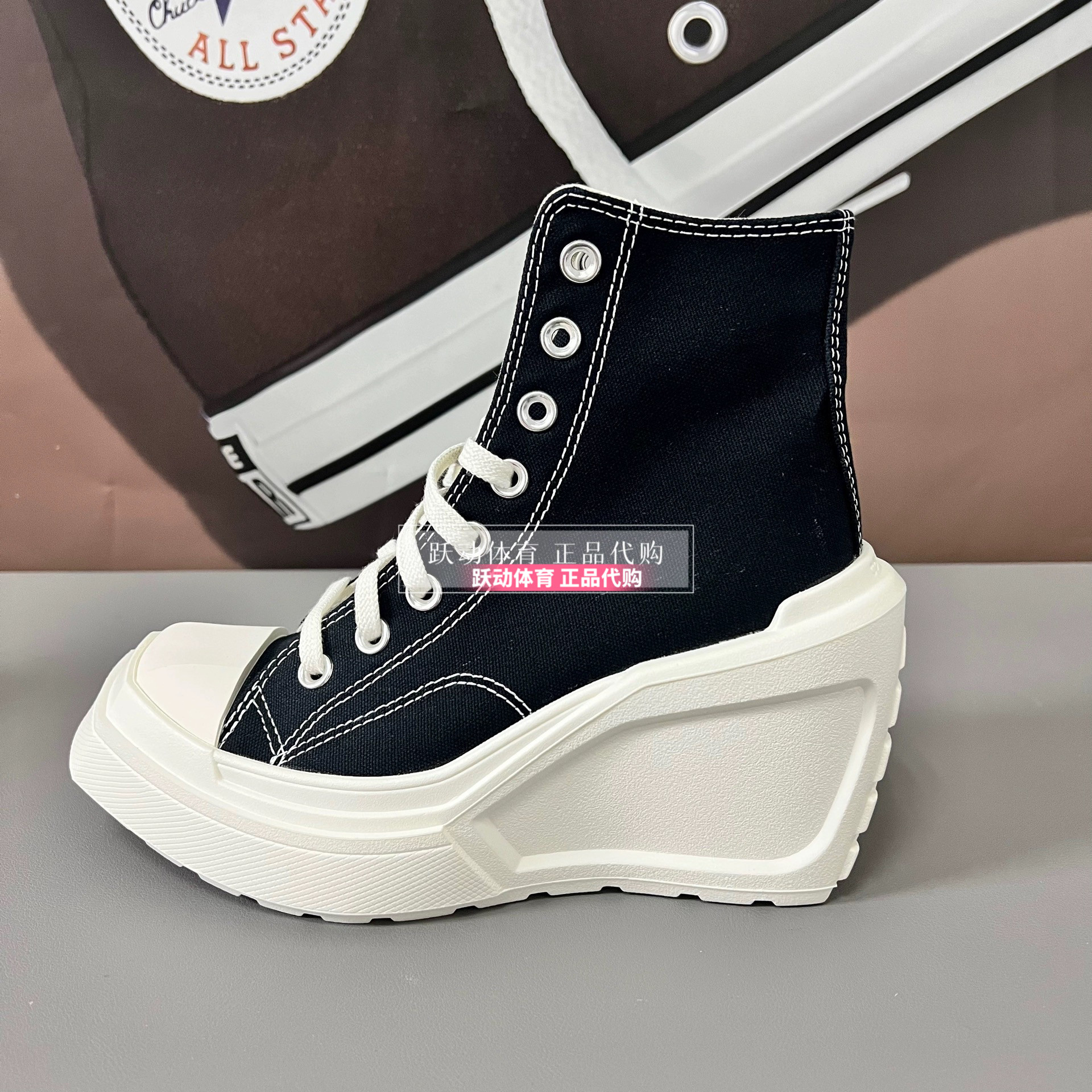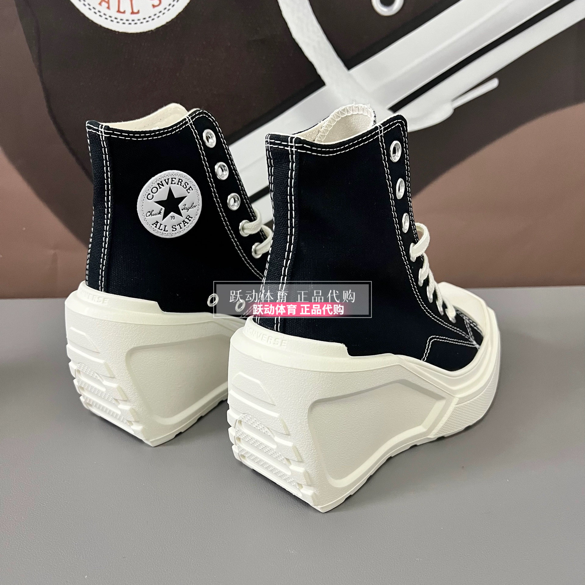 Converse Men's and Women's Height-Increasing Thick-Soled Retro Black and White Wedge High-Heeled Canvas Shoes A06478Ca06479Ca05347C