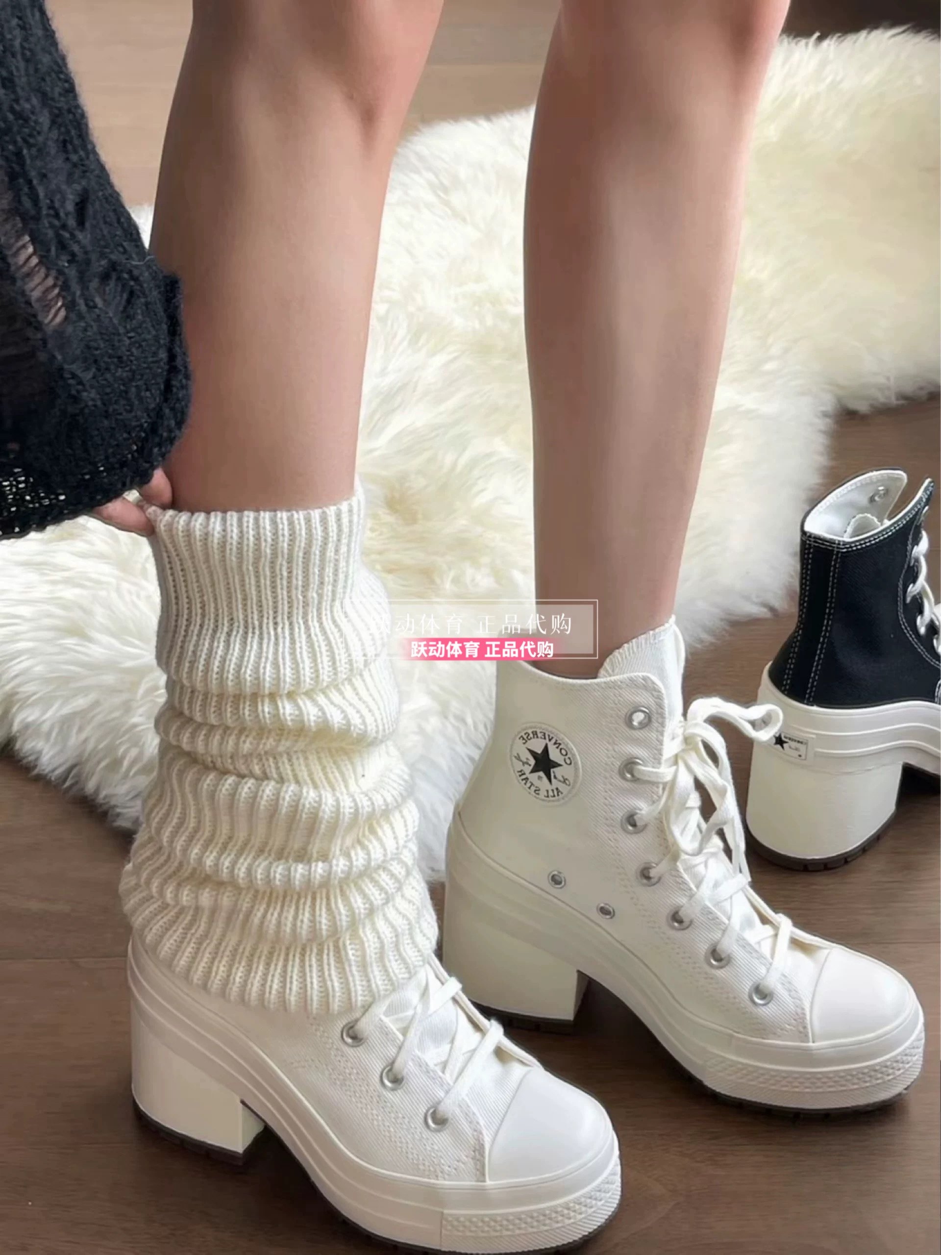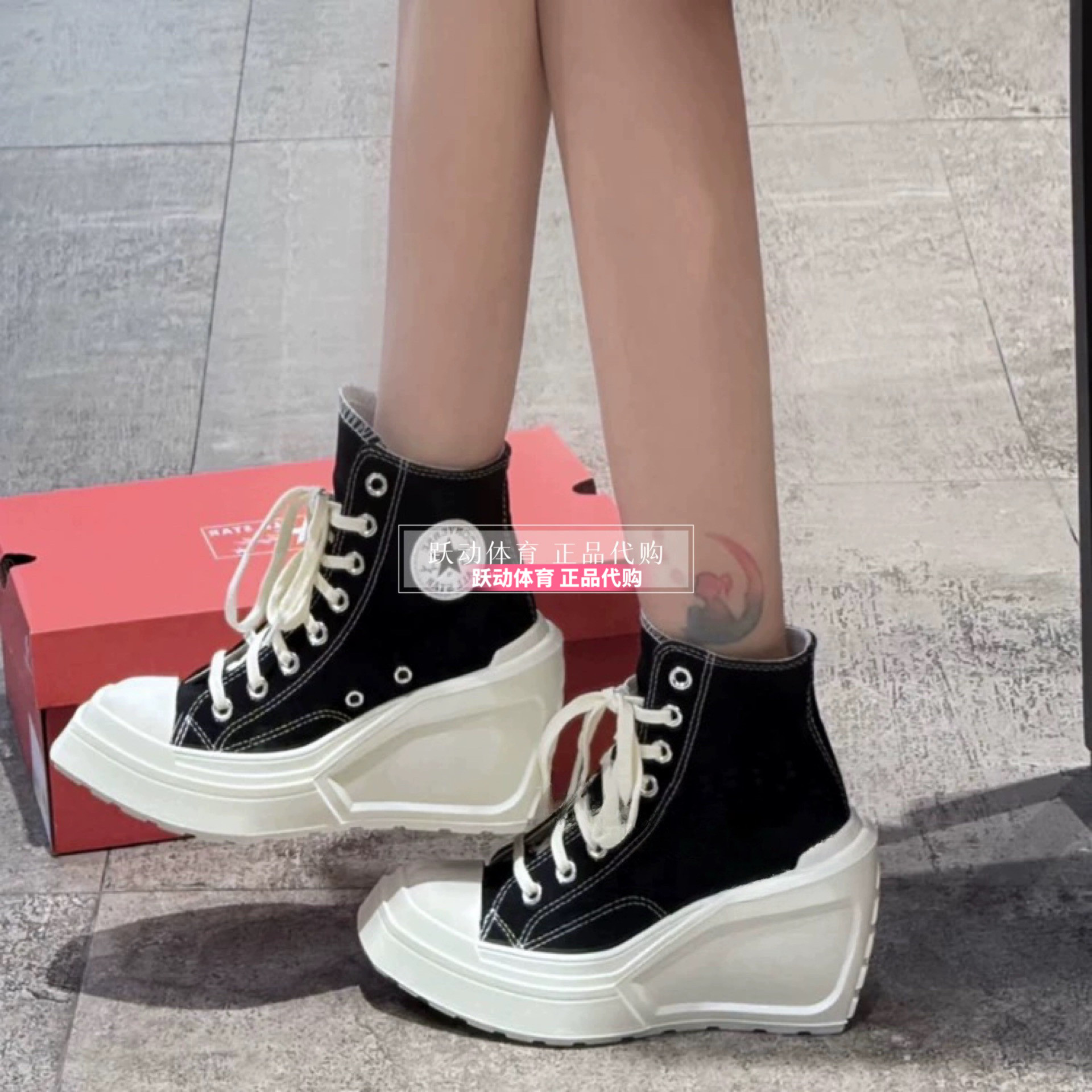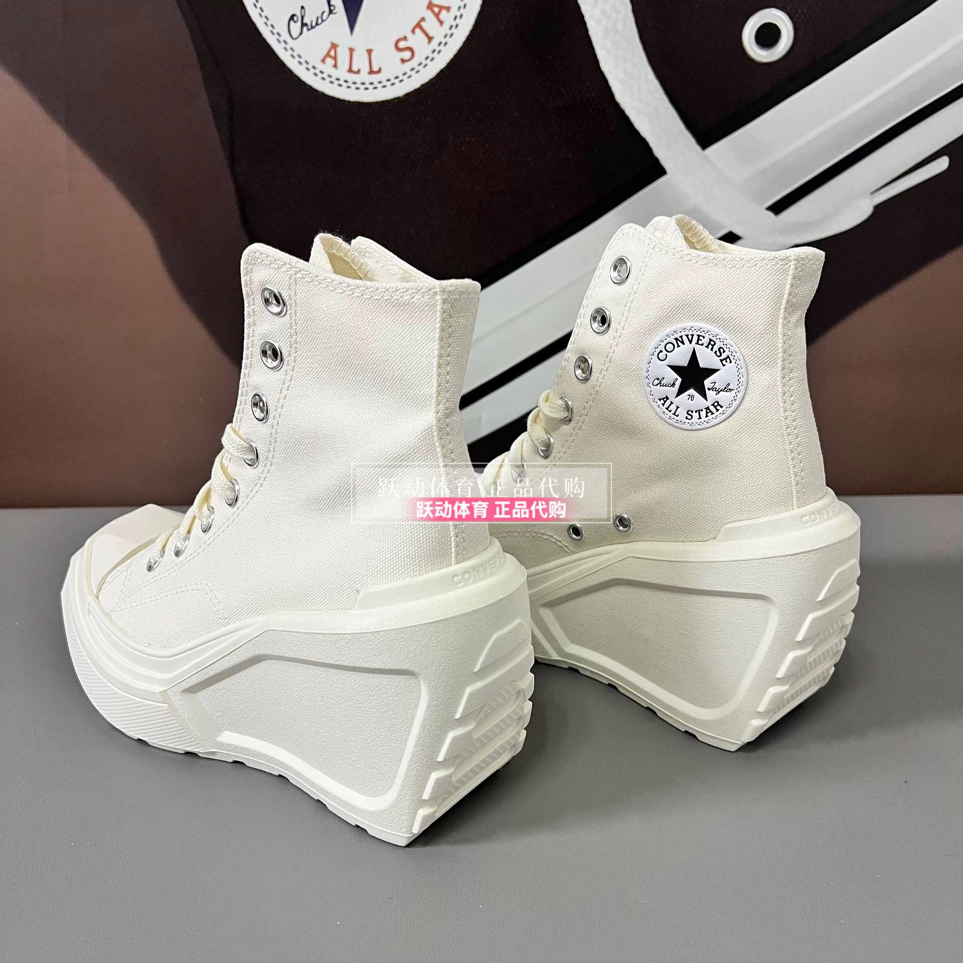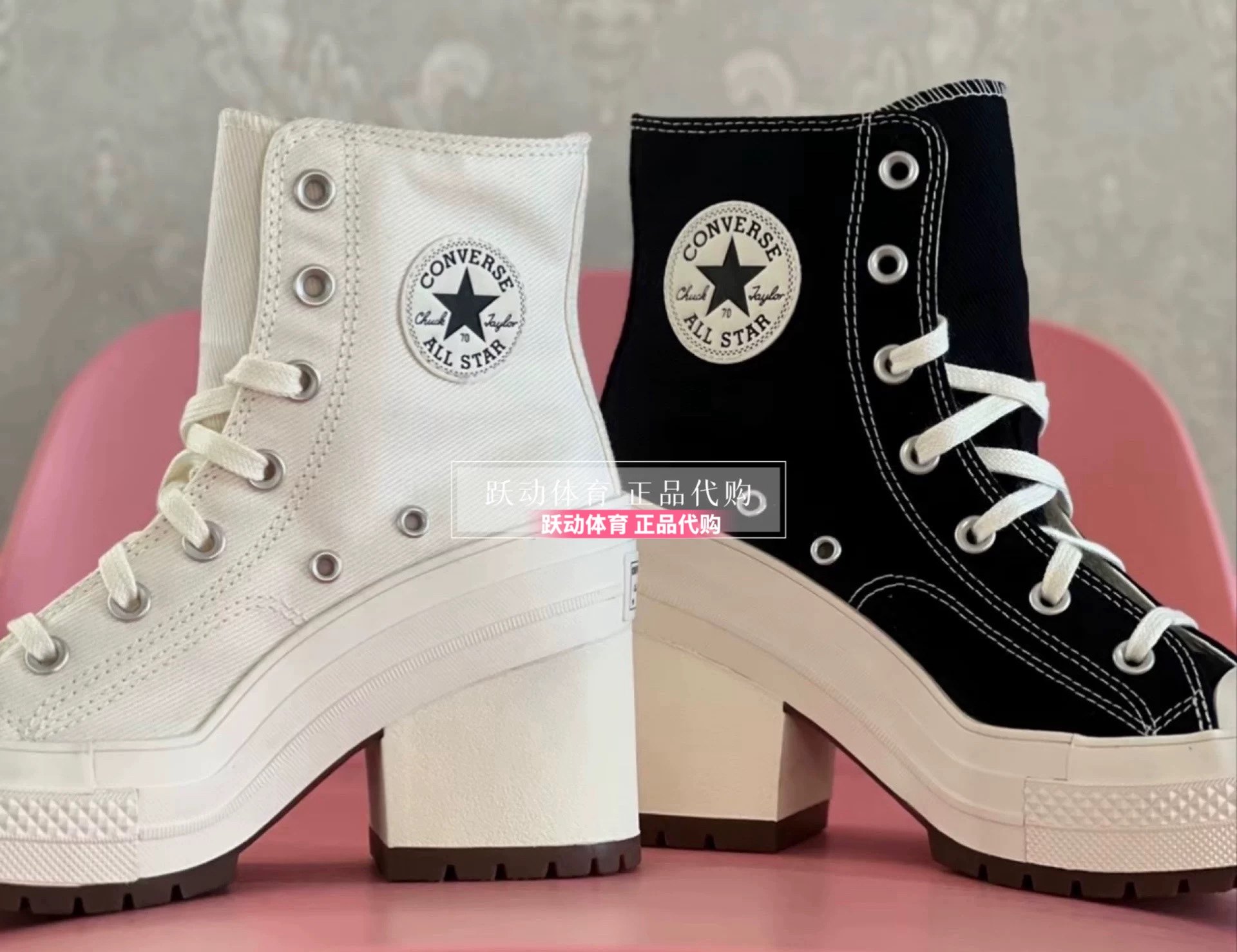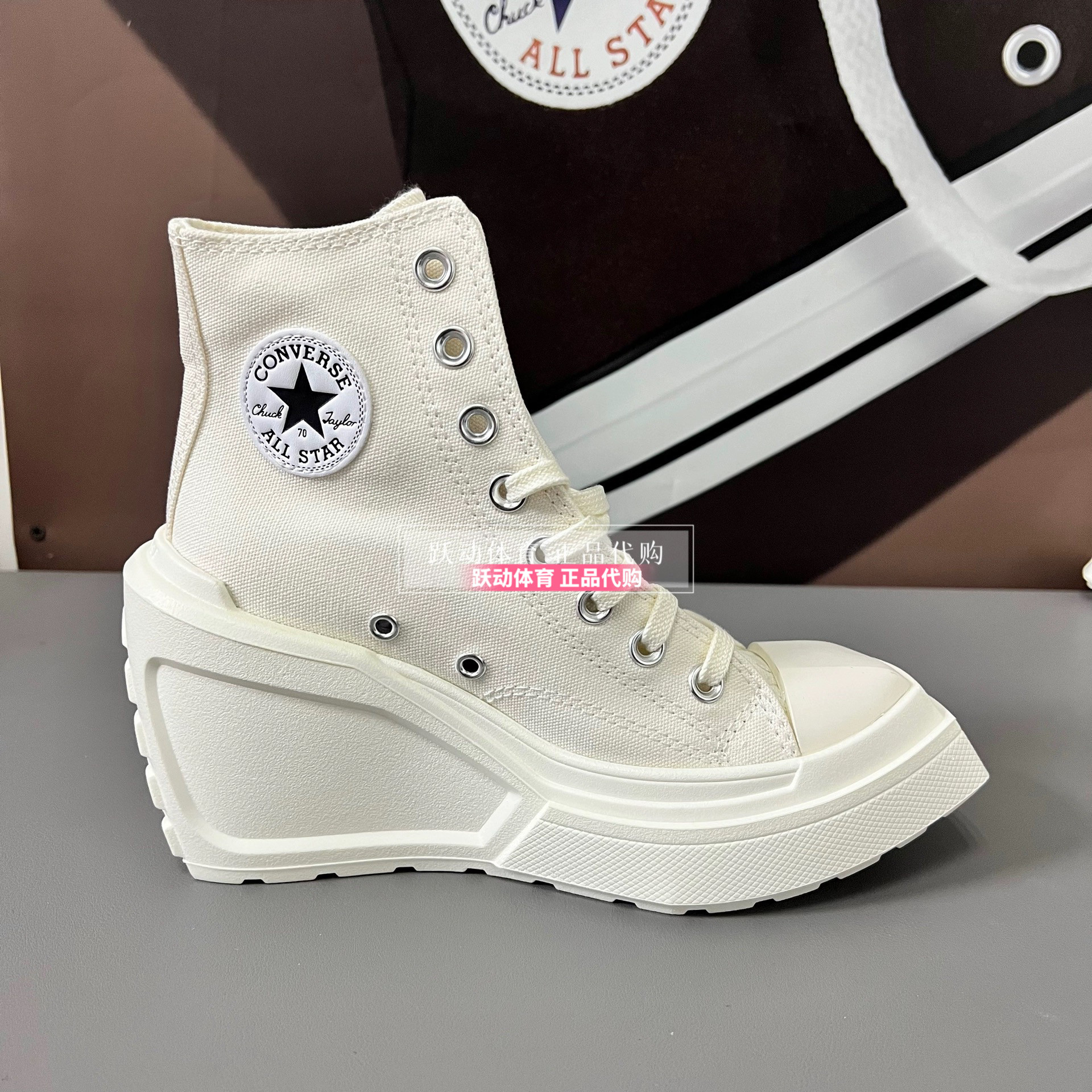 Converse Men's and Women's Height-Increasing Thick-Soled Retro Black and White Wedge High-Heeled Canvas Shoes A06478Ca06479Ca05347C