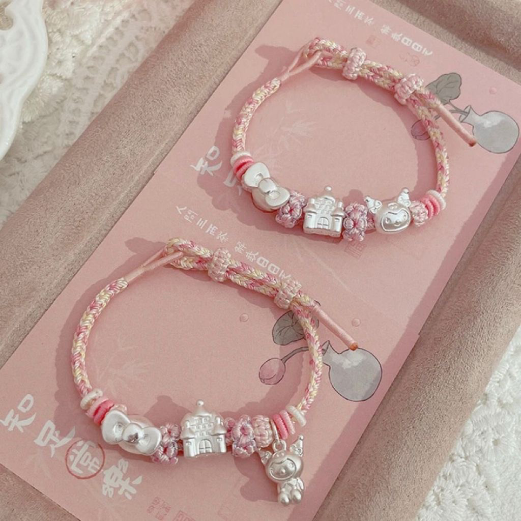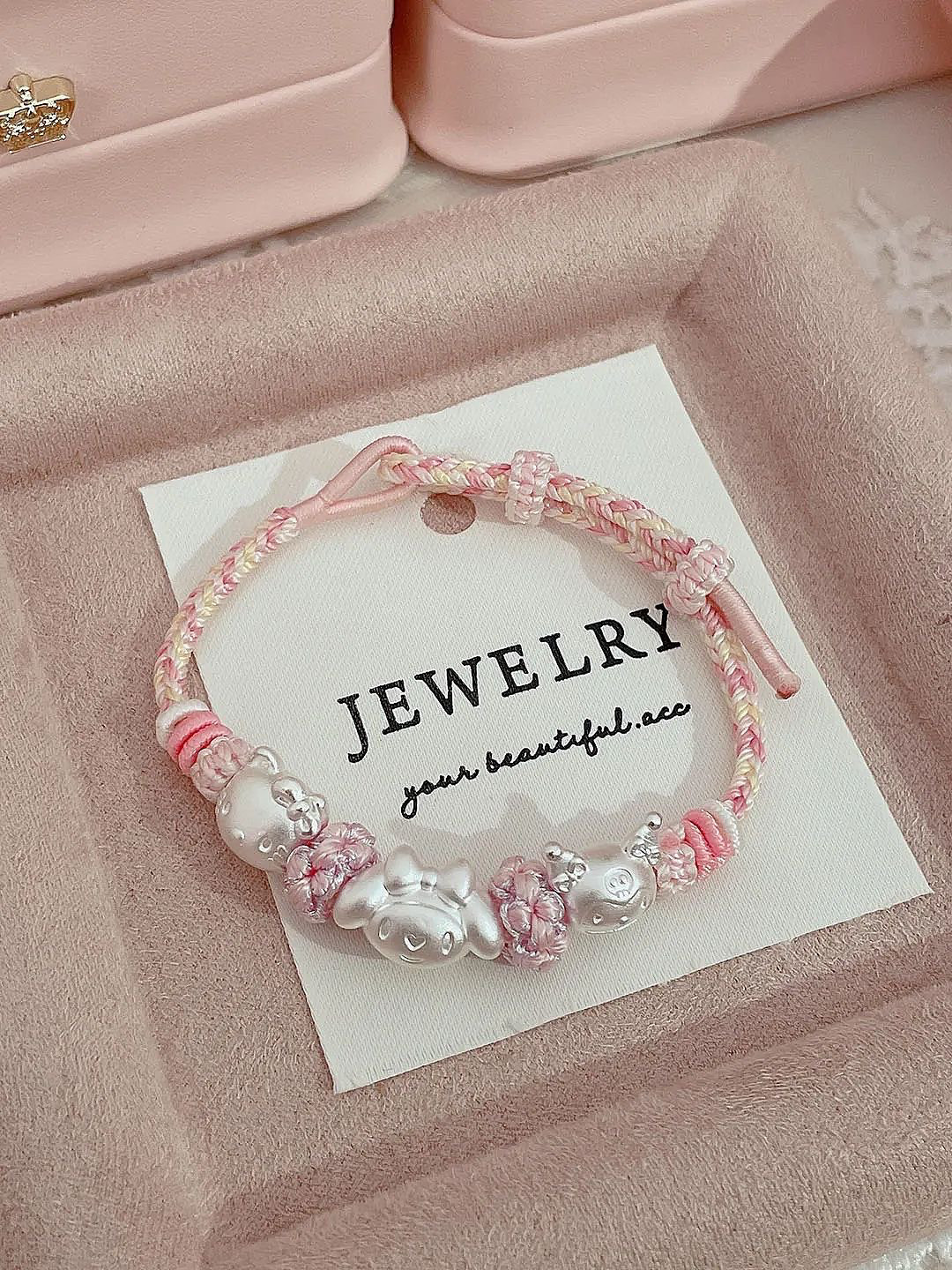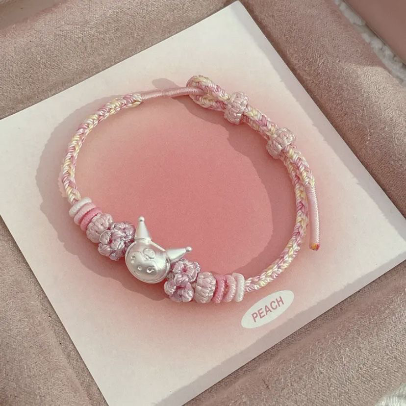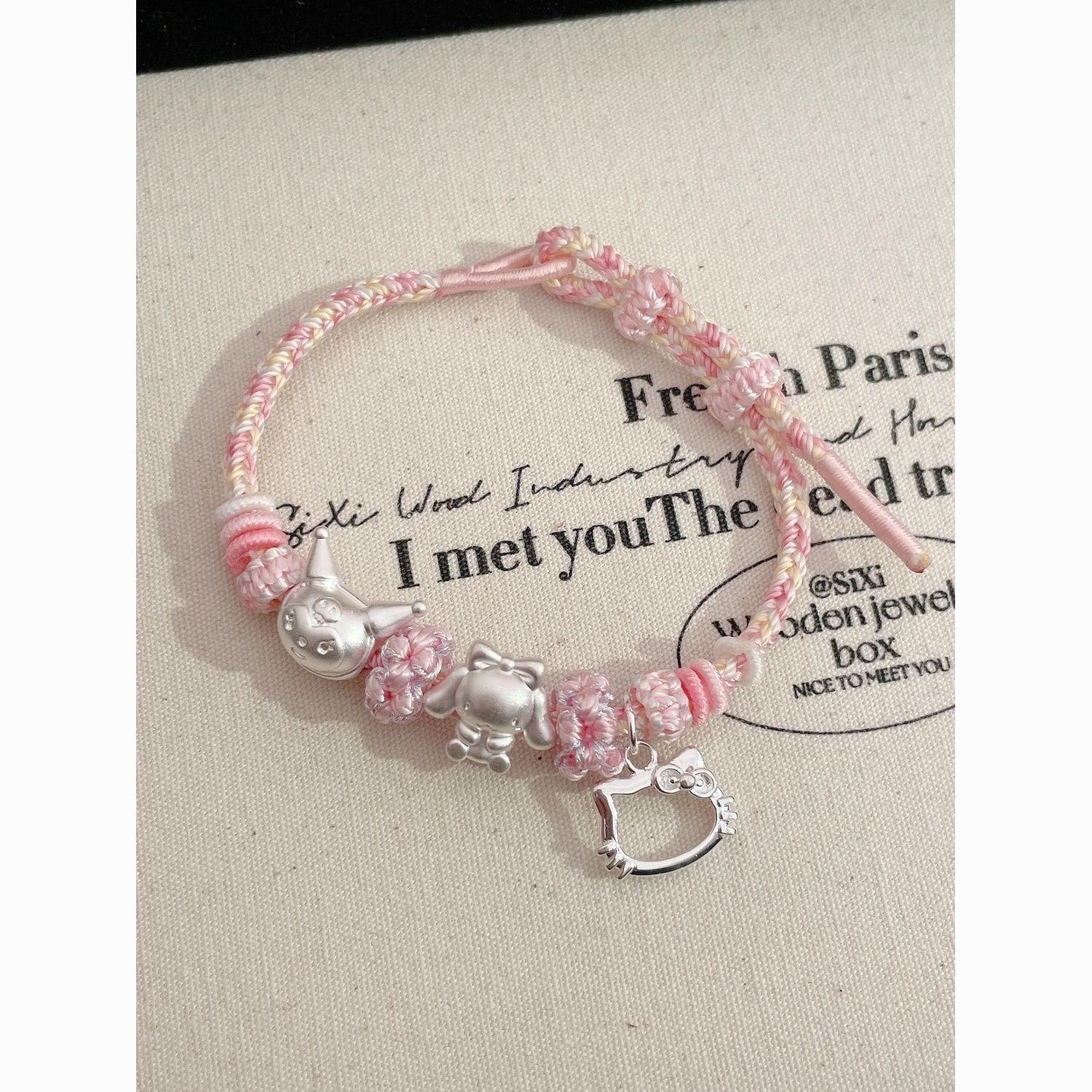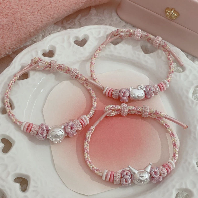 999 Pure Silver Sanrio Kuromi Bracelet, Cute Cartoon My Melody Wristband, Gift for Best Friend or Girlfriend