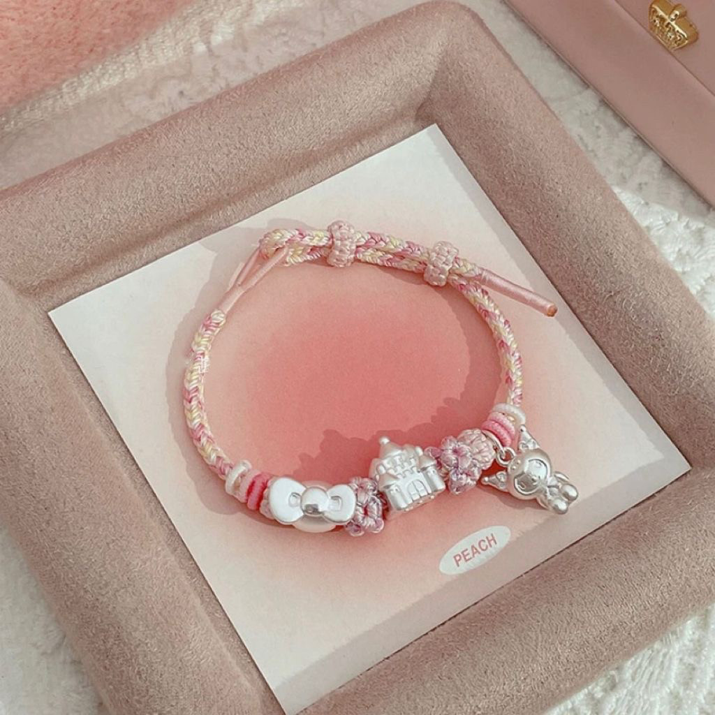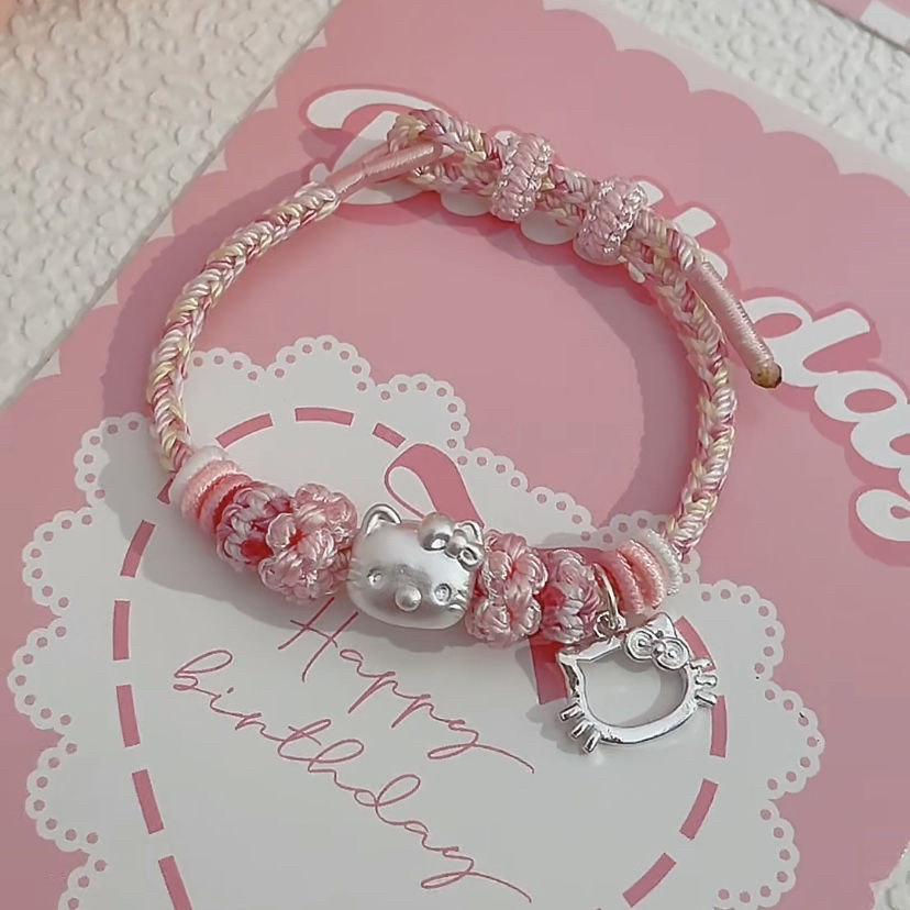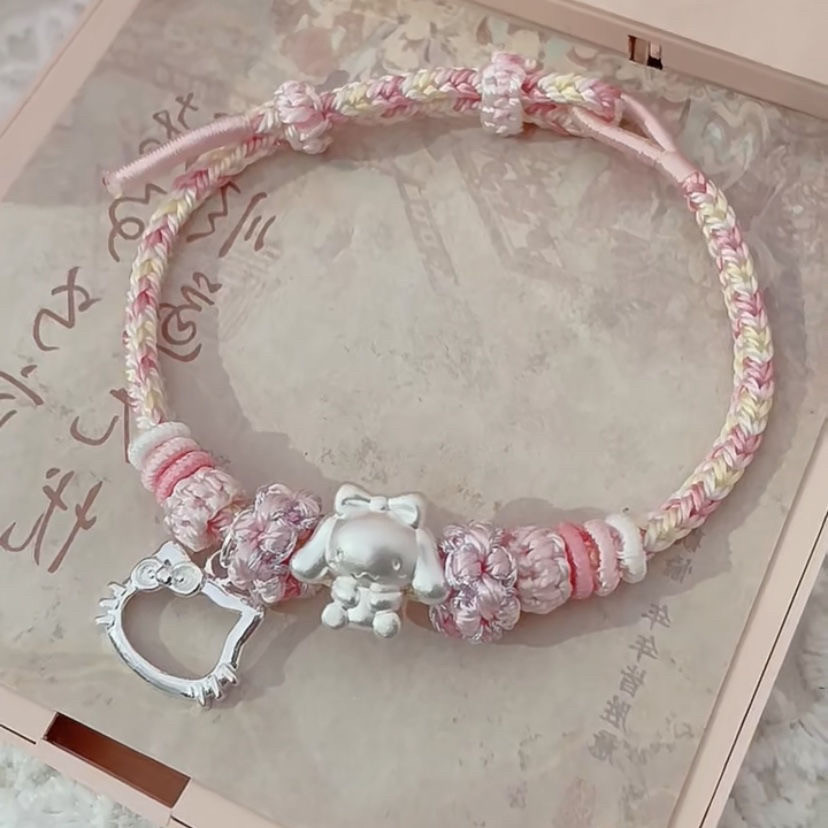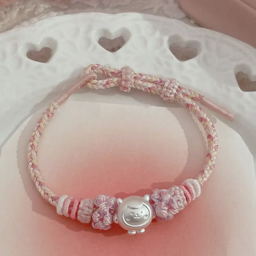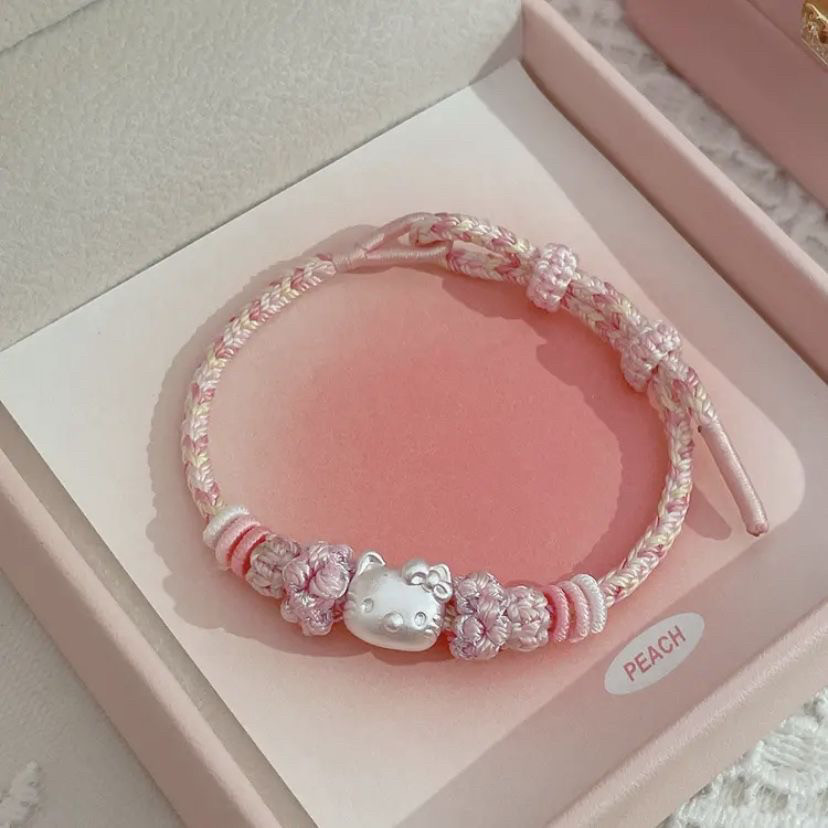 999 Pure Silver Sanrio Kuromi Bracelet, Cute Cartoon My Melody Wristband, Gift for Best Friend or Girlfriend