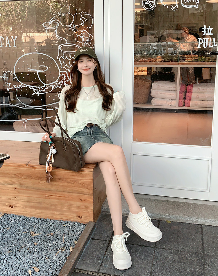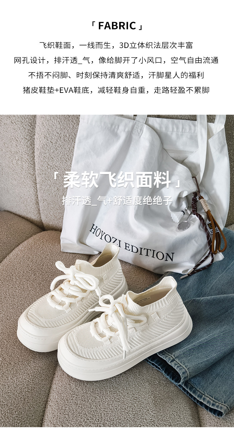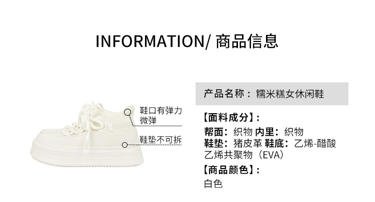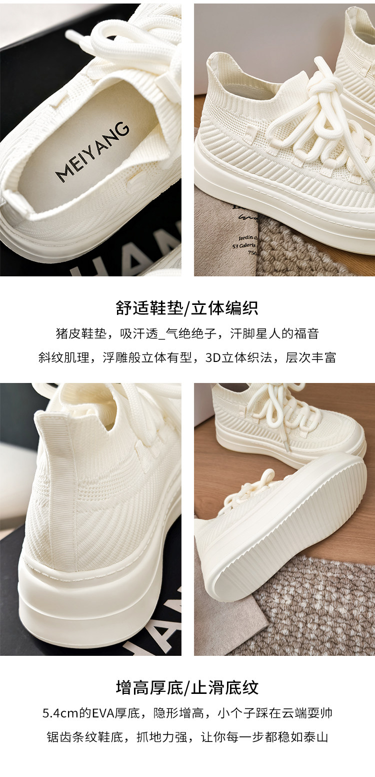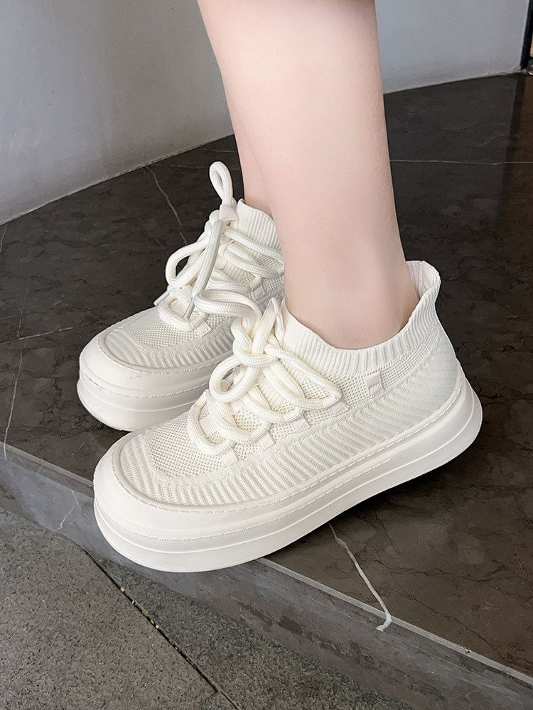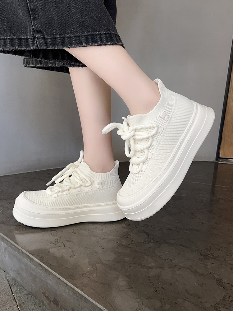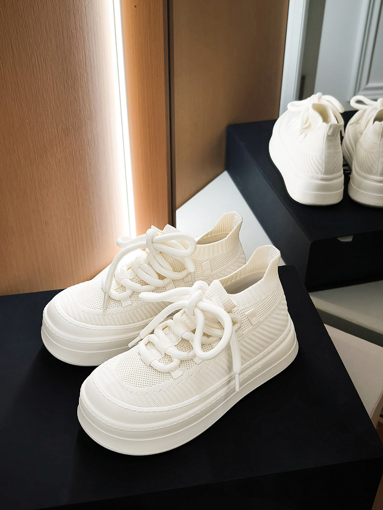Meiyang【In Stock】Glutinous Rice Cake Casual Shoes Round Toe Thick Sole Height-Increasing Flyknit White Shoes-Tuesday