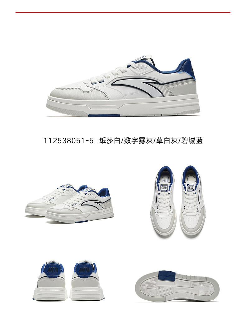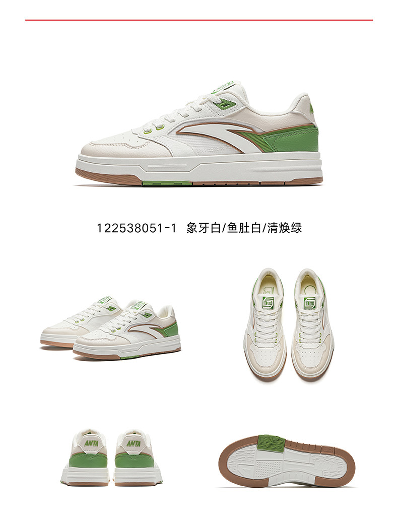 Anta Street Lite | Classic Low-Top Skate Shoes for Men and Women, Couple's White Sneakers 112538051