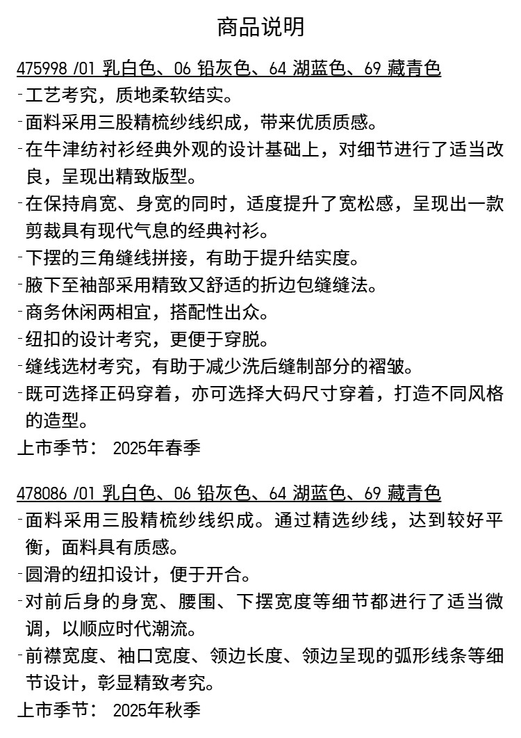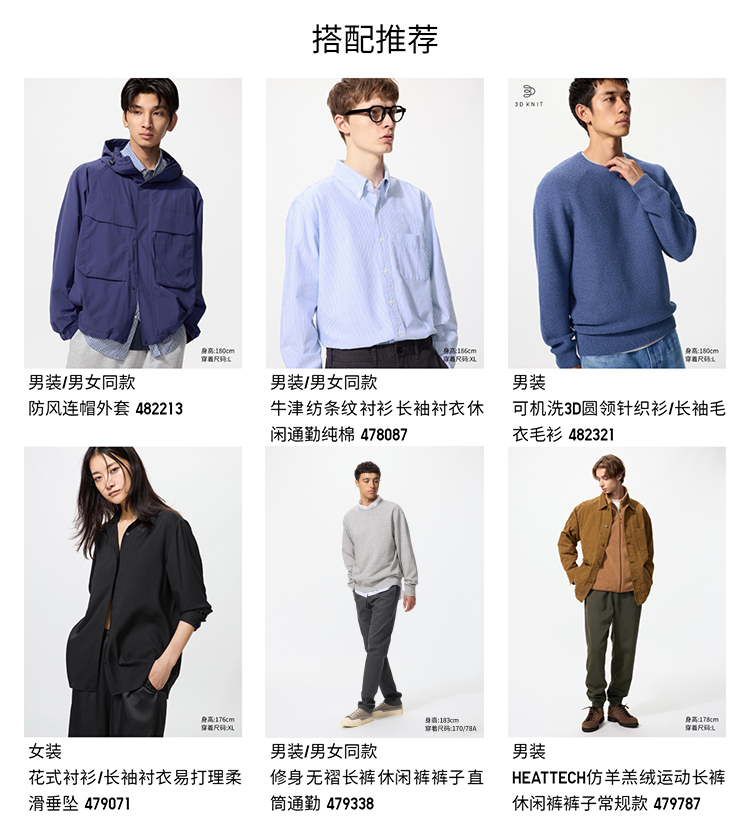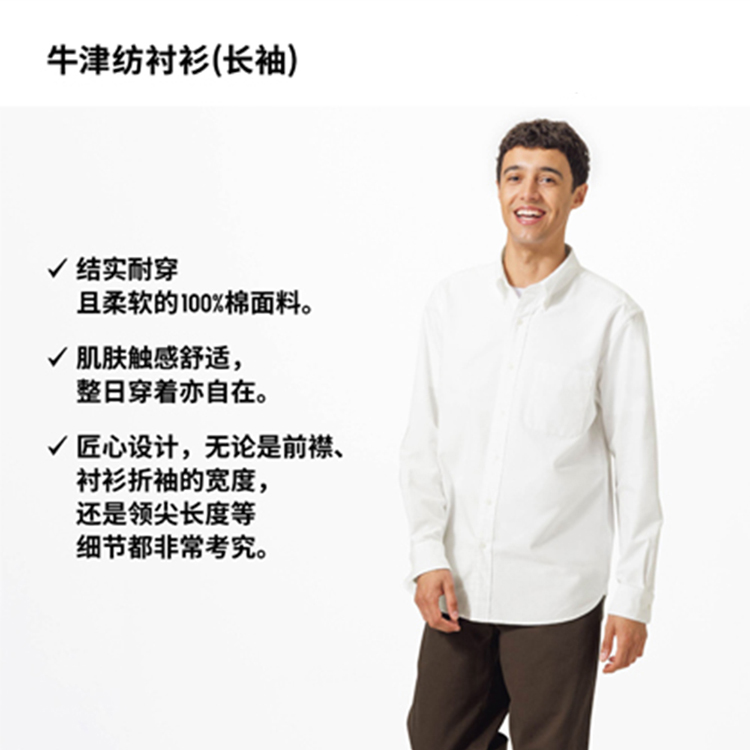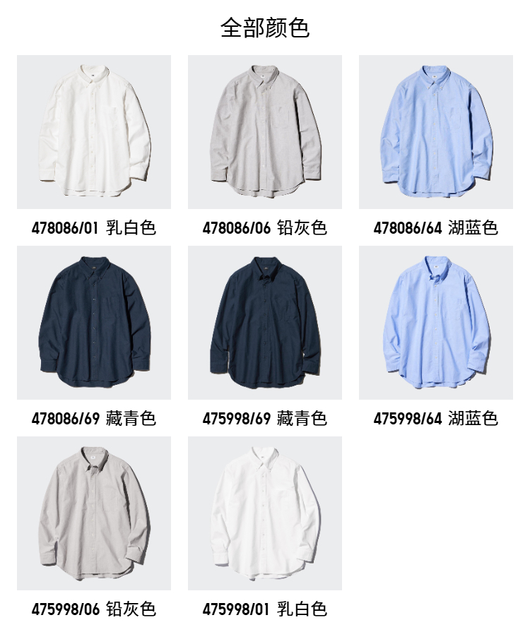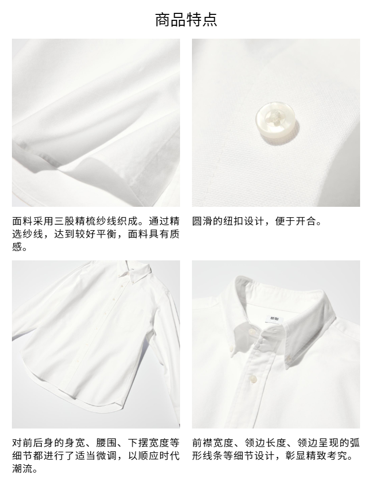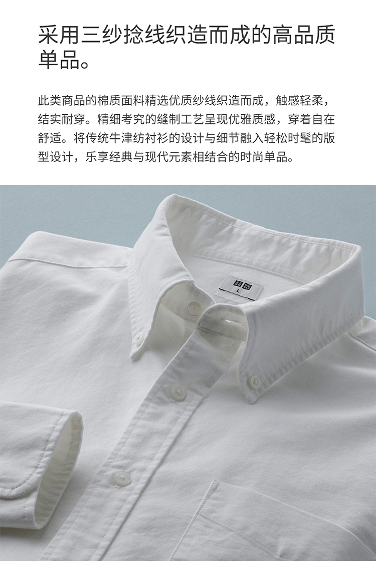 Uniqlo Men's and Women's Oxford Fabric Shirts Long-Sleeved Shirts Casual Plain Casual Commuting 478086 475998