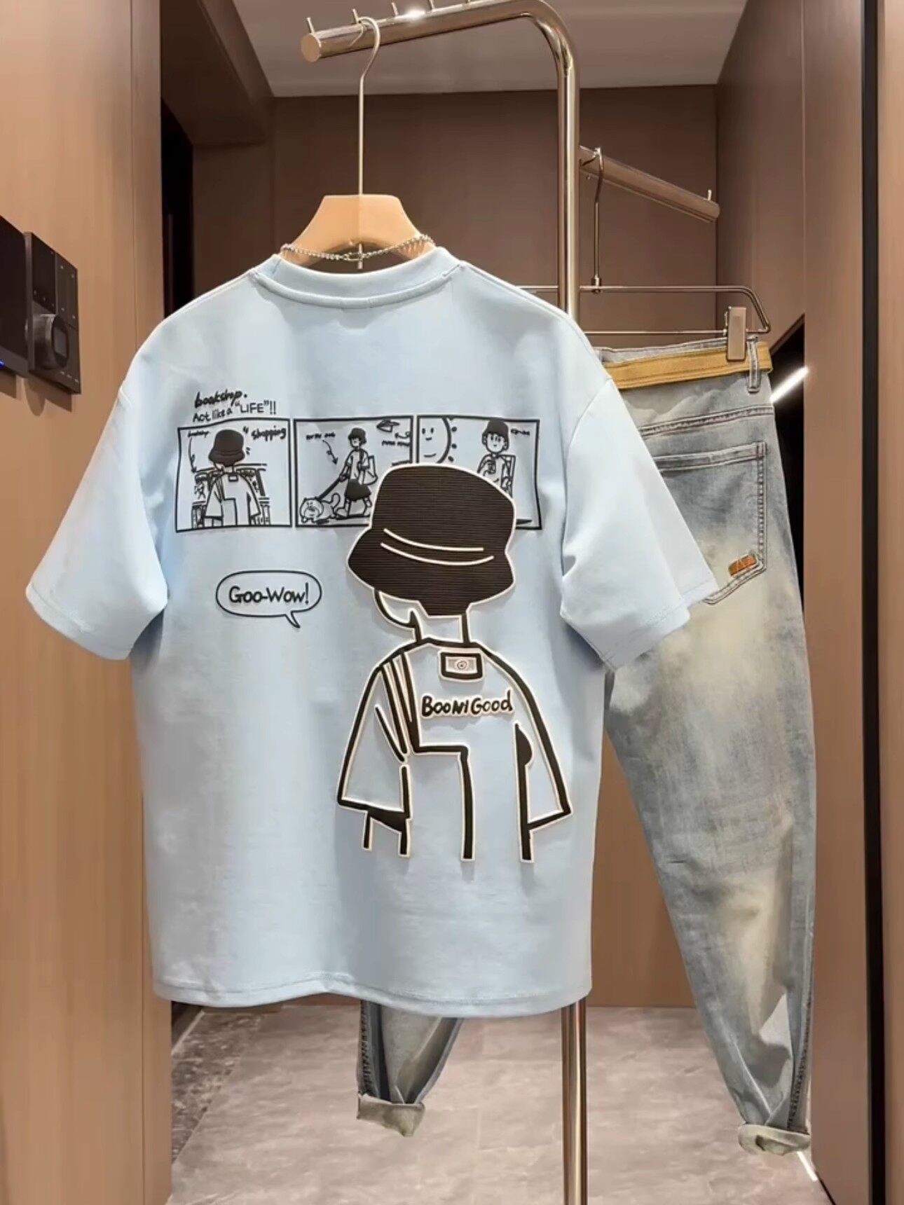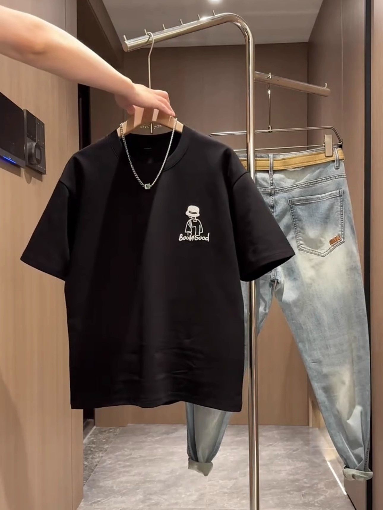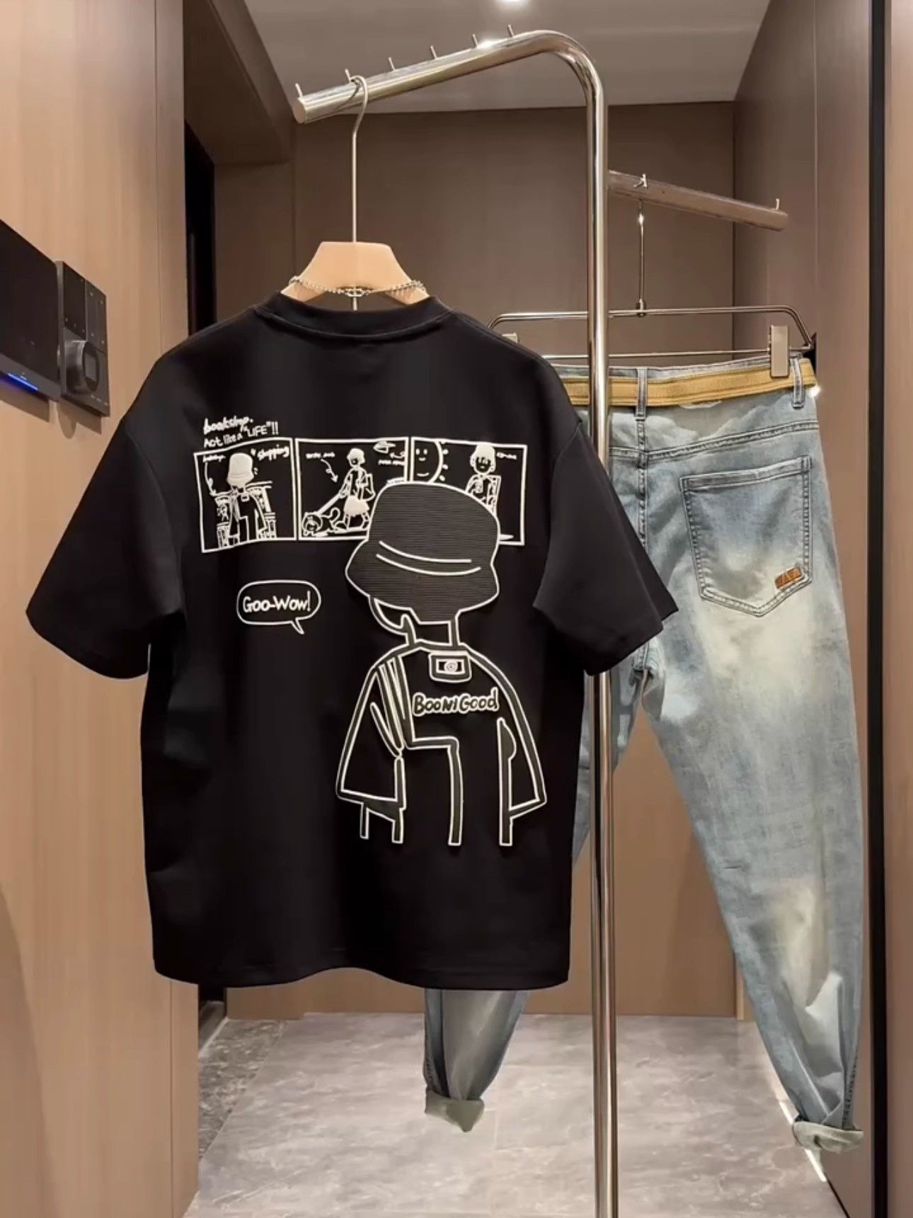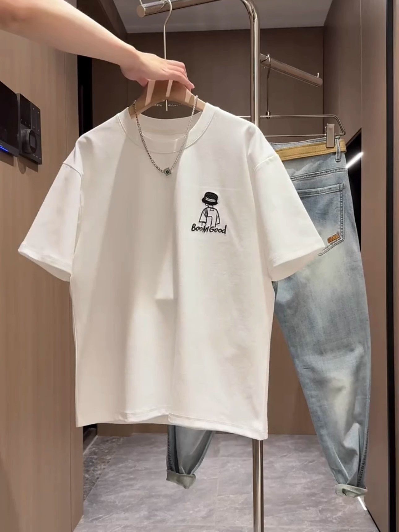 Kangshi Yishu Trendy Brand Summer White Round Neck Short-Sleeved T-Shirt for Men, High-End Fashion, Loose Casual Heavyweight Top