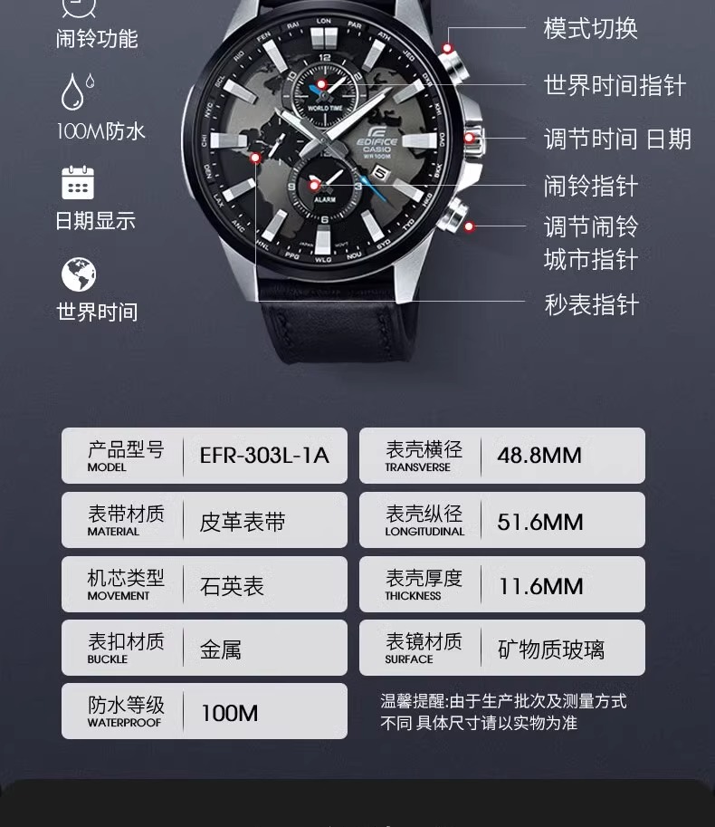Casio Casio Watch Earth Heart Business Men's Watch Edifice Genuine Quartz Watch Efr-303L