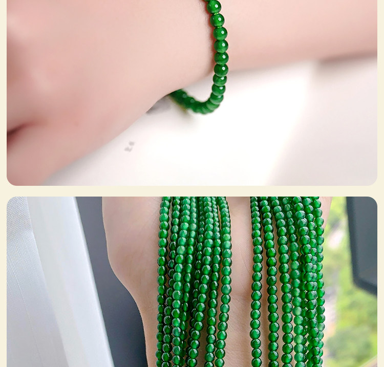 Natural A-Grade High Ice Jade Full Spicy Green Bracelet, Collectible High-End Jadeite Small Bead Bracelet, Women's Gift