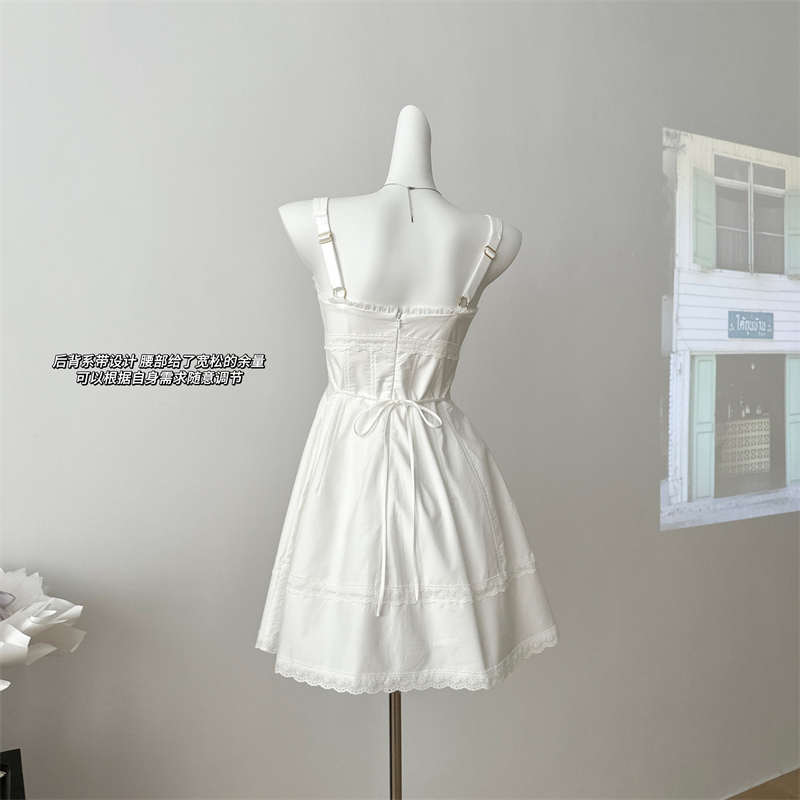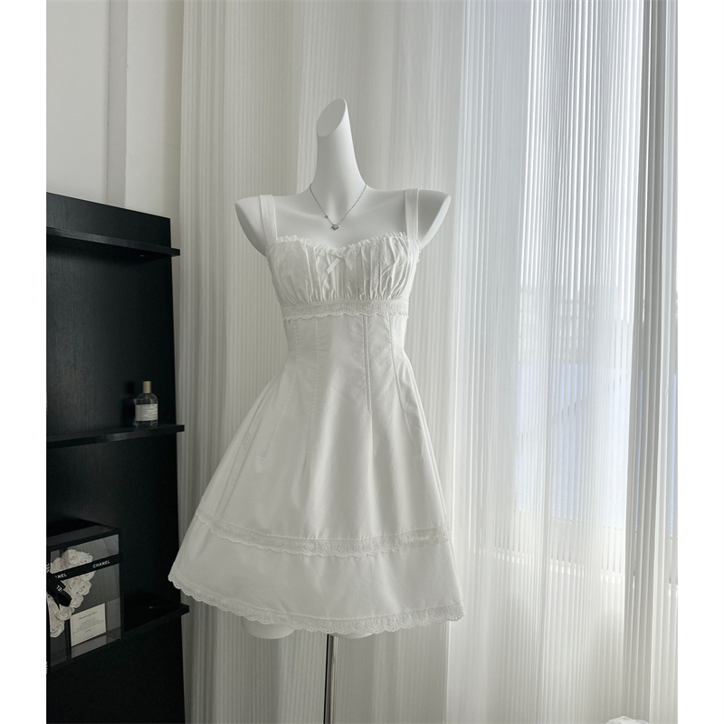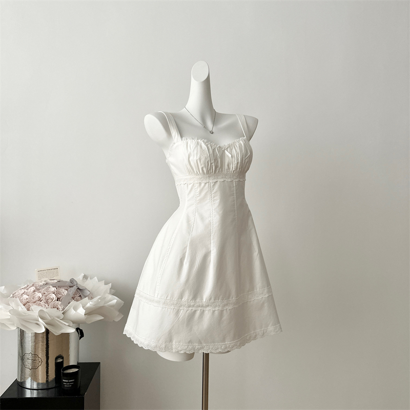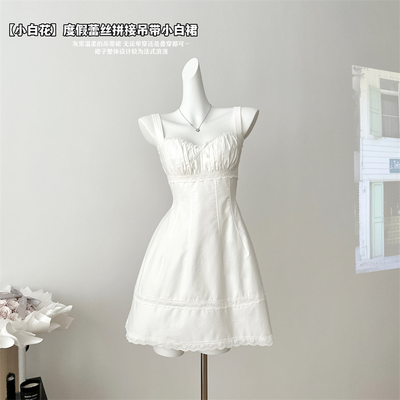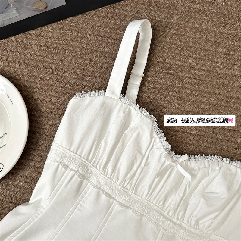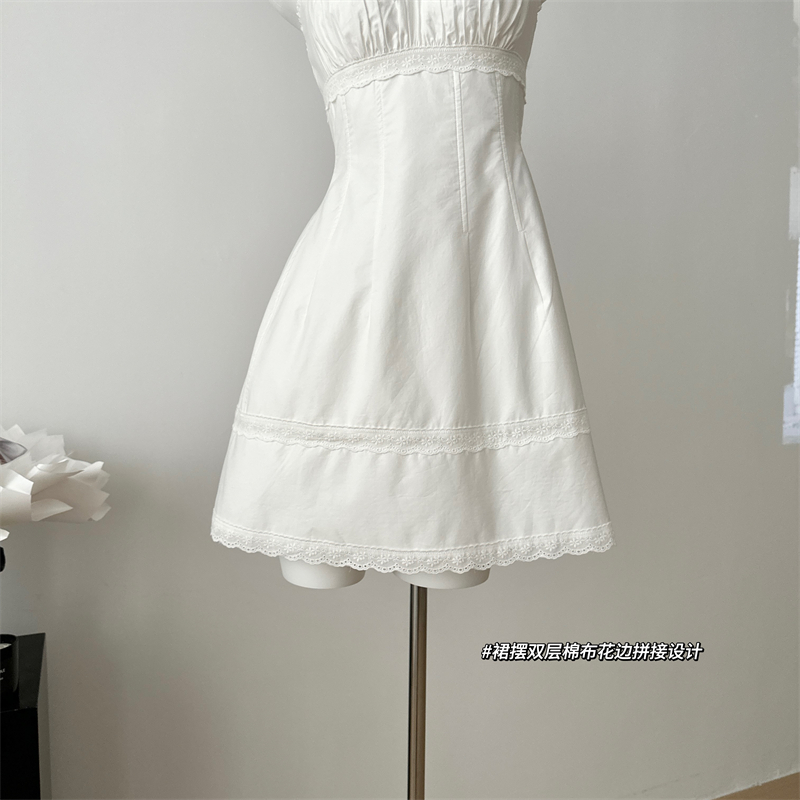 Miyou's Homemade White Floral 100% Cotton Lace Patchwork Camisole White Dress Vacation Dress