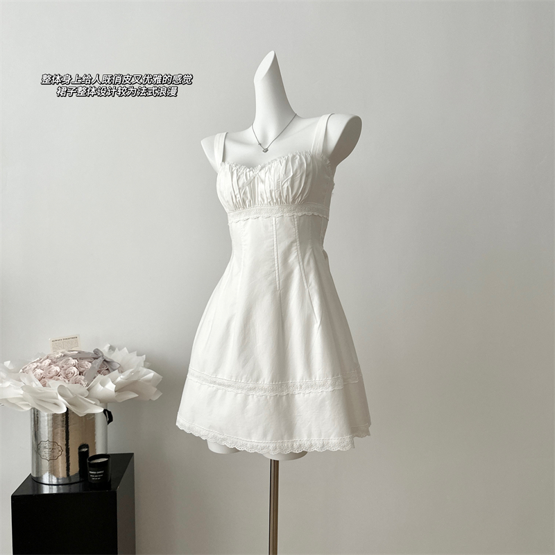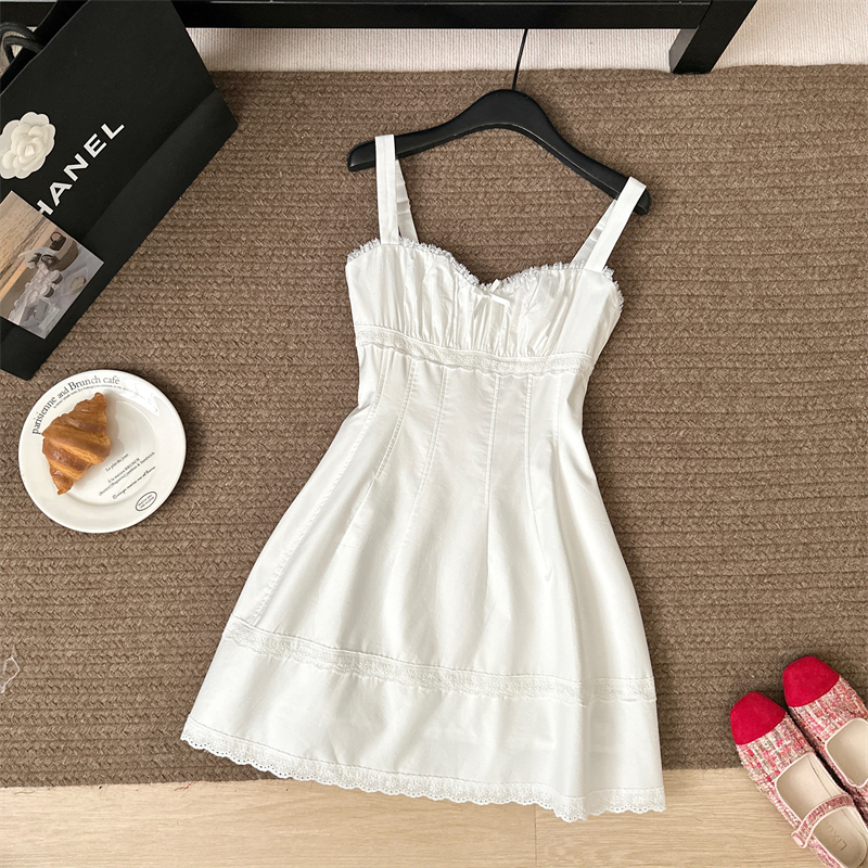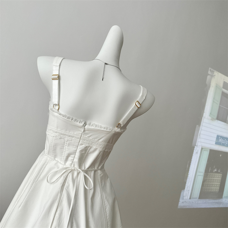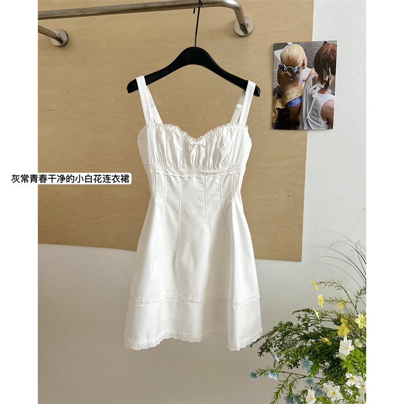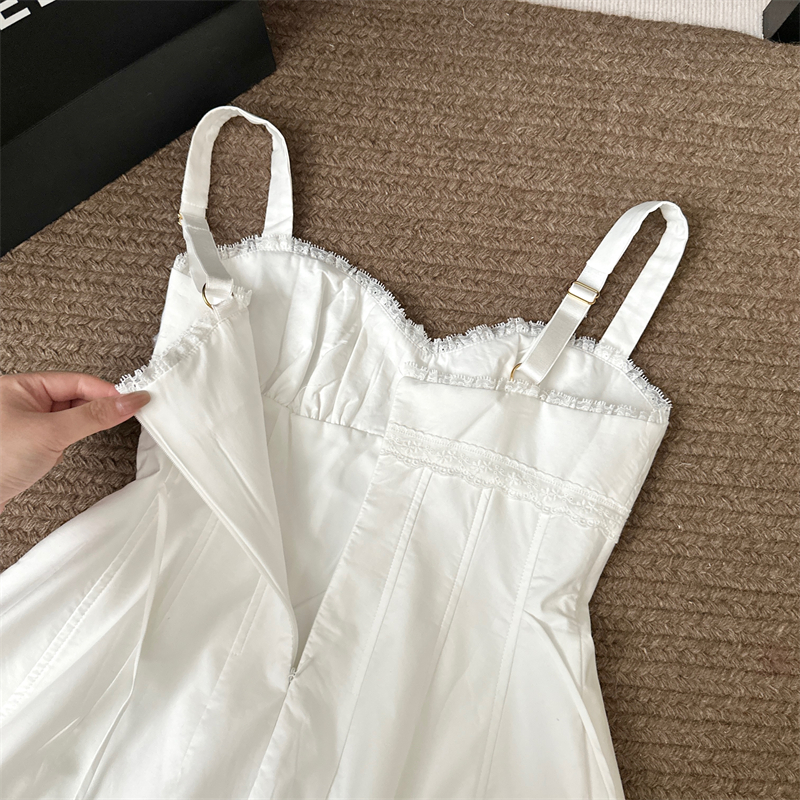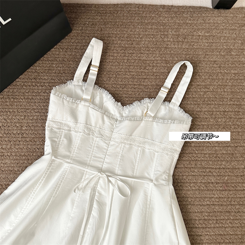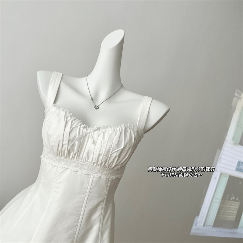 Miyou's Homemade White Floral 100% Cotton Lace Patchwork Camisole White Dress Vacation Dress