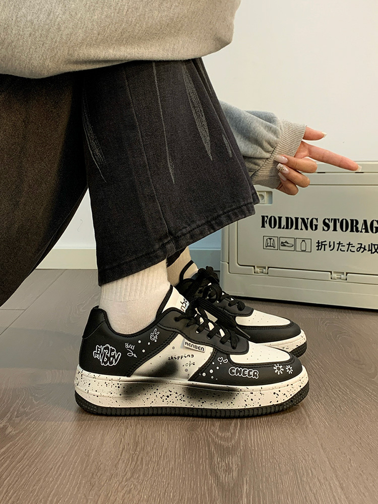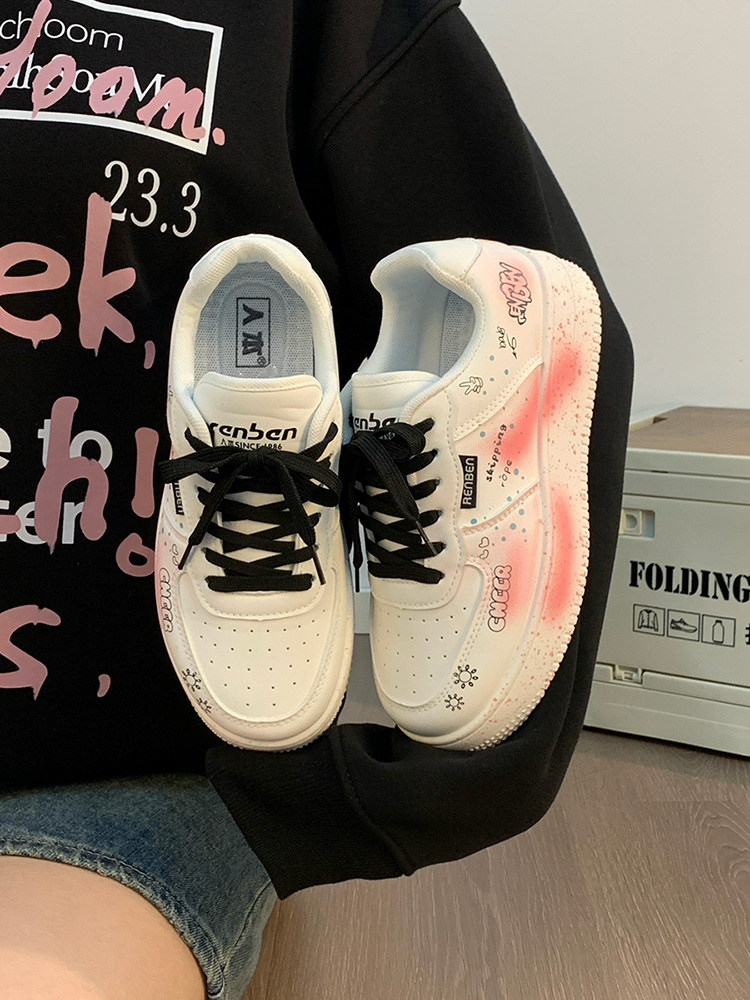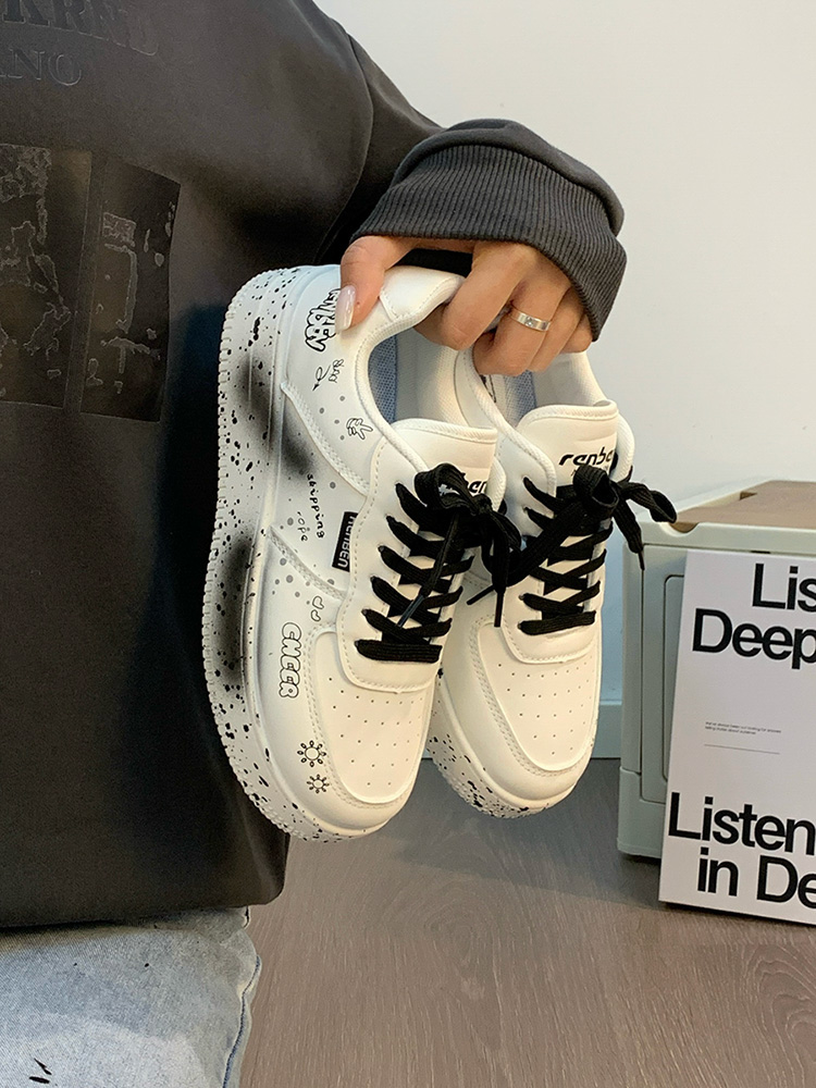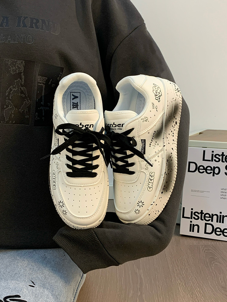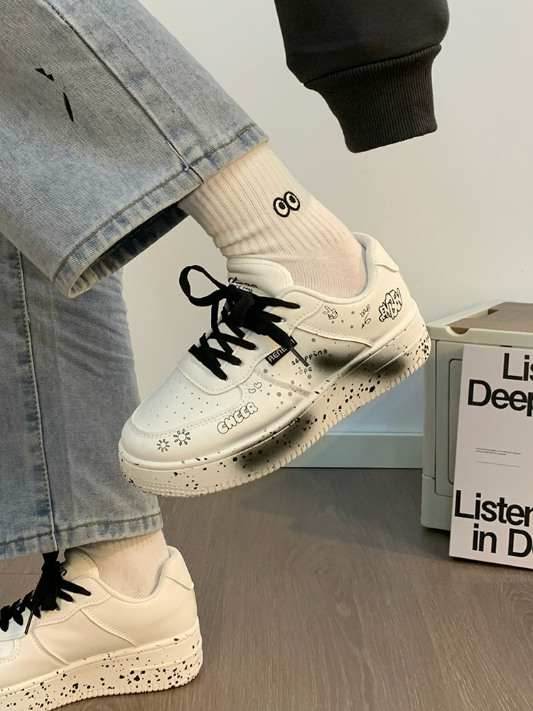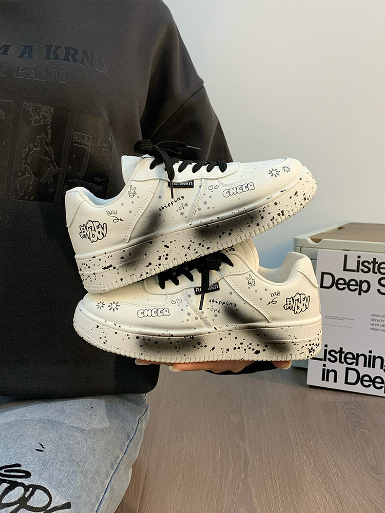 Renben Men's Shoes Autumn 2025 New Versatile Popular White Shoes Couple's Cool Graffiti Casual Sneakers Trendy