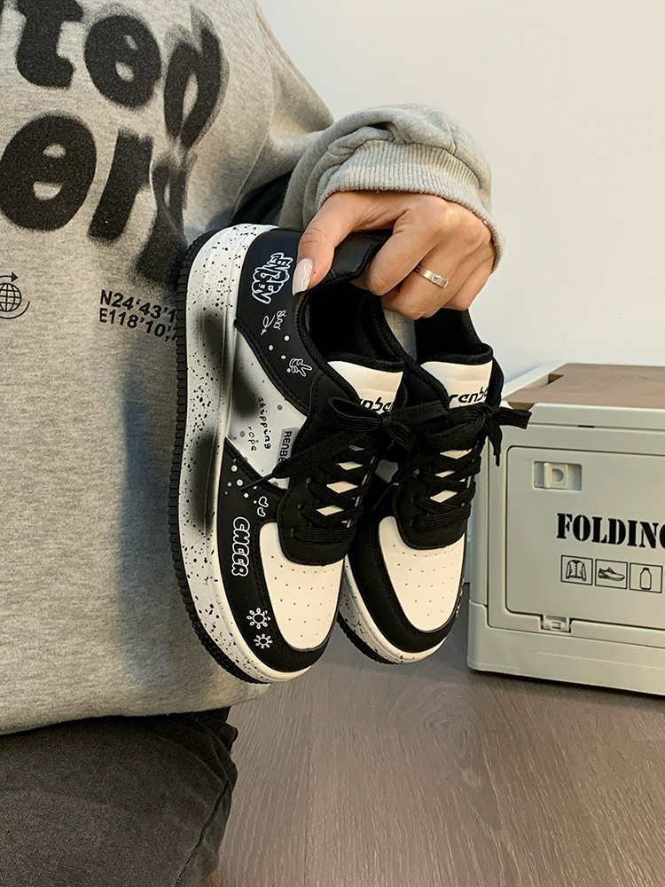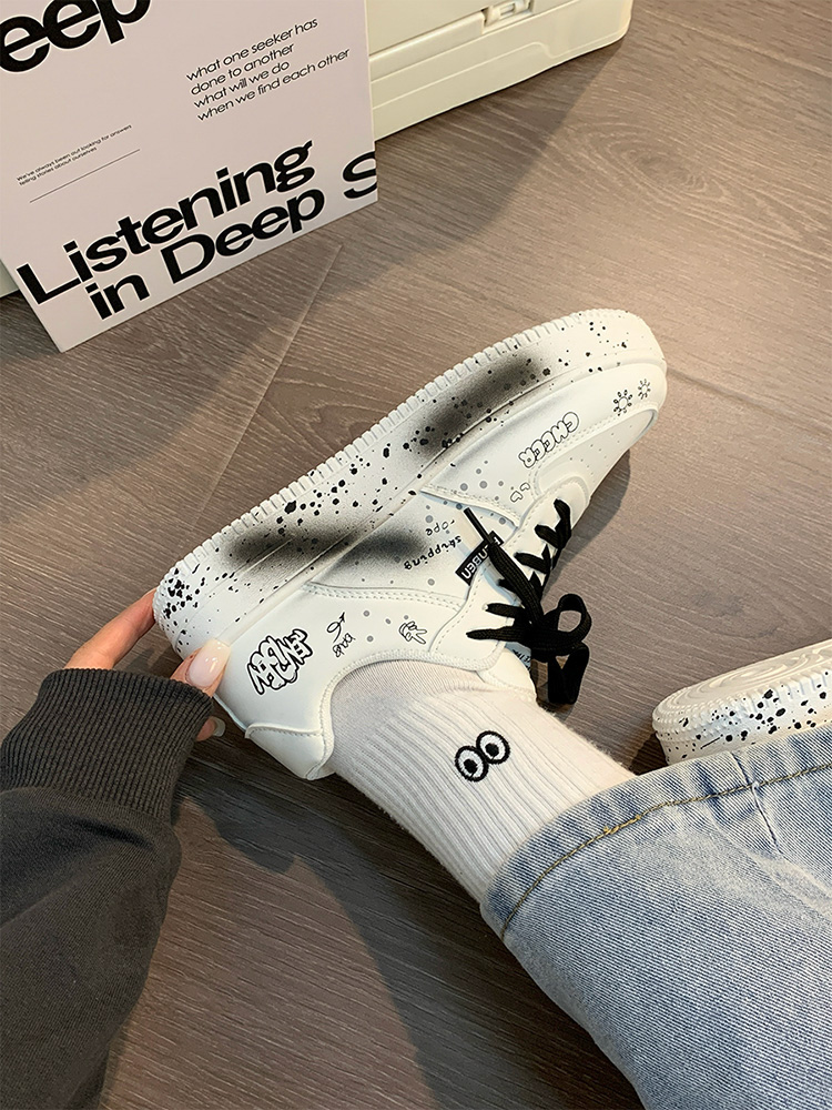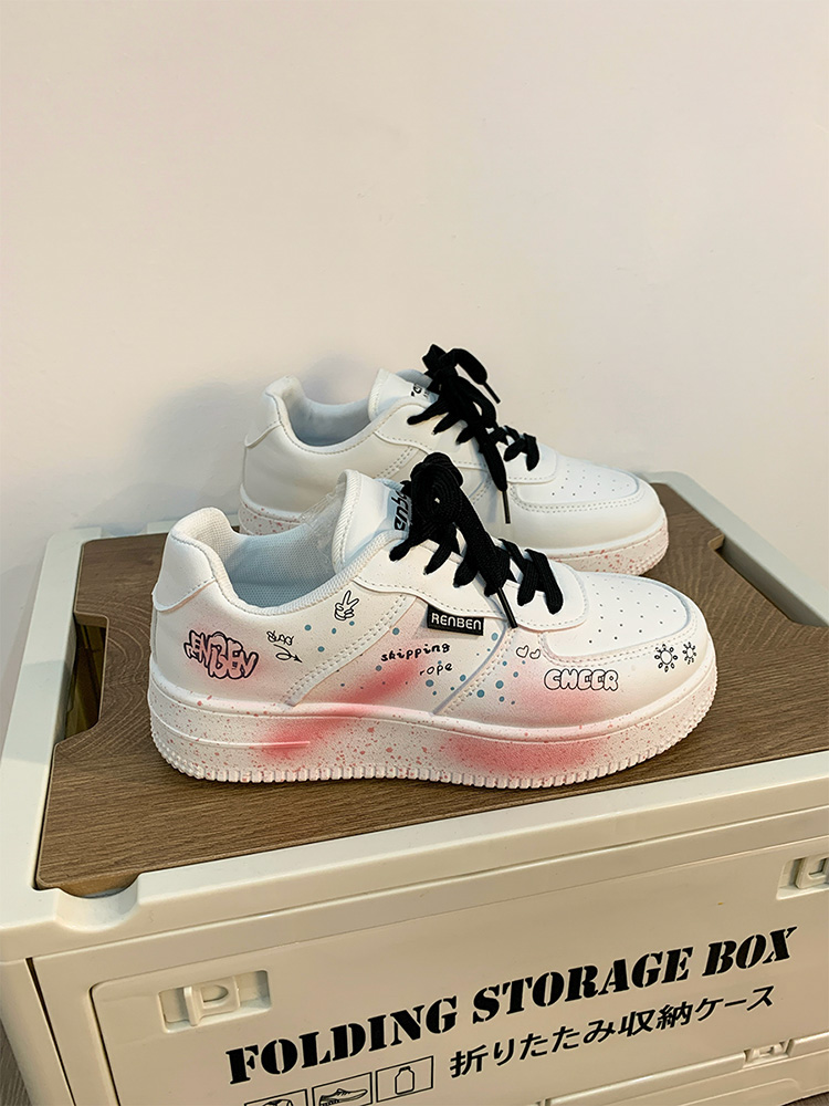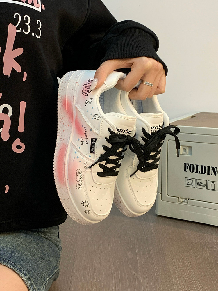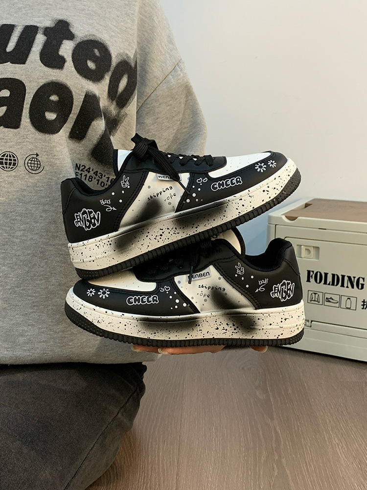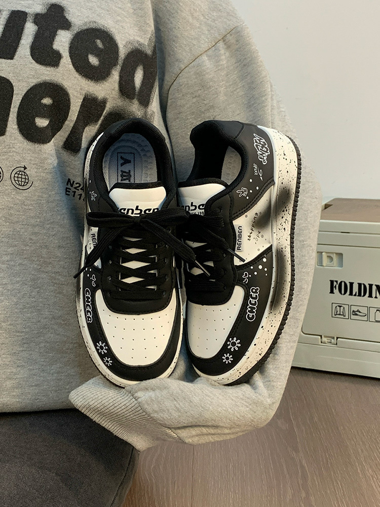 Renben Men's Shoes Autumn 2025 New Versatile Popular White Shoes Couple's Cool Graffiti Casual Sneakers Trendy