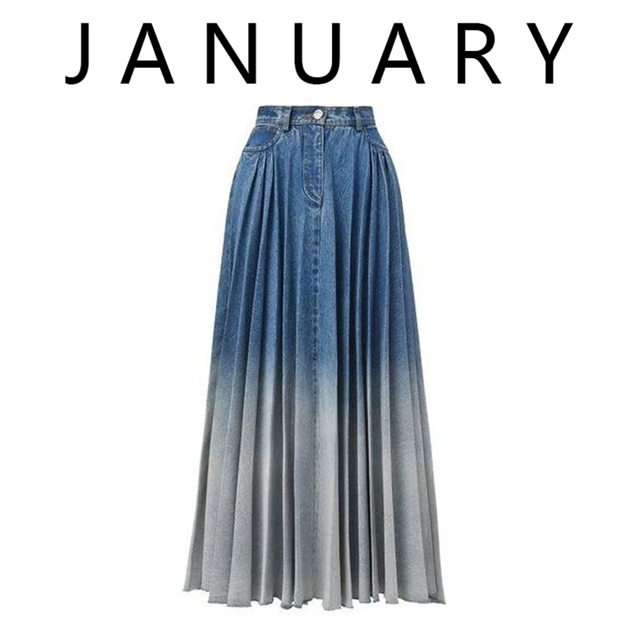 January Denim Pleated Skirt Women's 2025 New American Street Style High Waist Slim A-Line Skirt Trendy