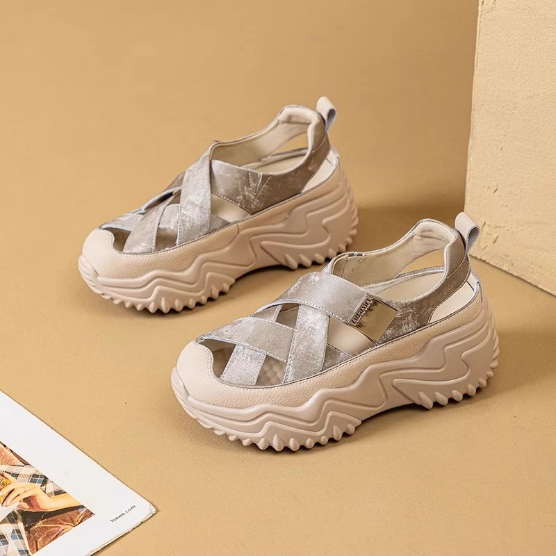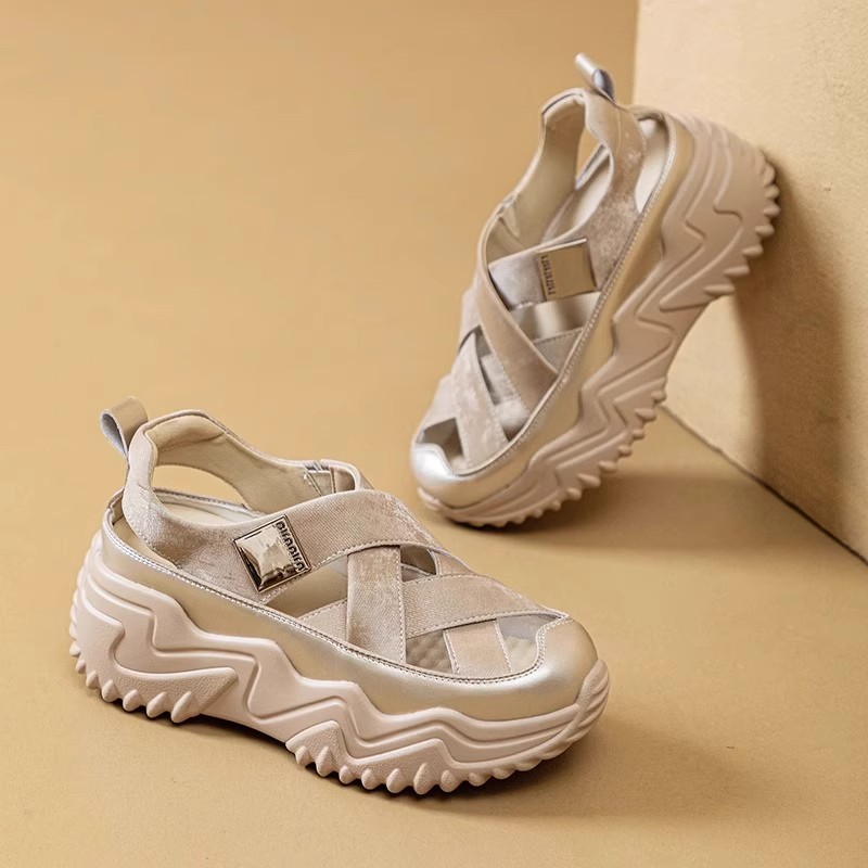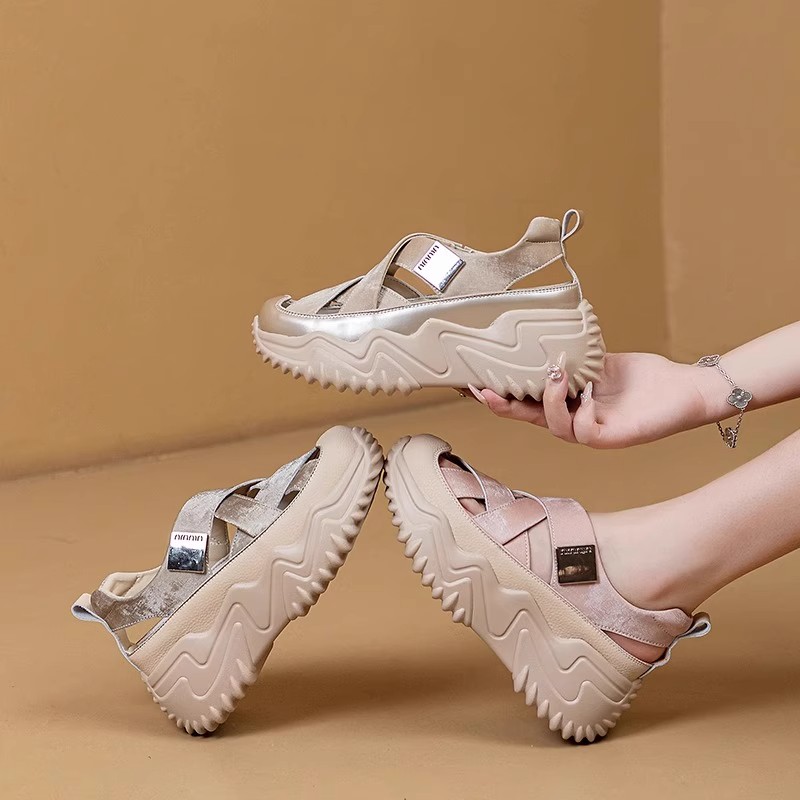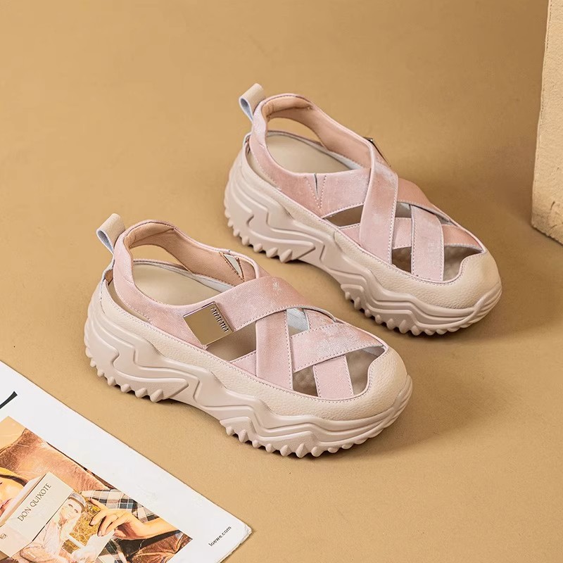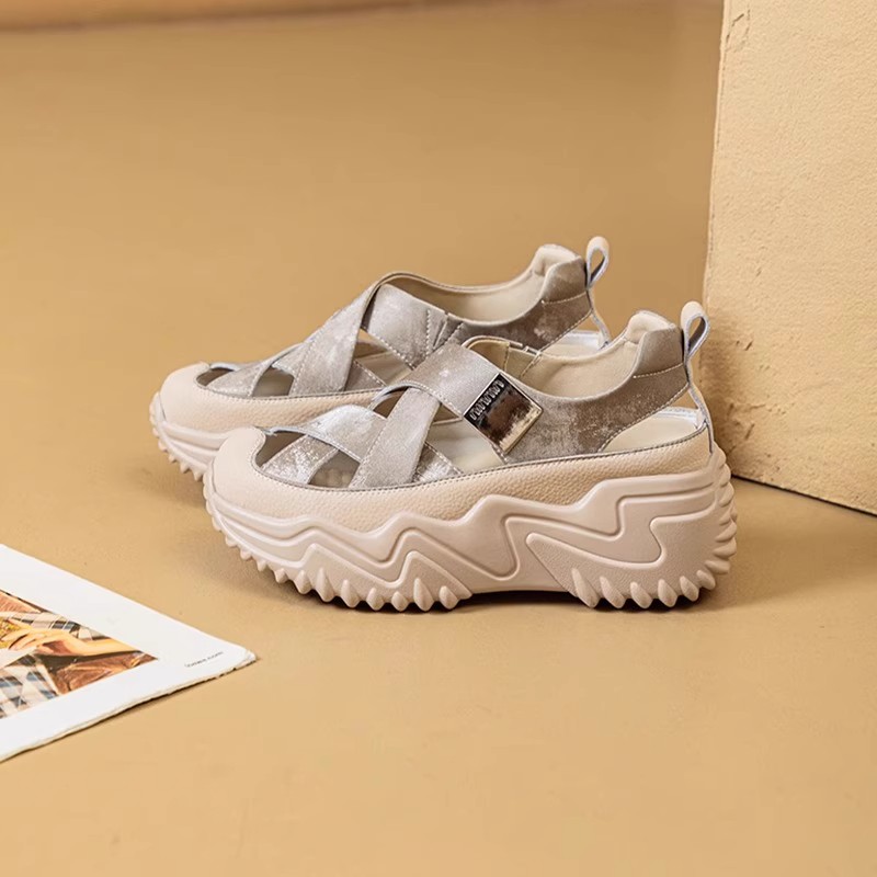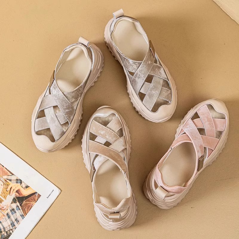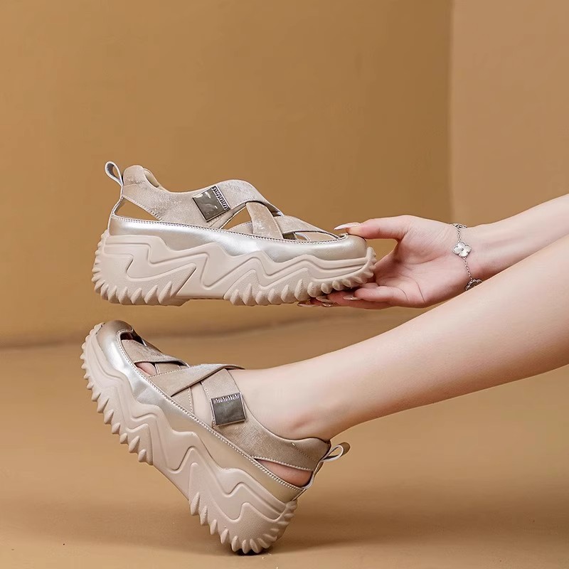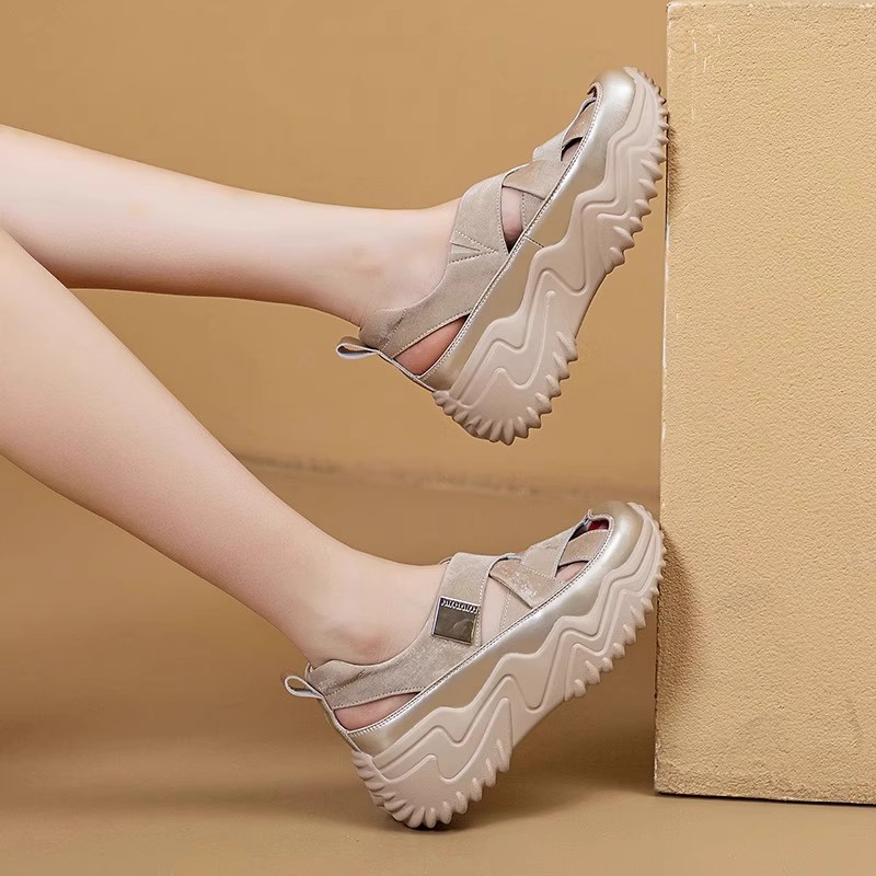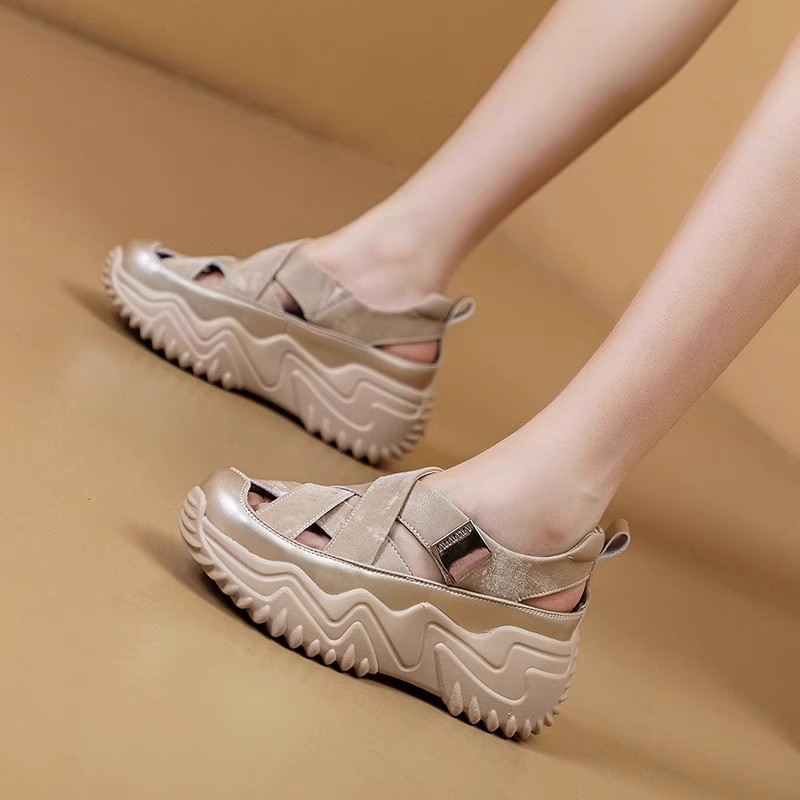 Brand Women's Shoes Genuine Leather Hollow Thick-Soled Dad Shoes Summer New Closed-Toe Sandals Women's Fashionable Versatile Roman Sandals