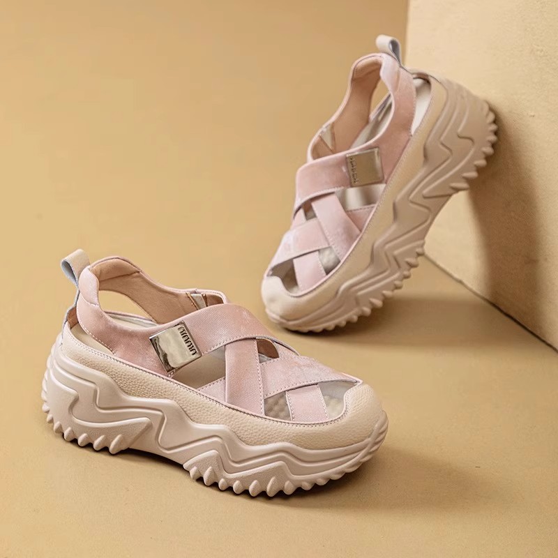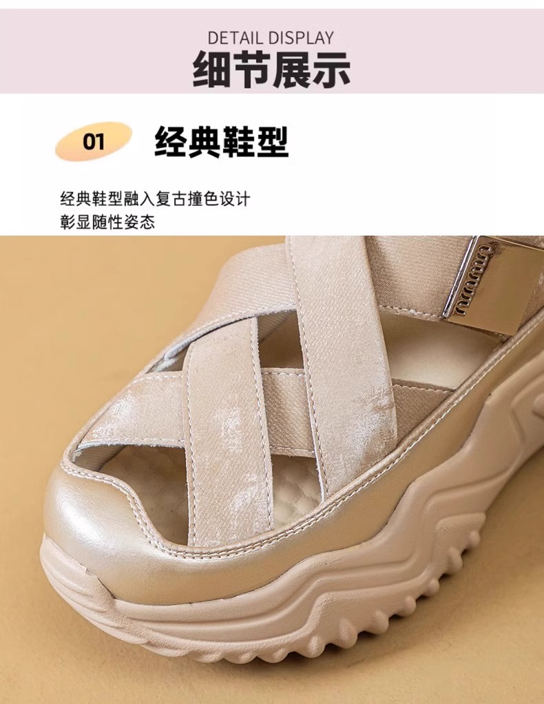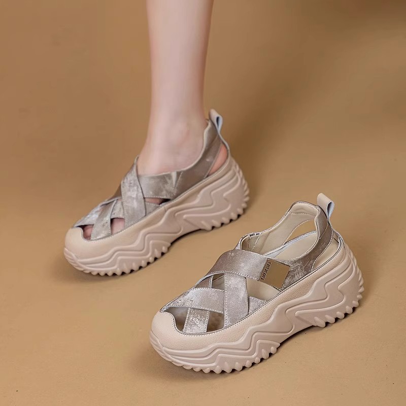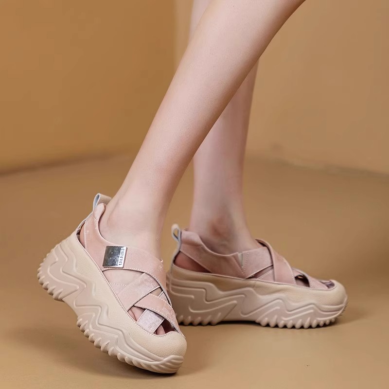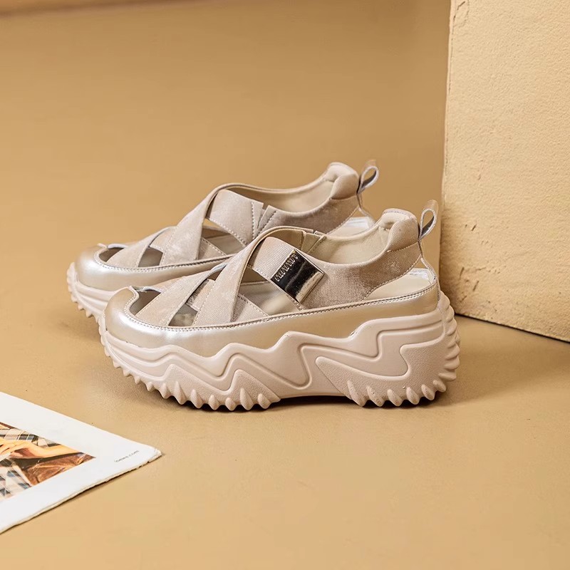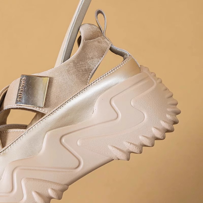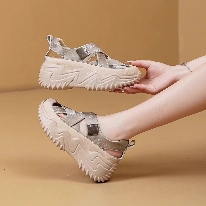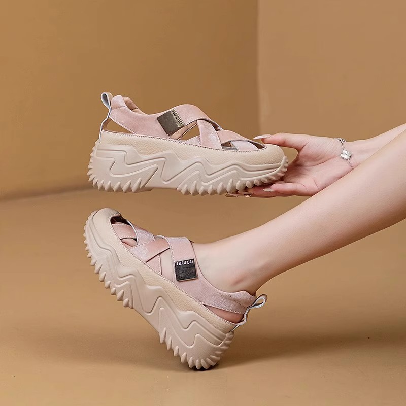 Brand Women's Shoes Genuine Leather Hollow Thick-Soled Dad Shoes Summer New Closed-Toe Sandals Women's Fashionable Versatile Roman Sandals