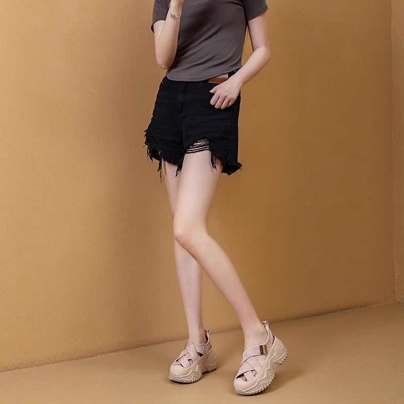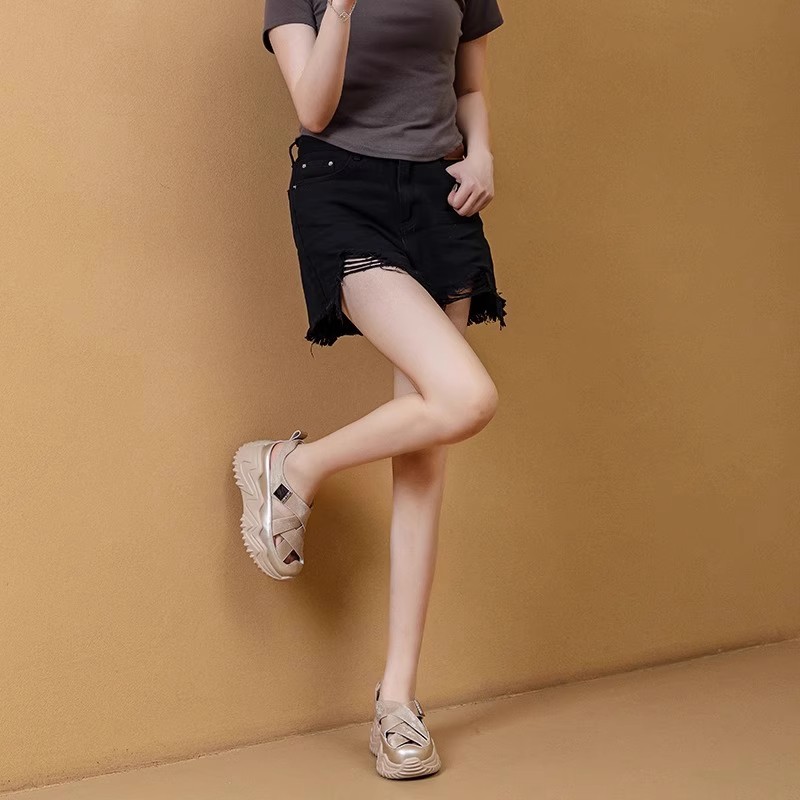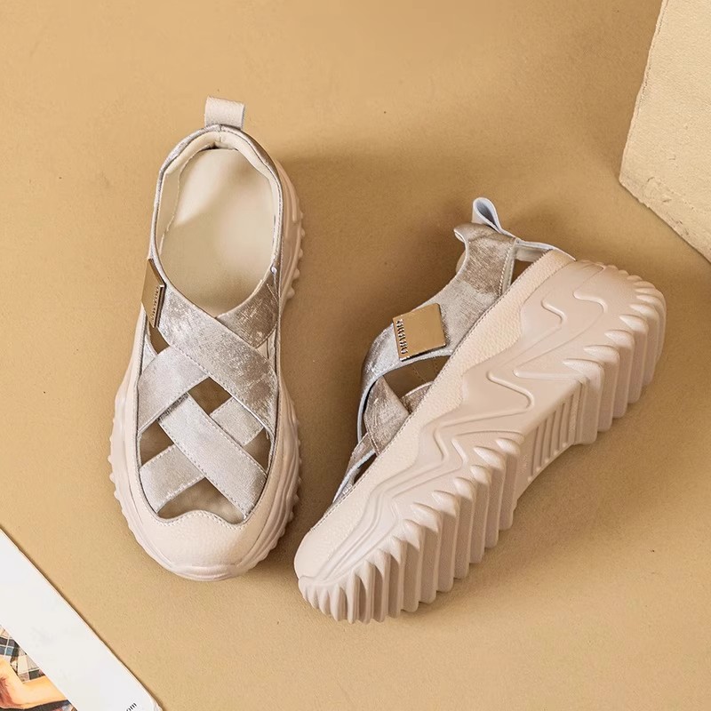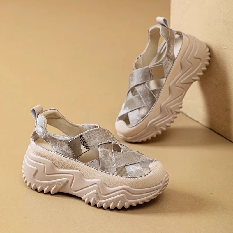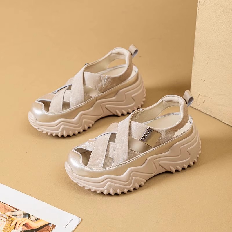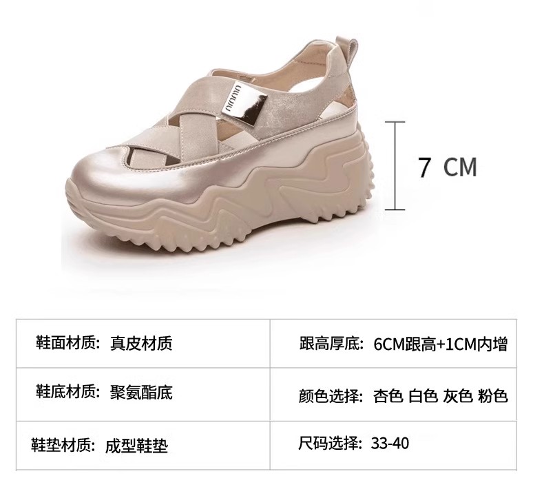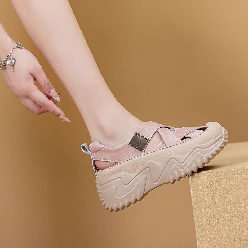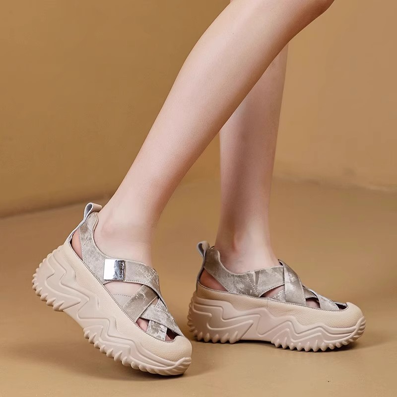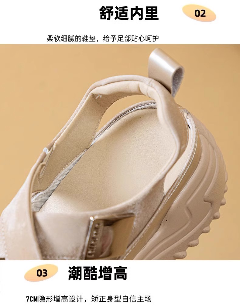 Brand Women's Shoes Genuine Leather Hollow Thick-Soled Dad Shoes Summer New Closed-Toe Sandals Women's Fashionable Versatile Roman Sandals
