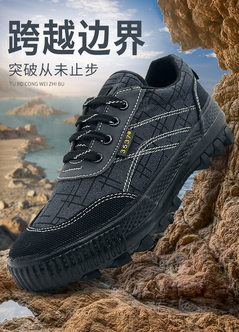 Jihua 3537 Genuine Liberation Shoes for Men, Breathable Safety Shoes, Durable Work Shoes for Construction Sites, Non-Slip Hiking Shoes for Summer