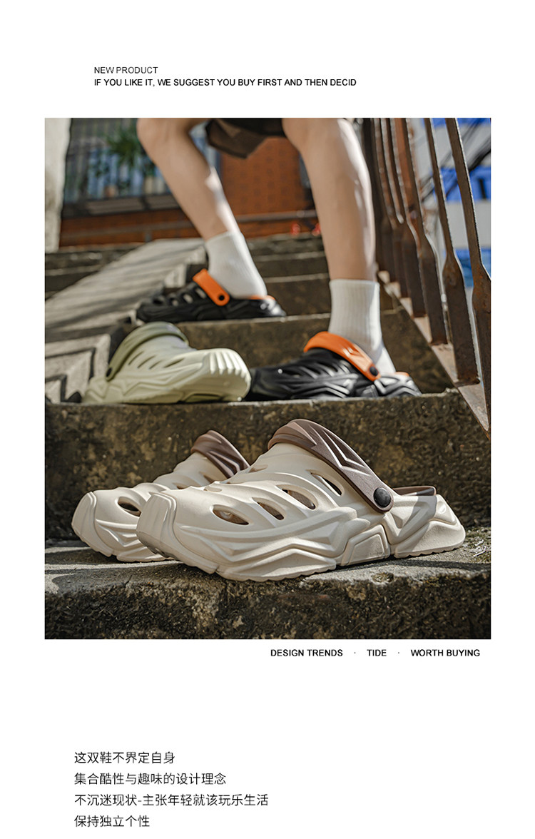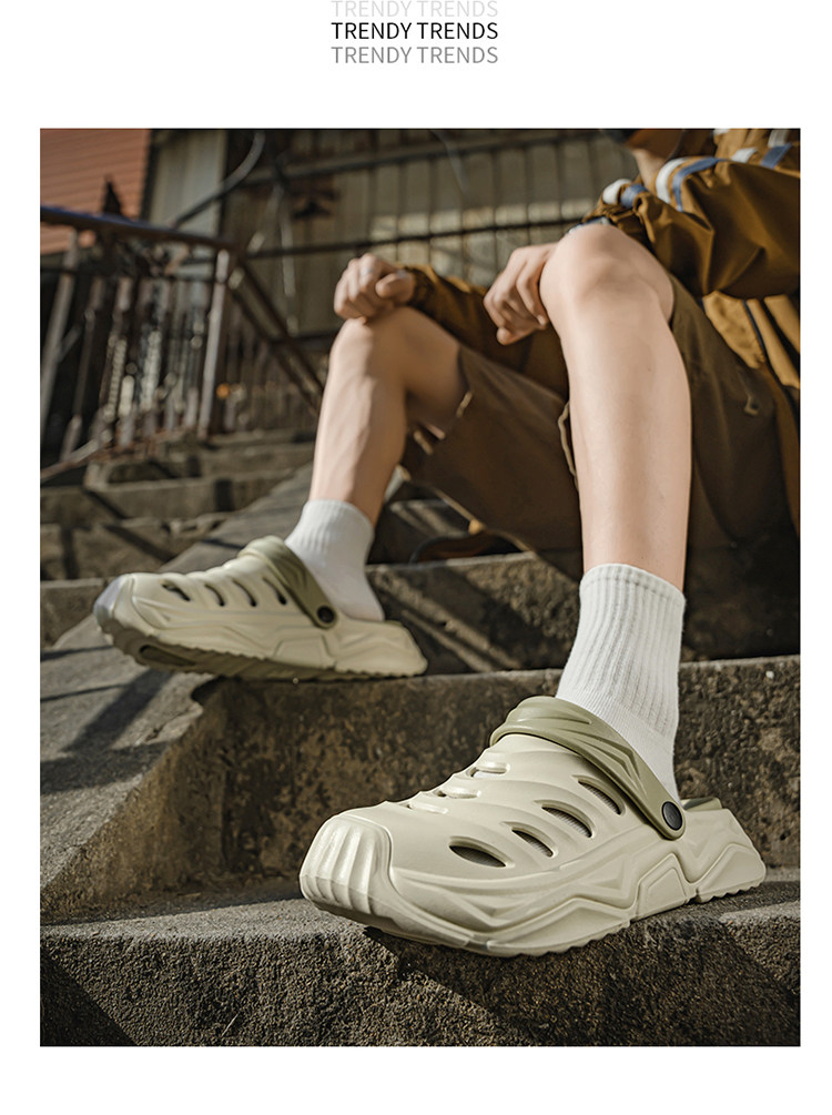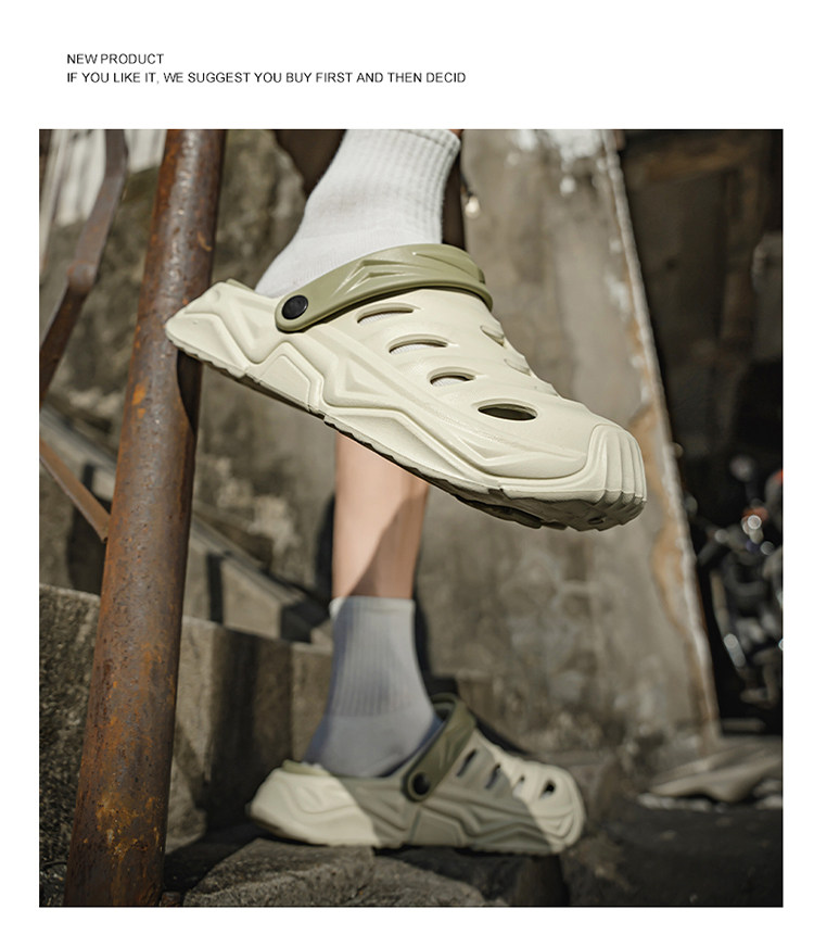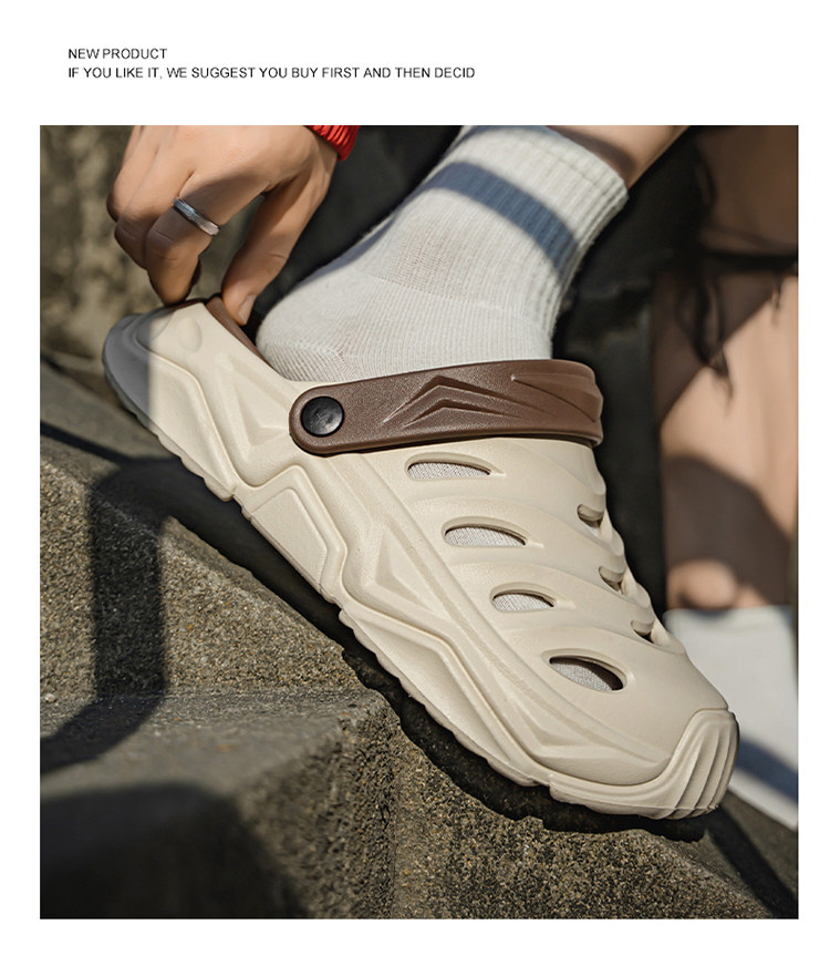 Trendy Brand soft sole Clogs for Men, Summer Outdoor Wear, Large Size Closed-Toe Sandals, Size 46, Beach Outdoor Sports Sandals