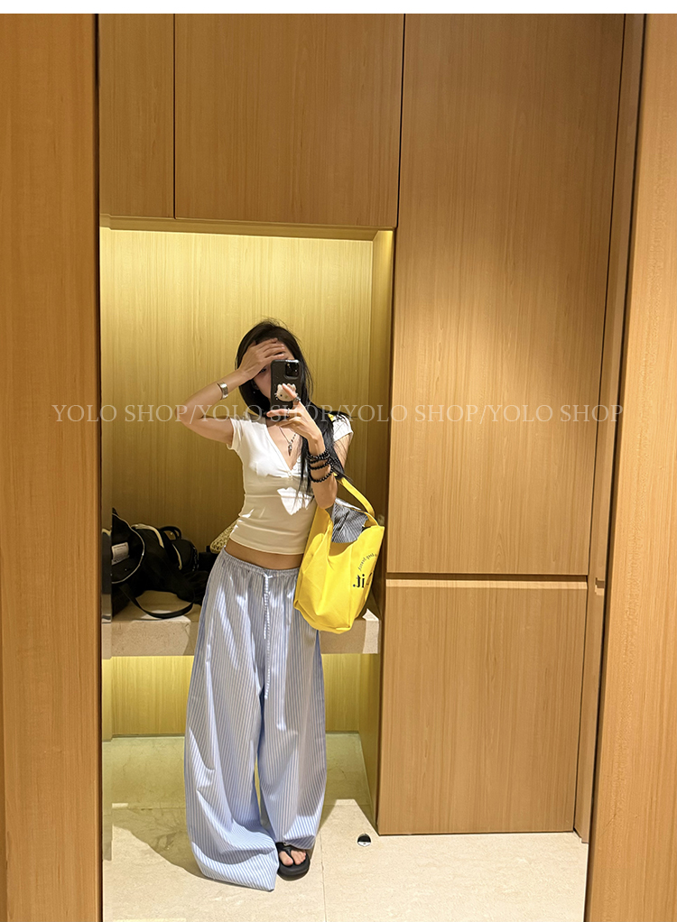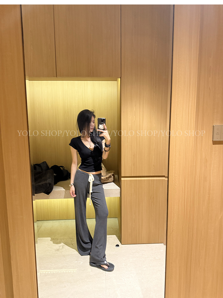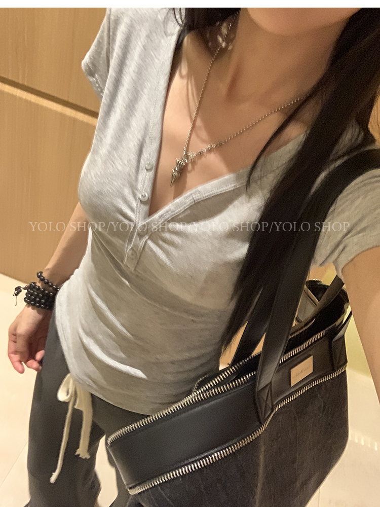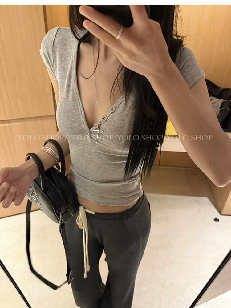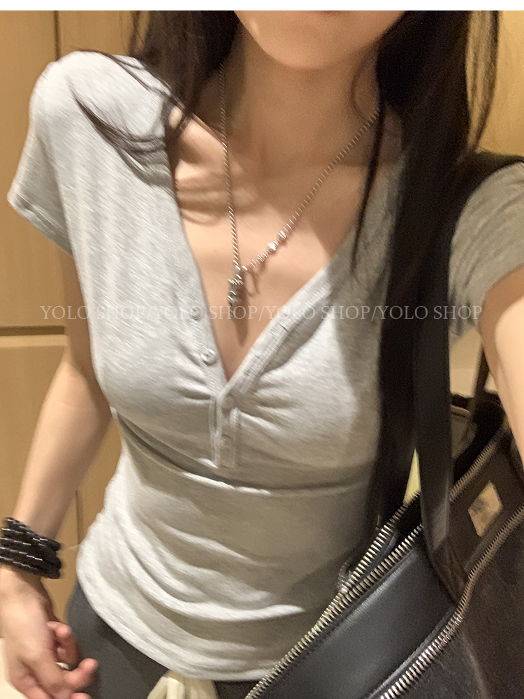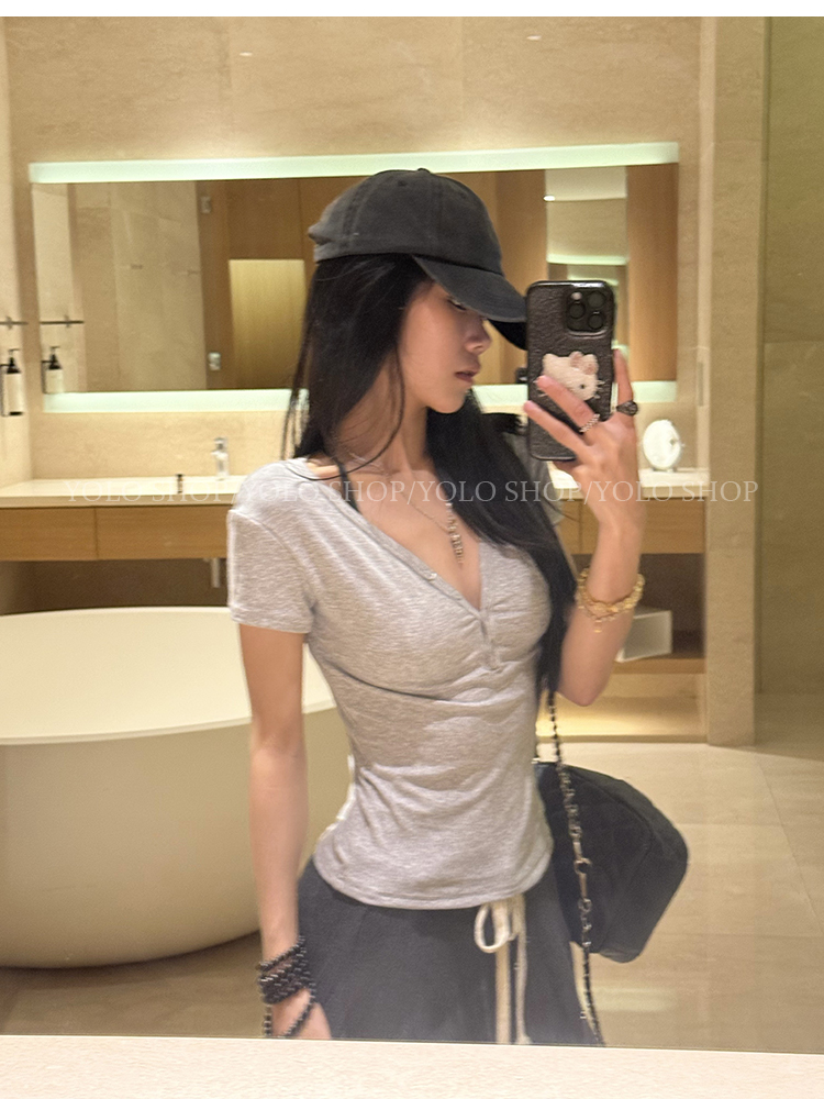 Yolo Shop White V-Neck Button-Down Short-Sleeve Women's Summer Elegant Slim-Fit Versatile Regular Shoulder T-Shirt Slimming Top