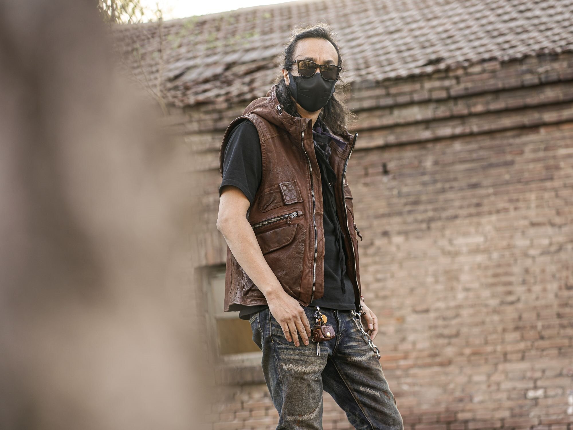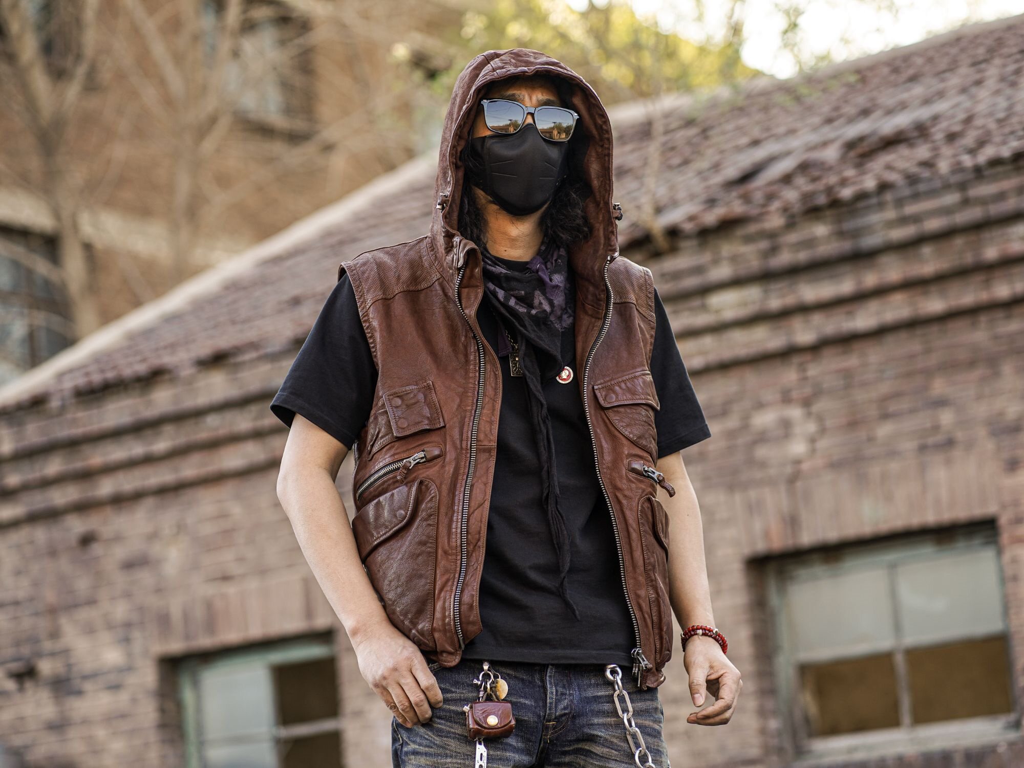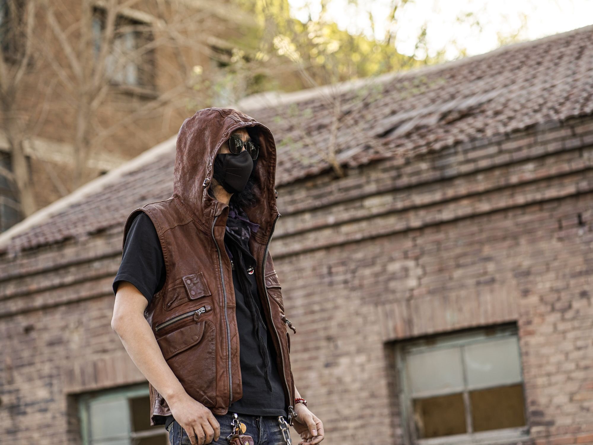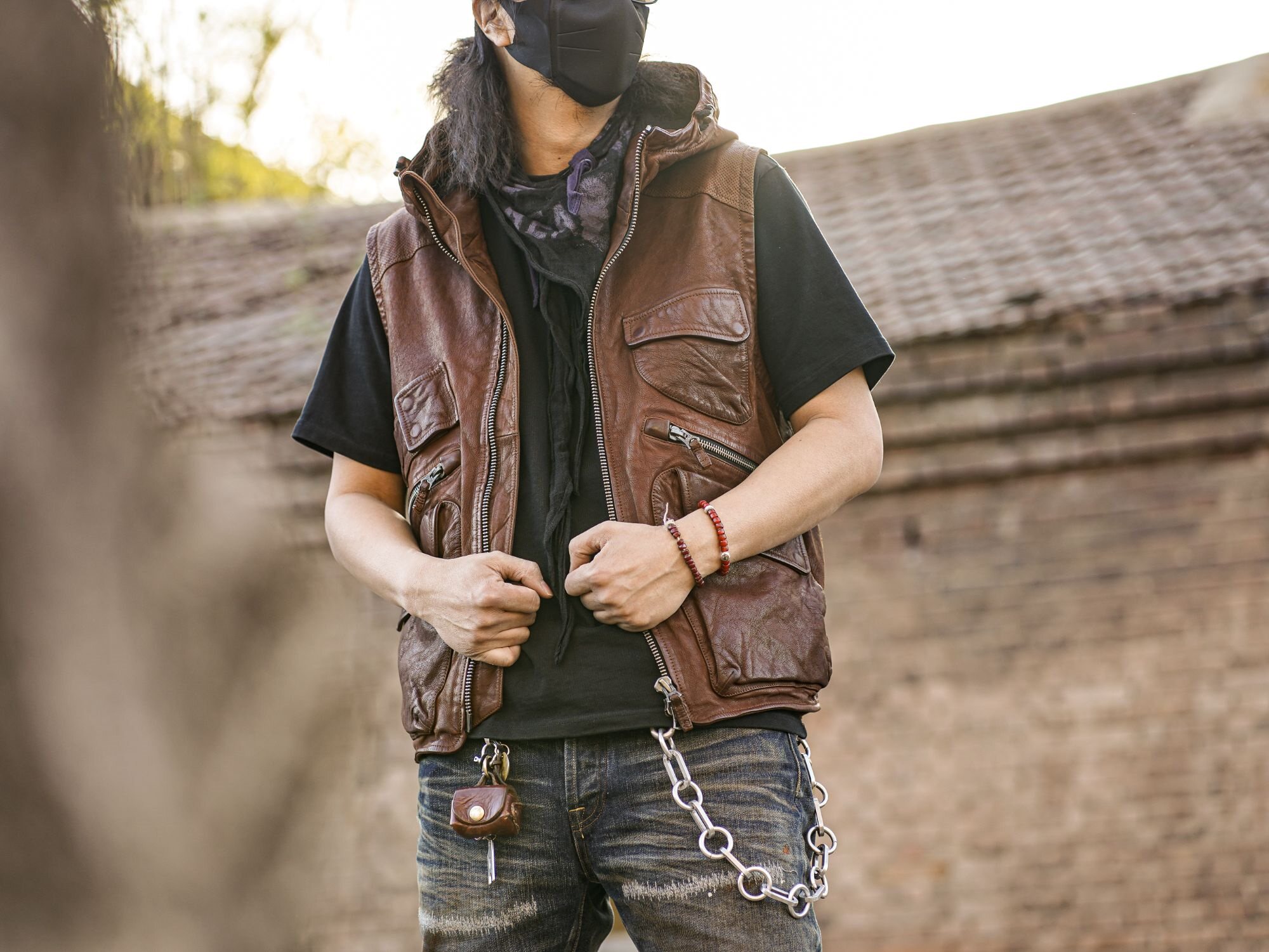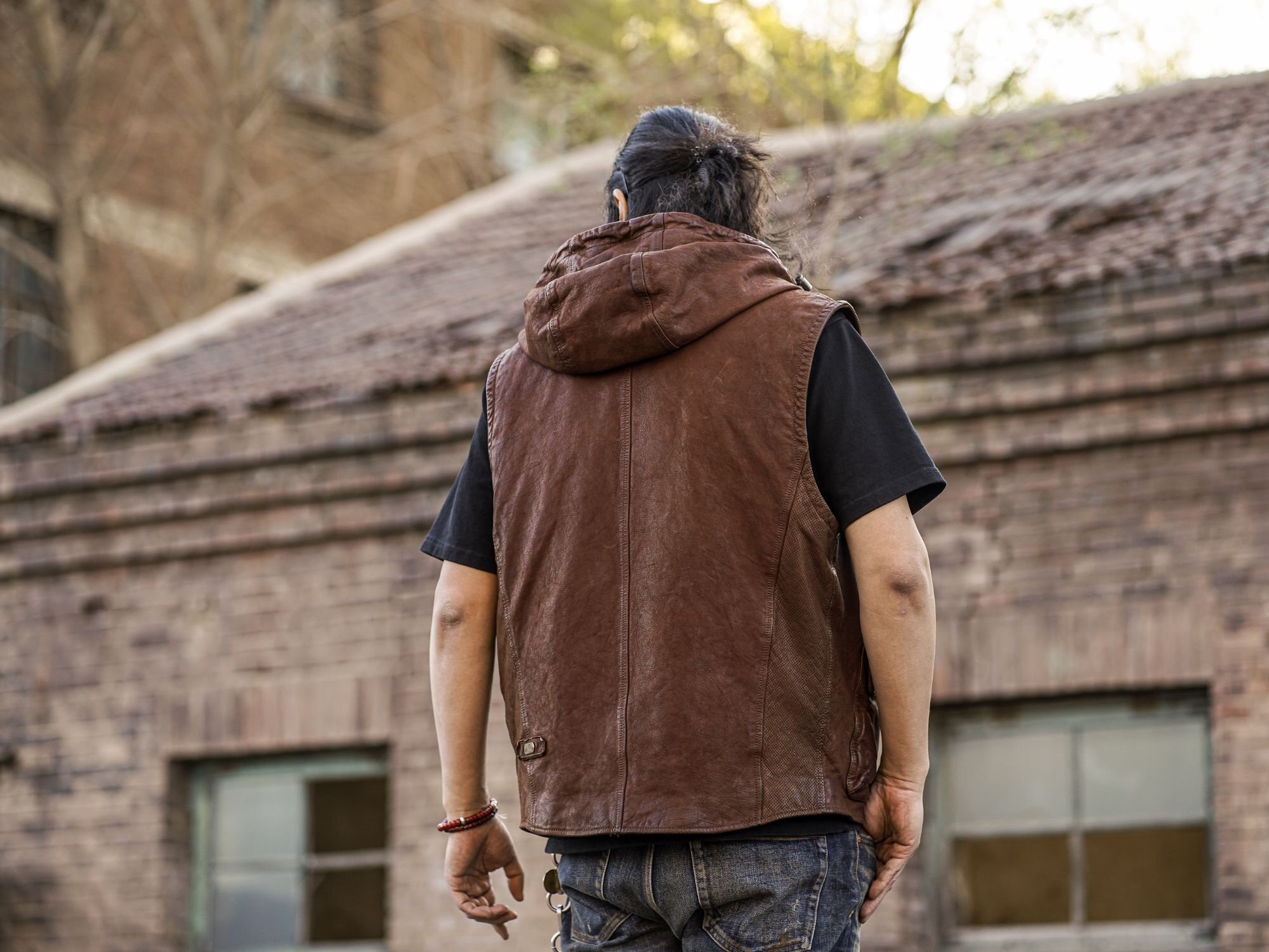 Carnival and Stillness C76009 - Heavy-Duty Washed and Distressed Goatskin Vest with Hood, Vintage Casual Genuine Leather Waistcoat