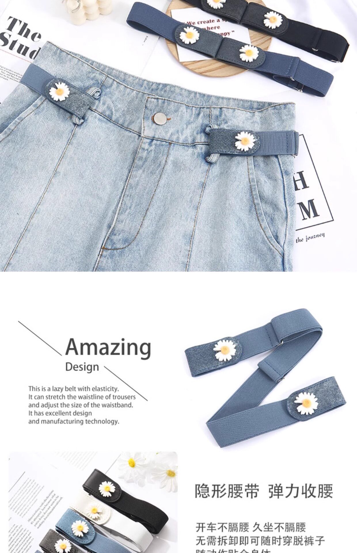 New Style Lazy Belt for Women, Elastic Waistband for Jeans, Magic Belt to Adjust Waist Size, Magic Tool to Tighten Pants Waist