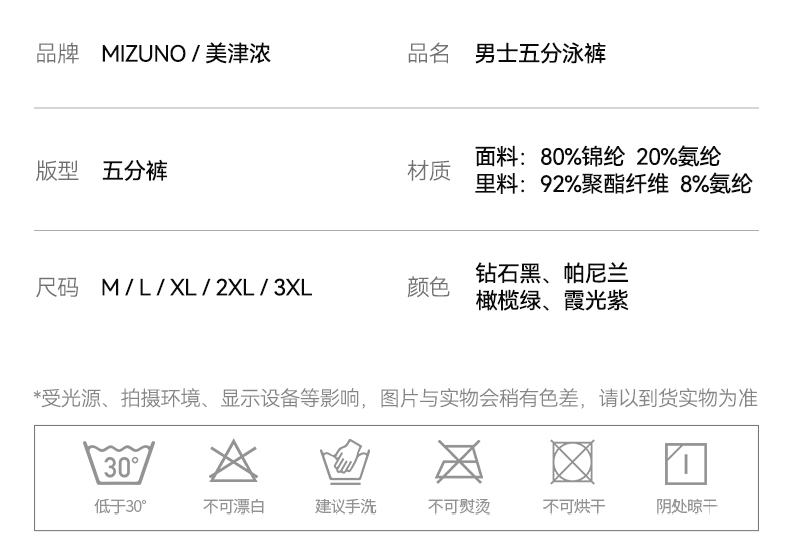 Mizuno Swimming Trunks Men's 2025 New arrival Adult Half Length Quick-drying Anti-chlorine Anti-embarrassment Racing Professional Men Swimming Trunks