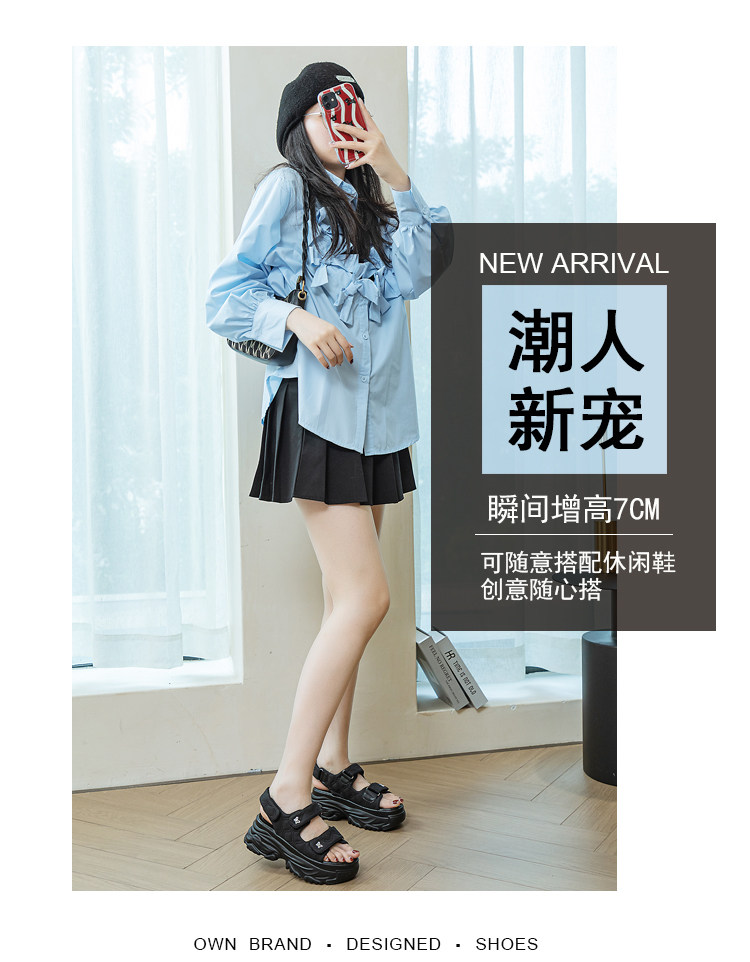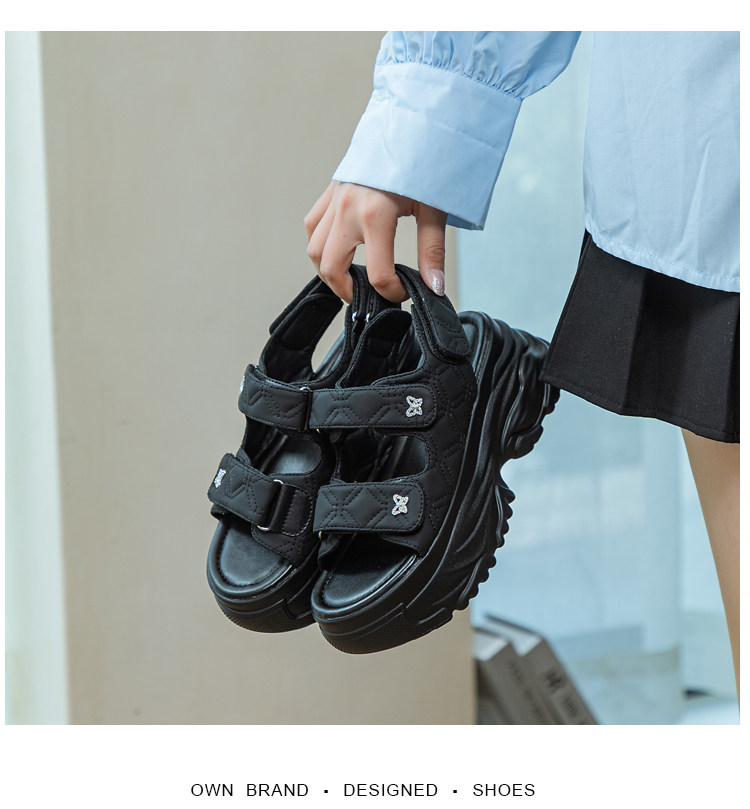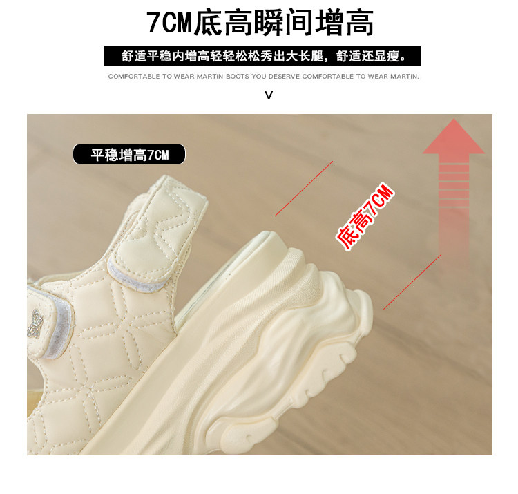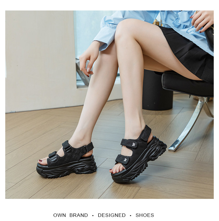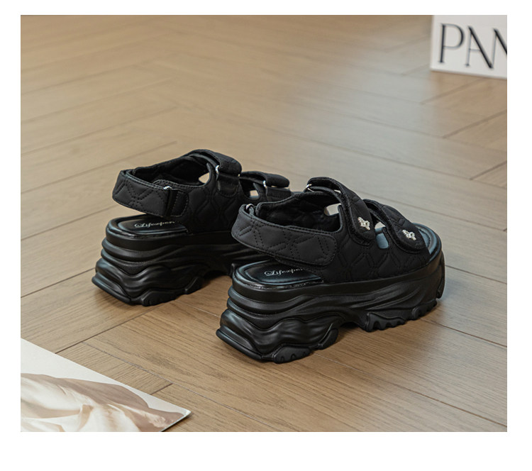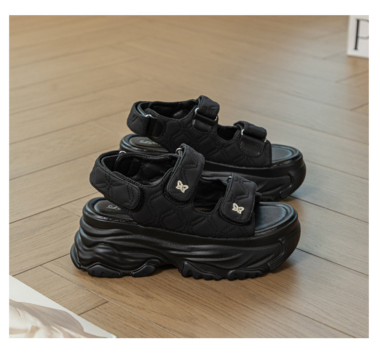 Tweed Style Thick-Soled Buckle Sandals 2025 Summer New Open-Toe Velcro Outer Sandals Pure Color Fashionable Beige