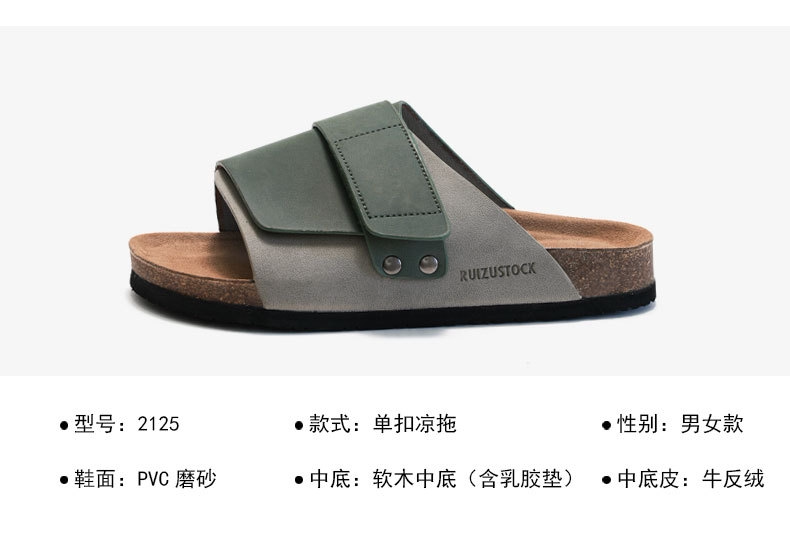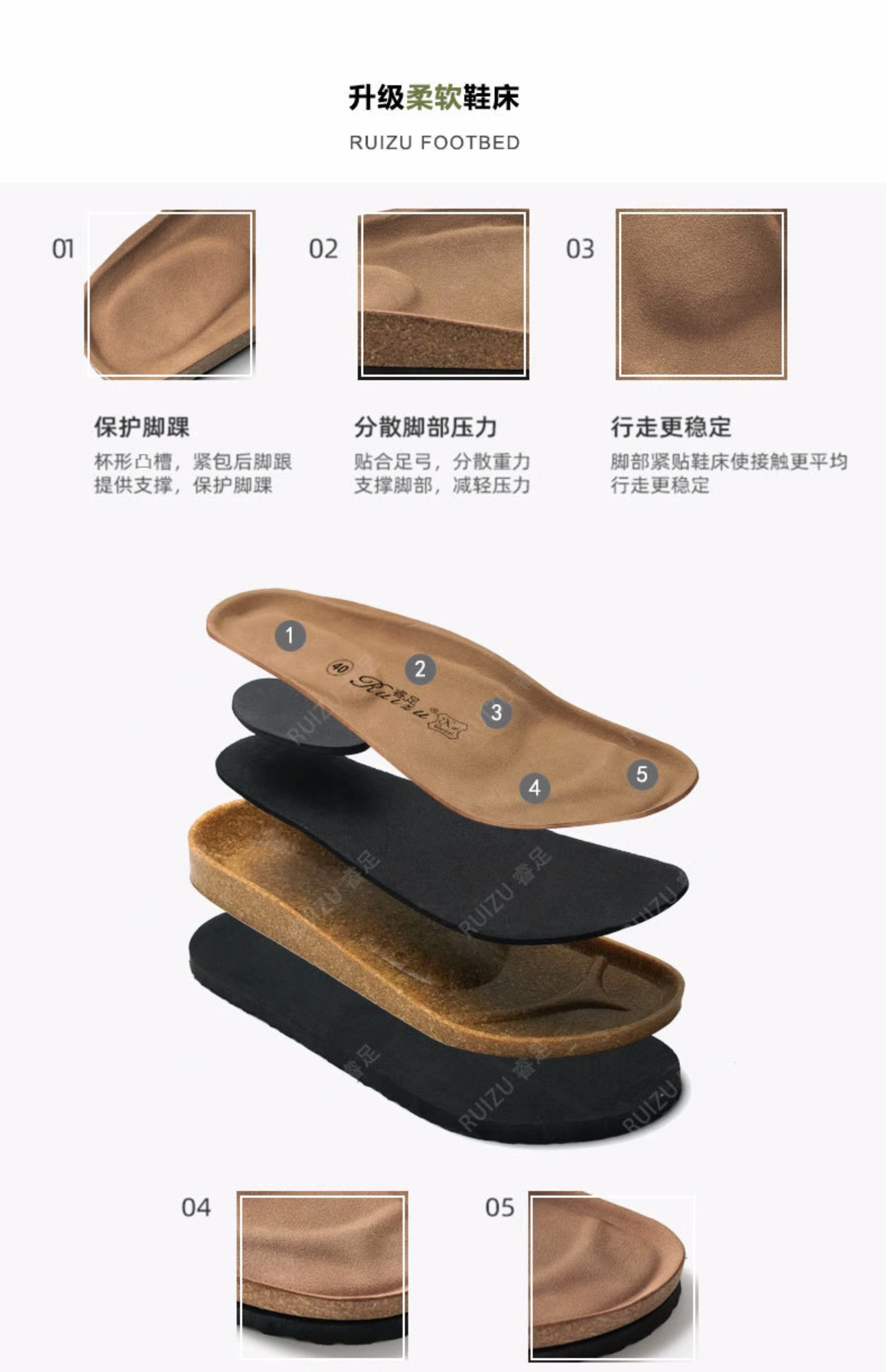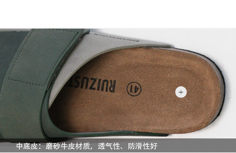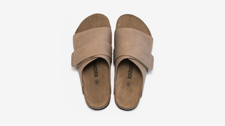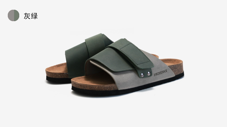 Cork Slipper Genuine Leather Matte Outdoor Men's Cork Slippers Beach Soft Sole Water-Resistant Student Sandals