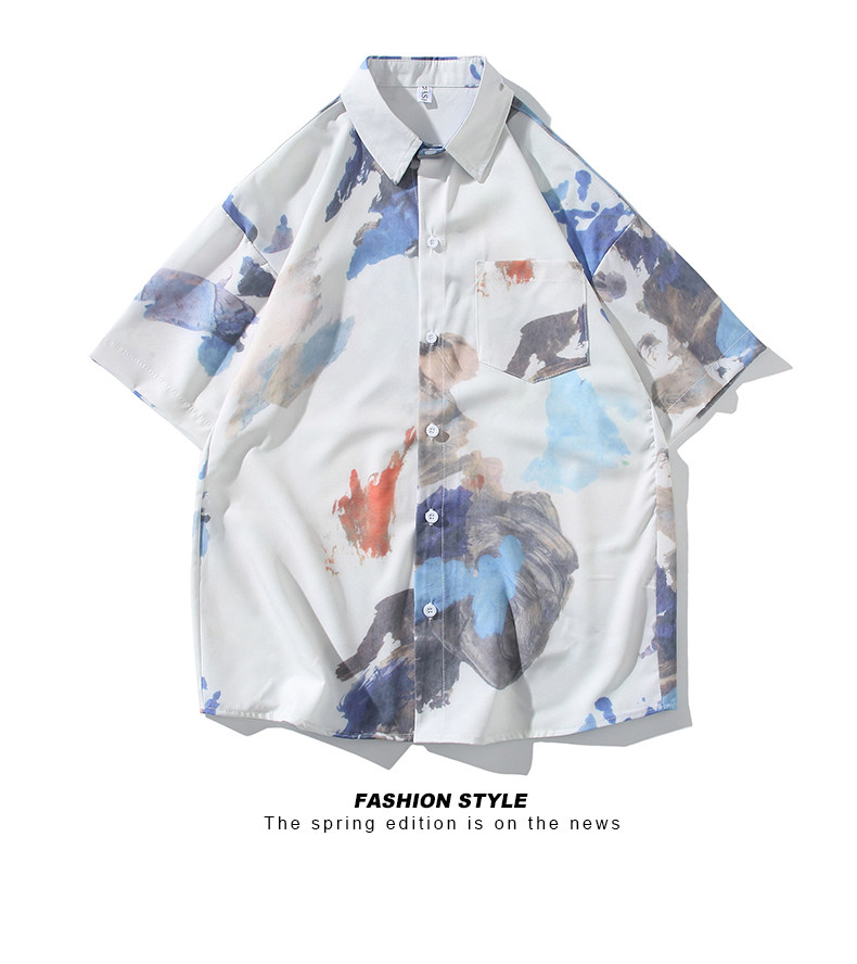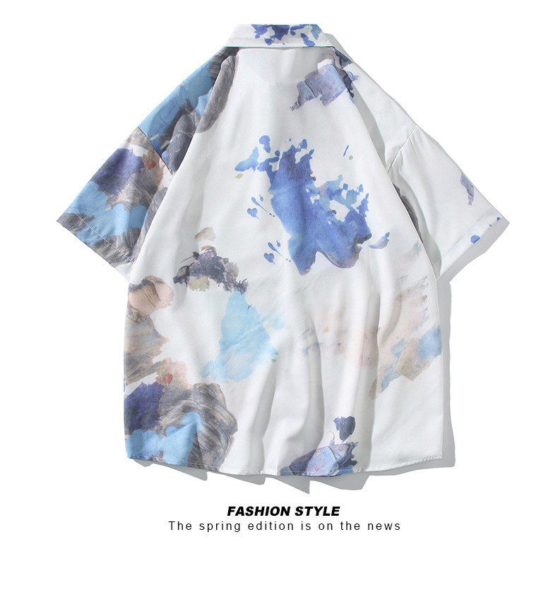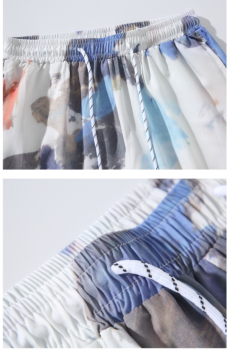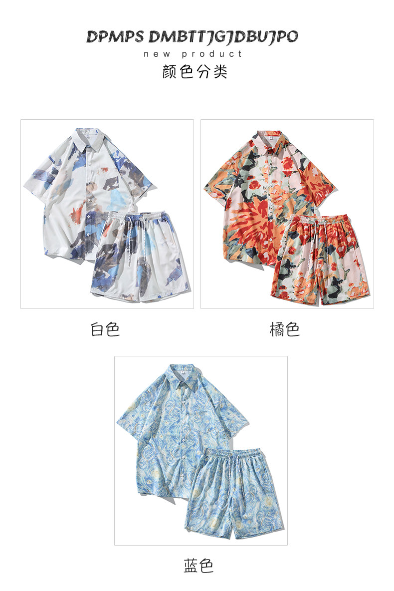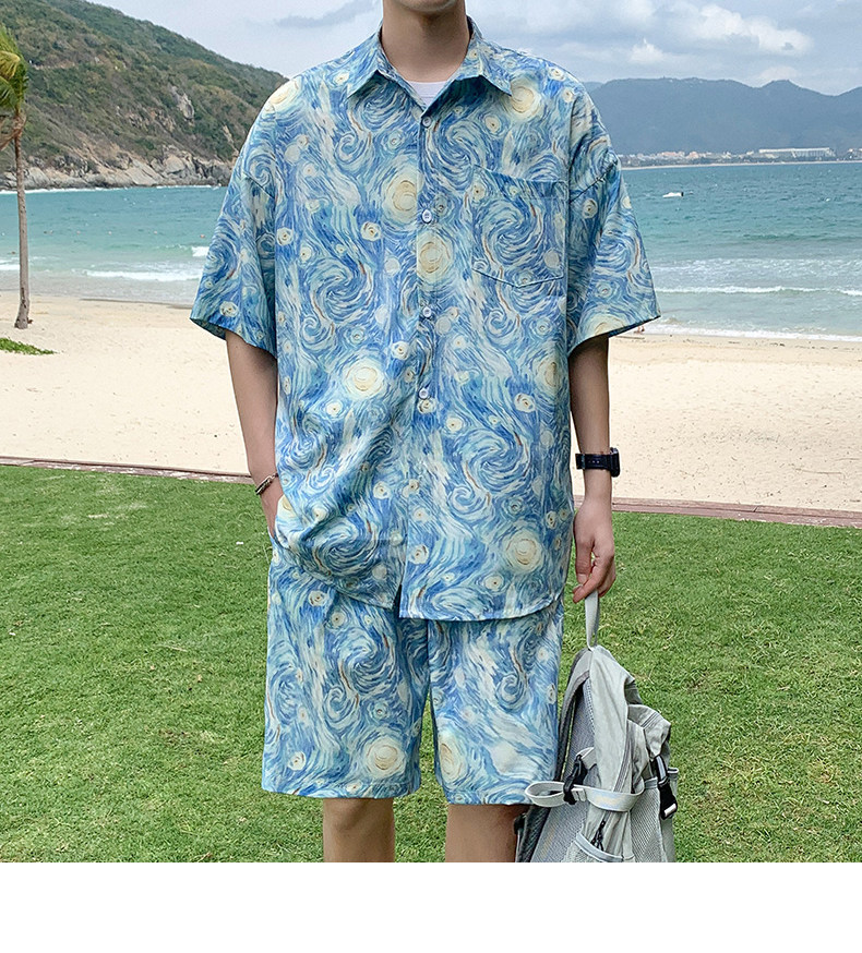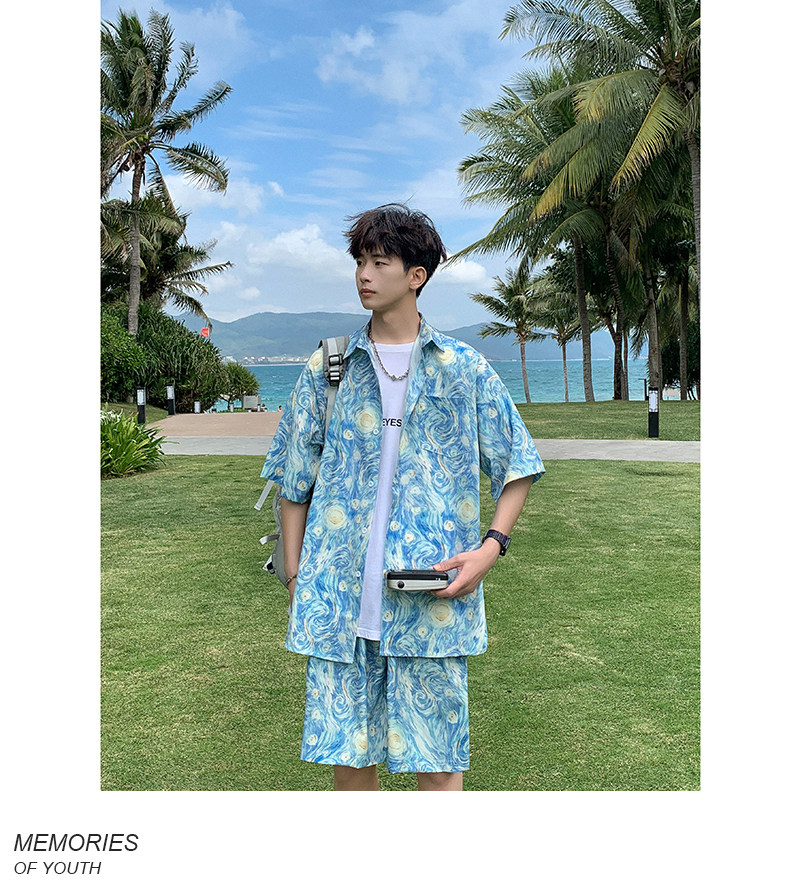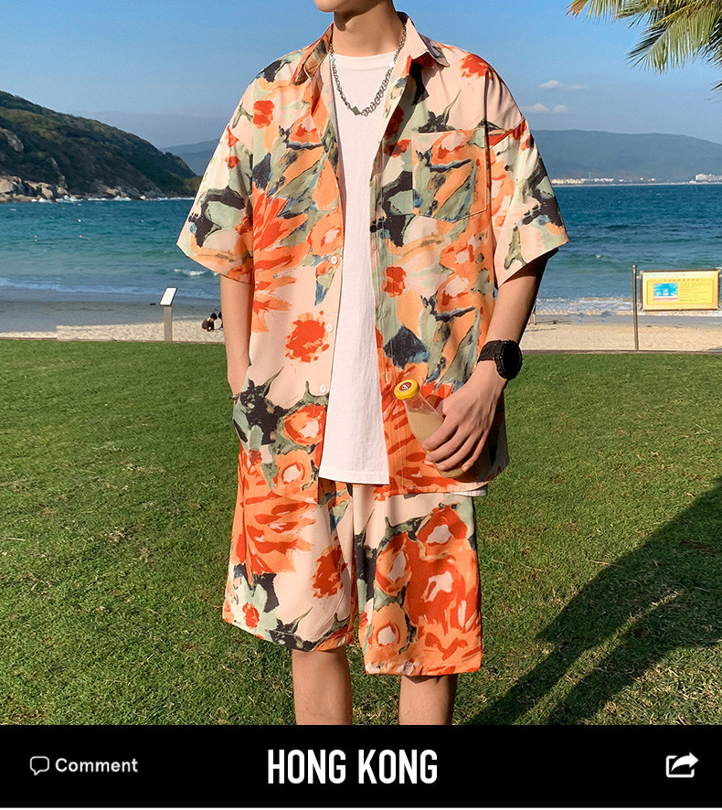 Wassup Happy Ice Silk Beach Short-Sleeved Shirt Set Men's Summer Thin Shorts Loose Sports Two-Piece Set