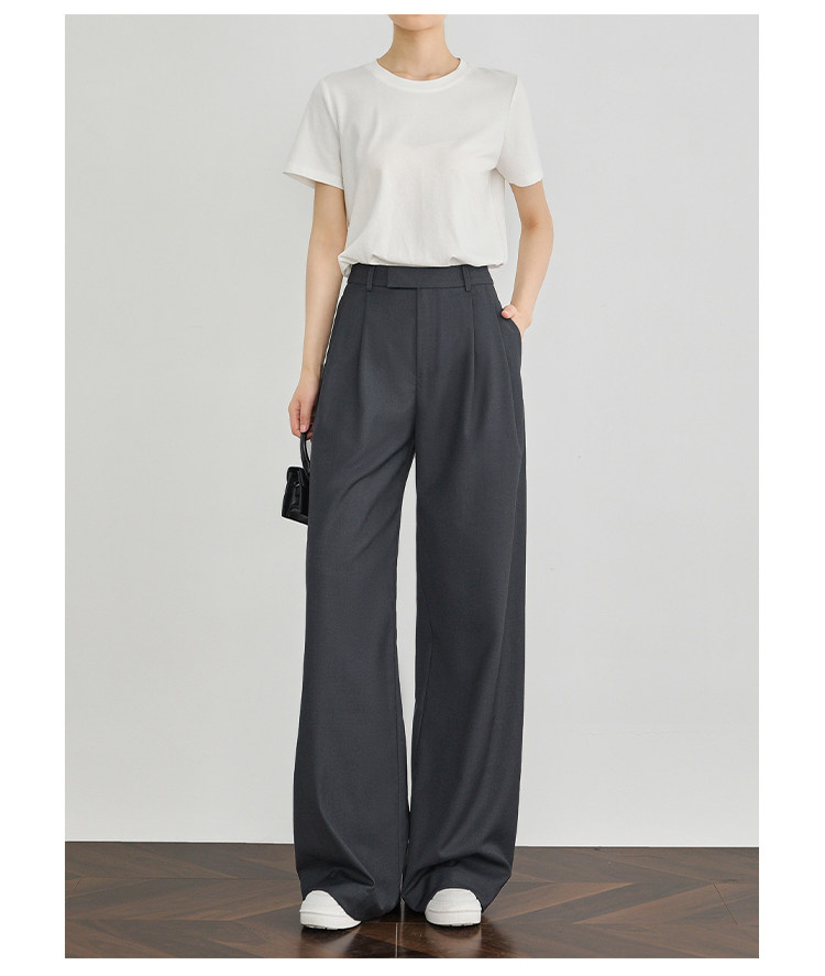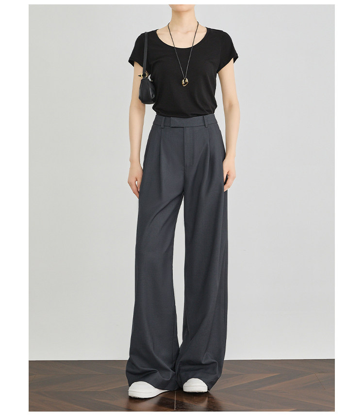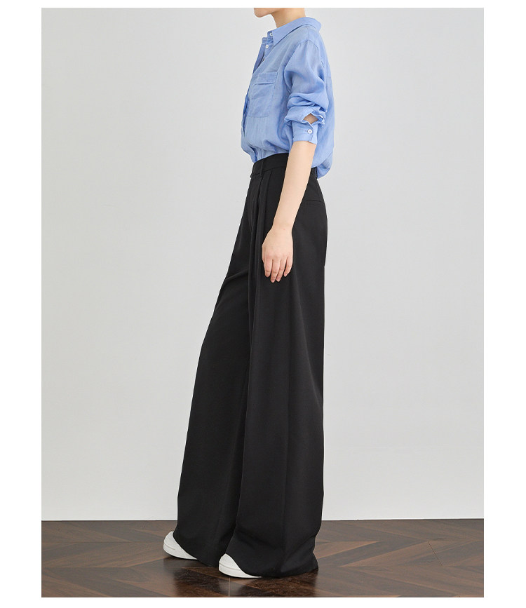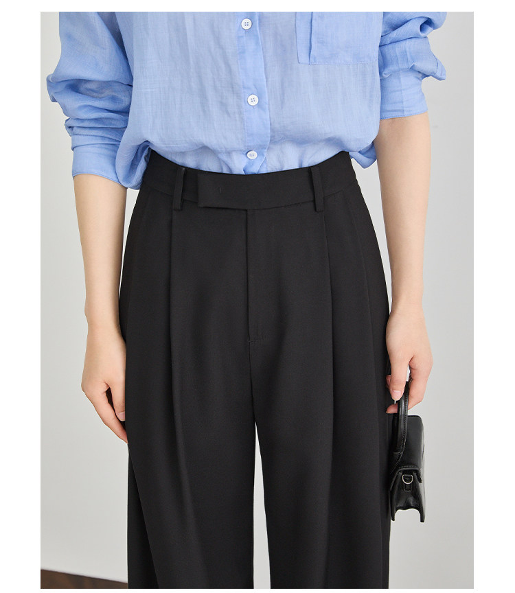Faesslin【A4 Waist Slimming】Black High-Waisted Suit Pants for Women, Spring and Autumn, High-End Drape, Casual Straight-Leg Wide-Leg Pants