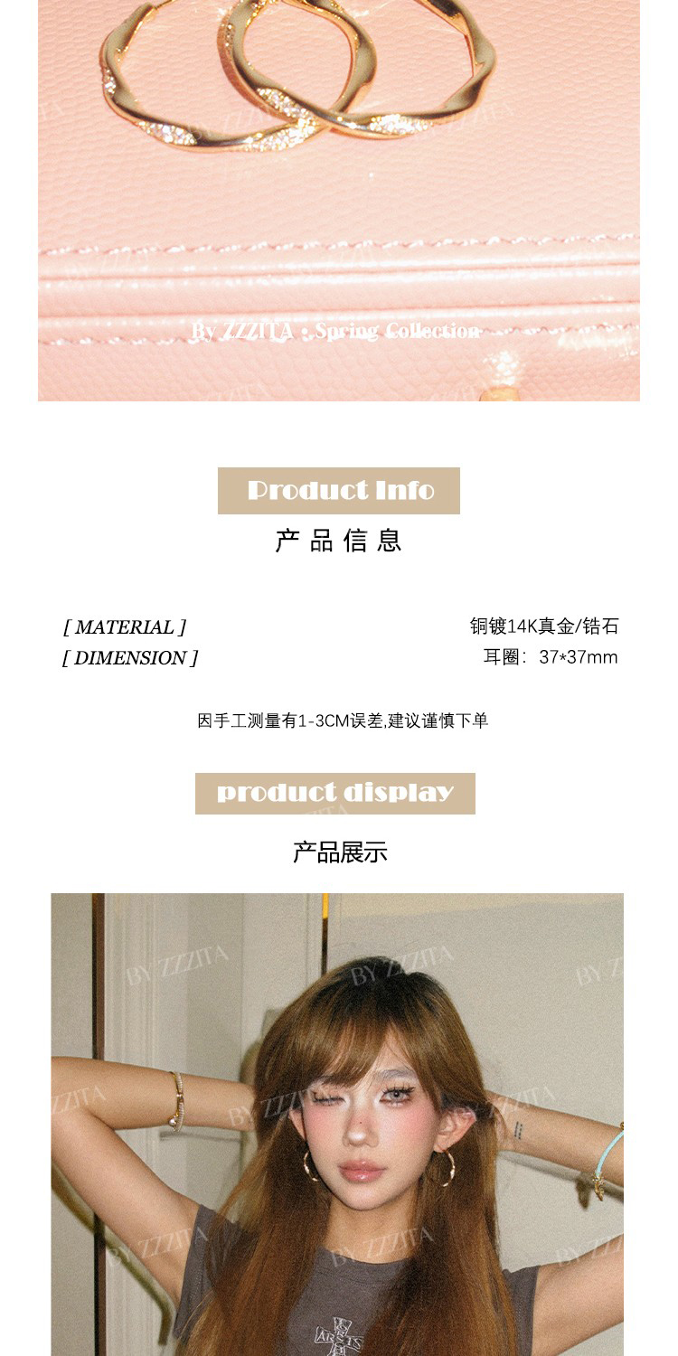 Zzzita Bling Twist·Face-Slimming Cheat~ American-Style Sparkling Diamond Twist Simple Versatile Hoop Earrings