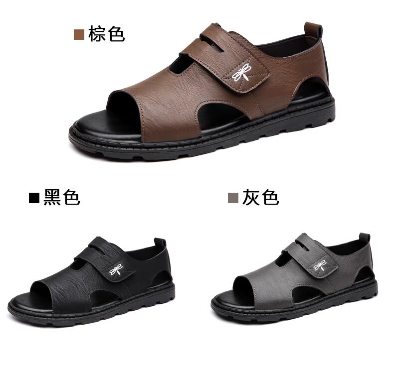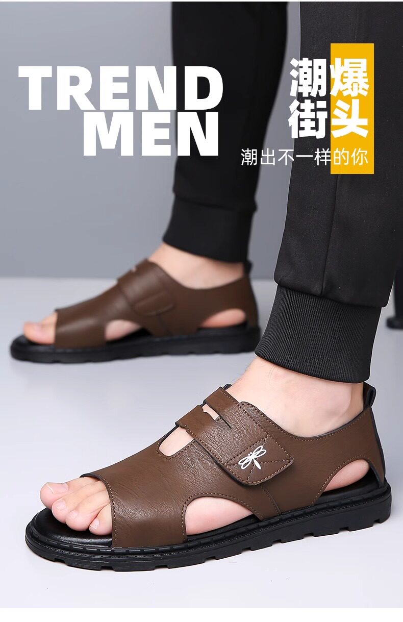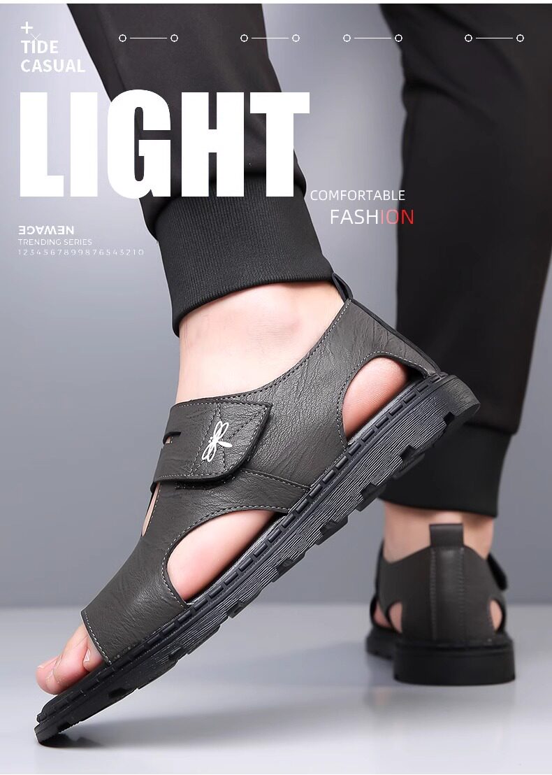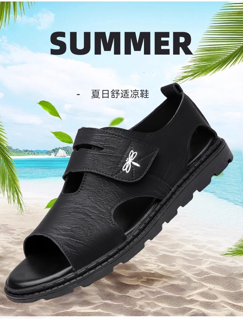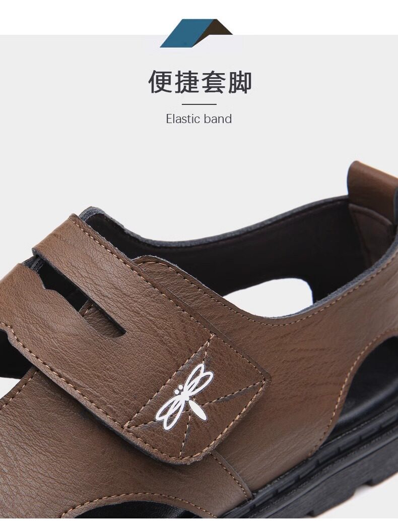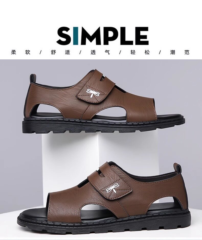 Dragonfly Brand Sandals 2026 New Summer Genuine Leather Casual Beach Shoes Non-Slip Soft Sole Men's Breathable Leather Sandals