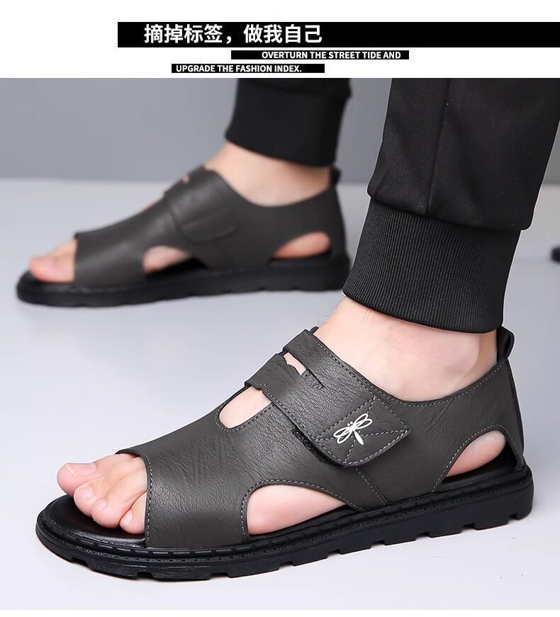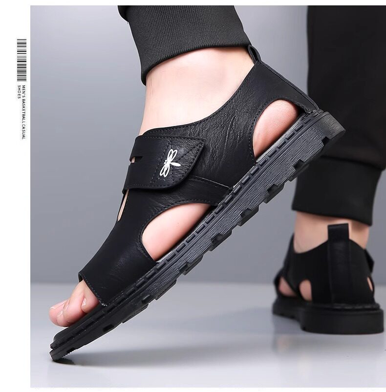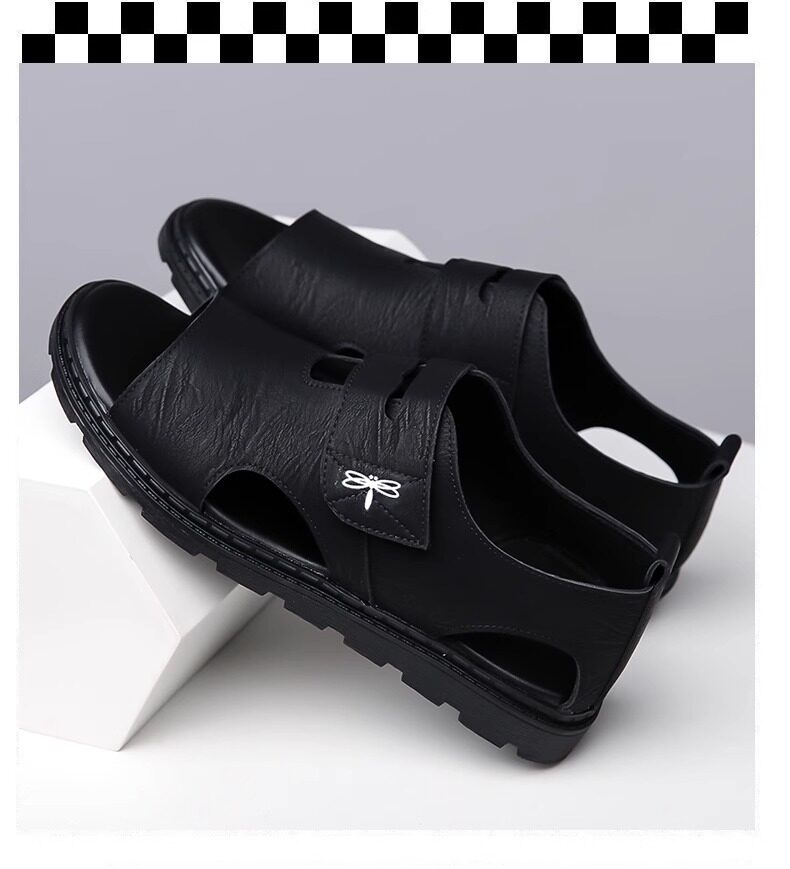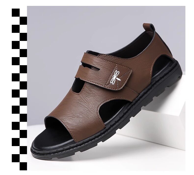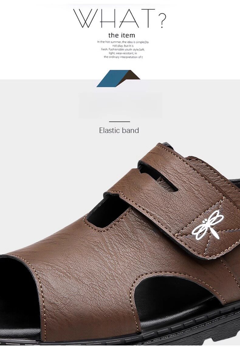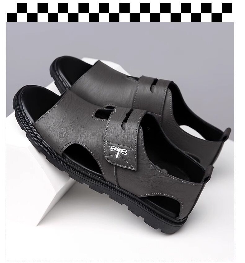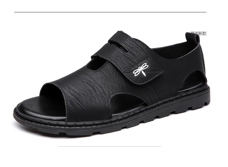 Dragonfly Brand Sandals 2026 New Summer Genuine Leather Casual Beach Shoes Non-Slip Soft Sole Men's Breathable Leather Sandals
