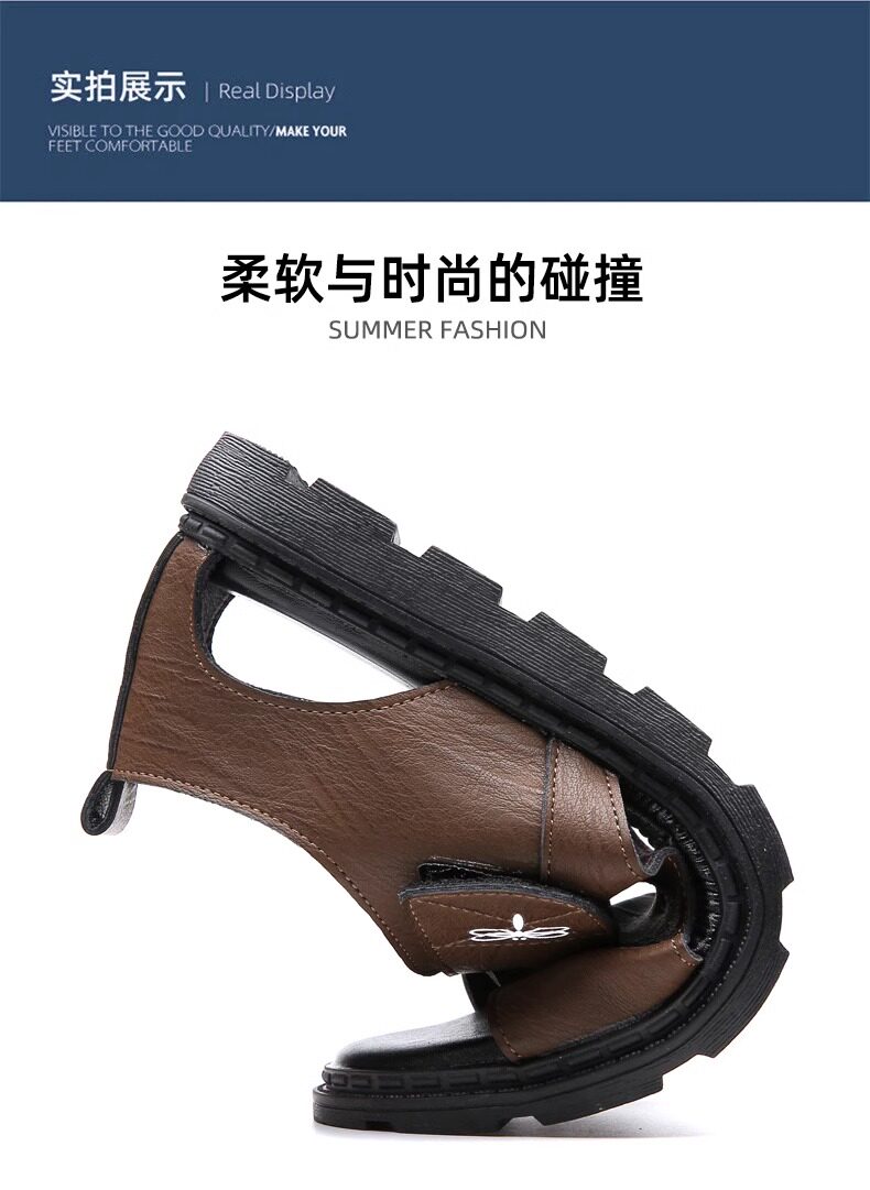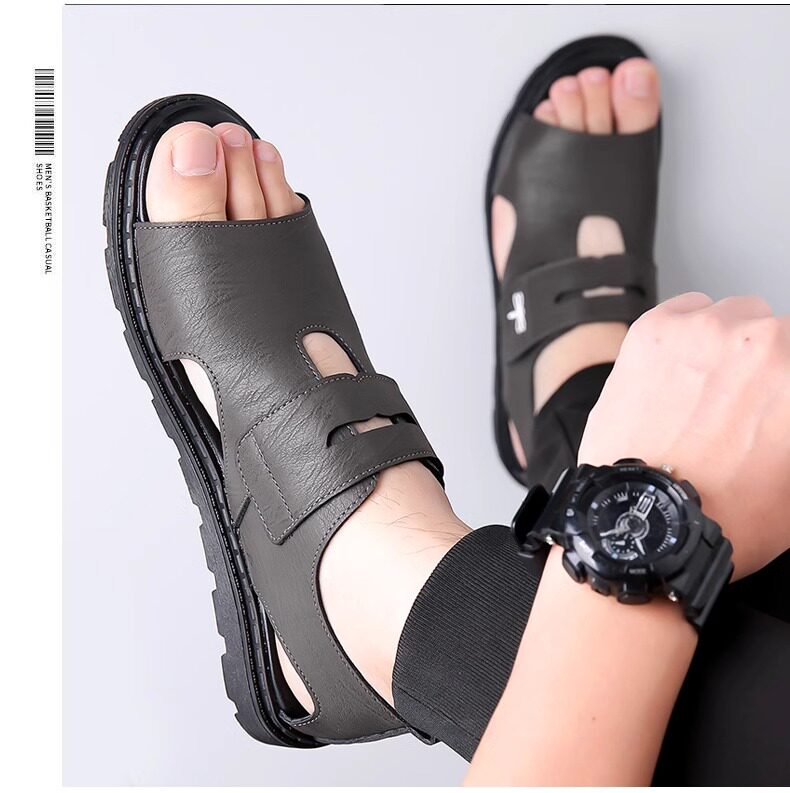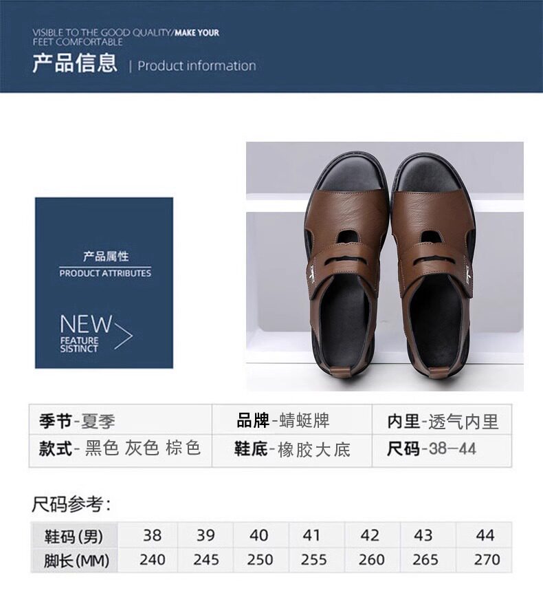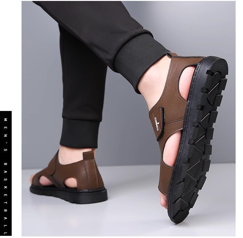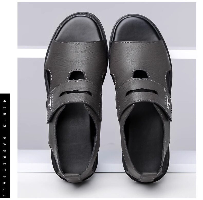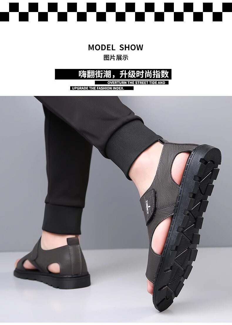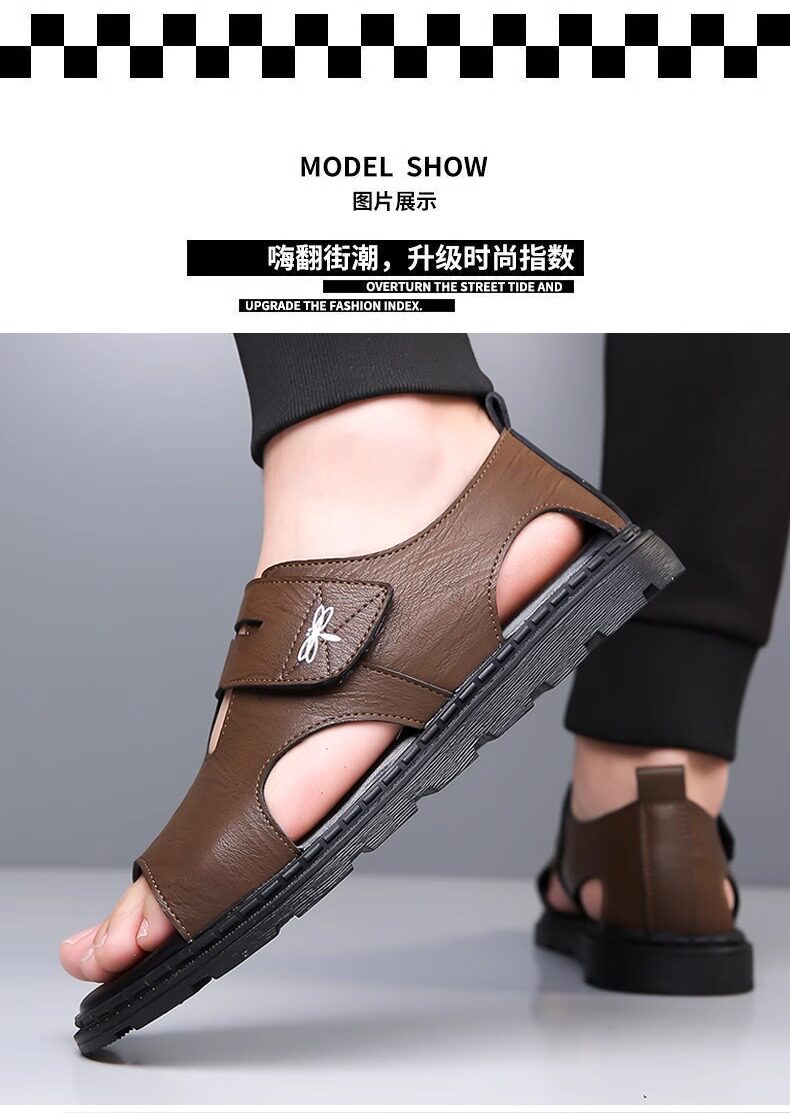 Dragonfly Brand Sandals 2026 New Summer Genuine Leather Casual Beach Shoes Non-Slip Soft Sole Men's Breathable Leather Sandals