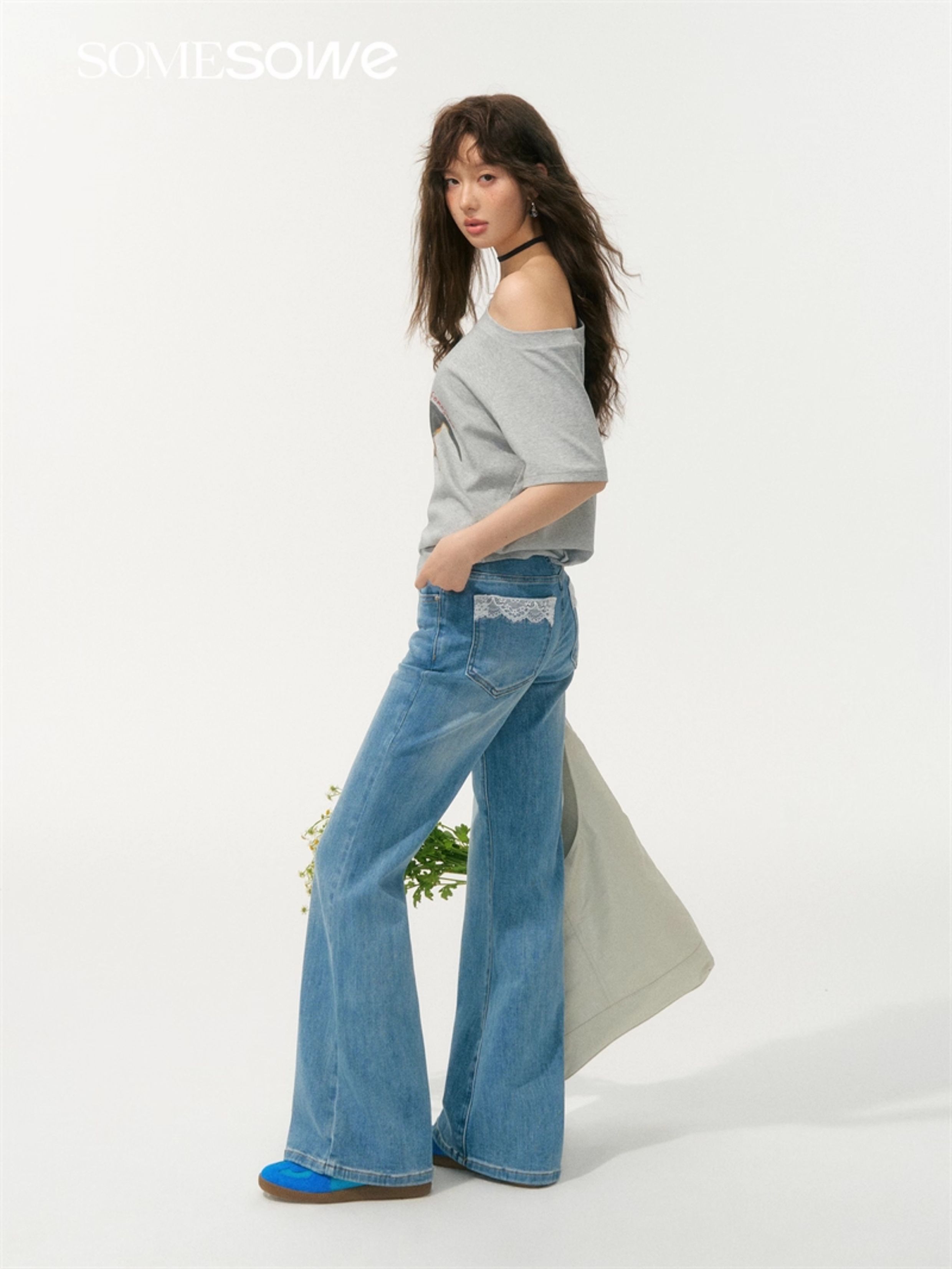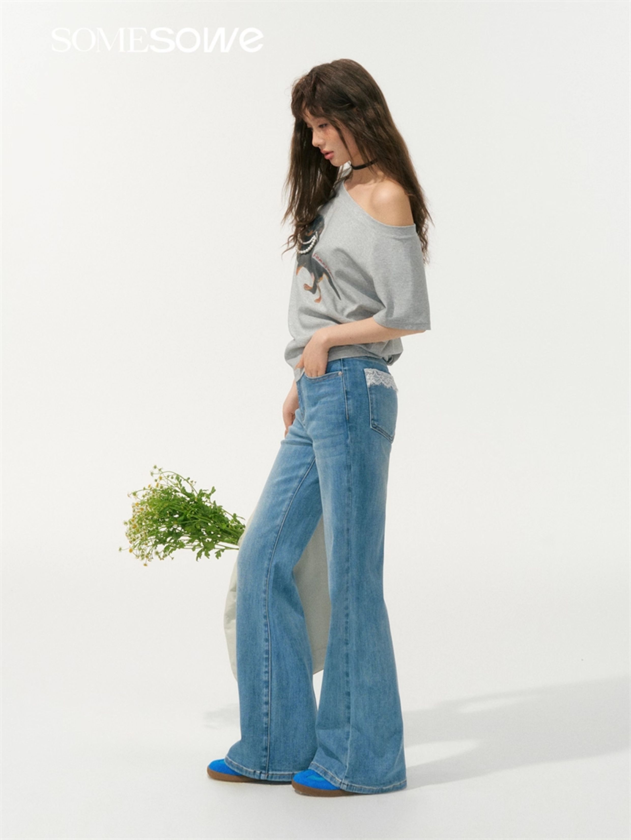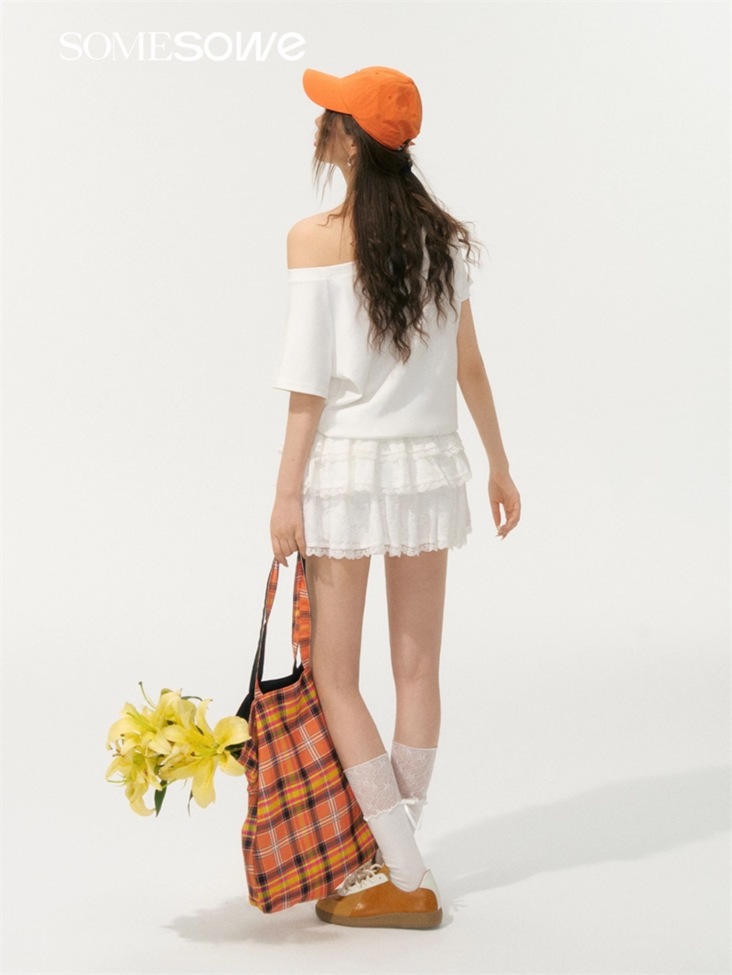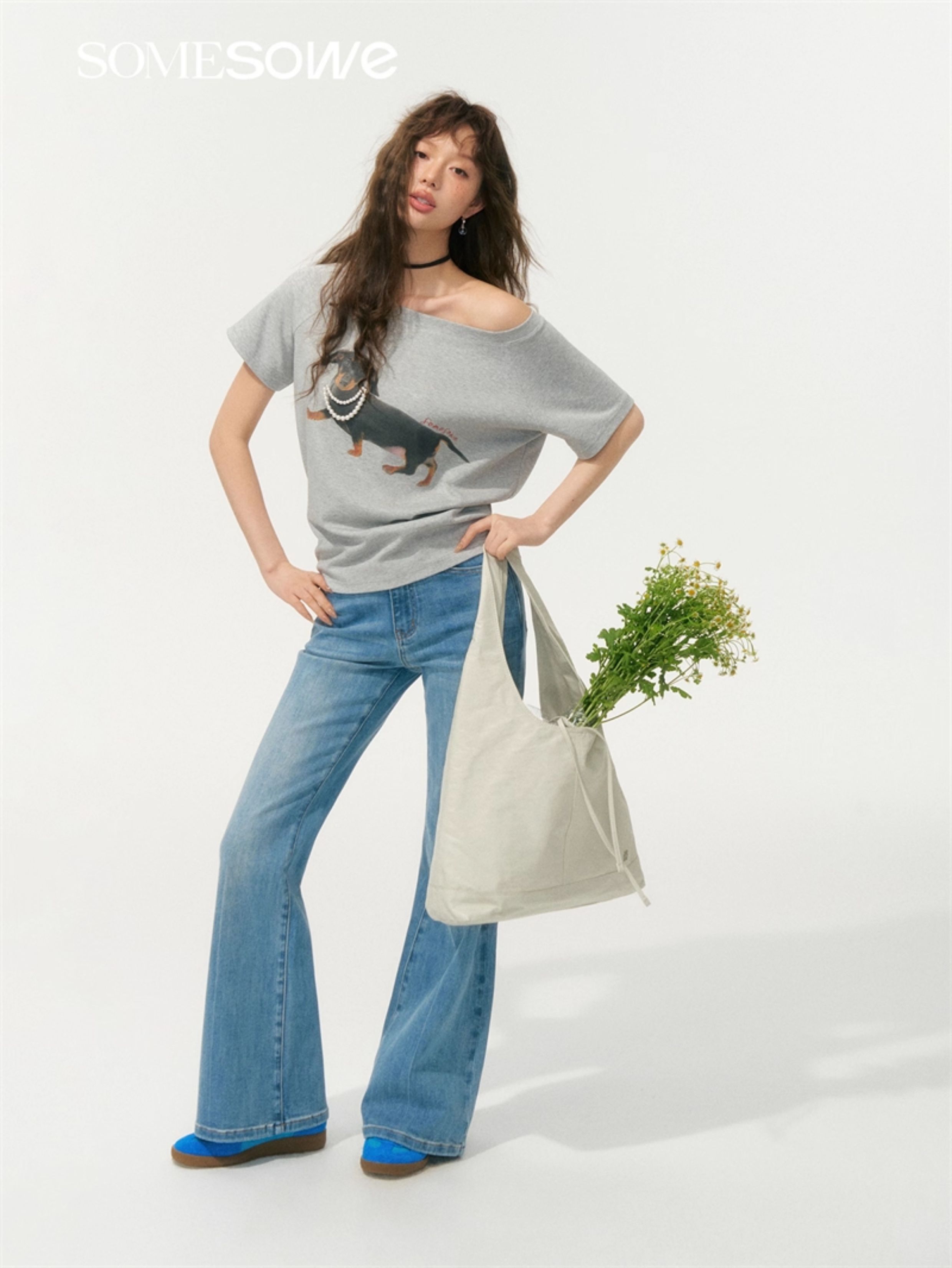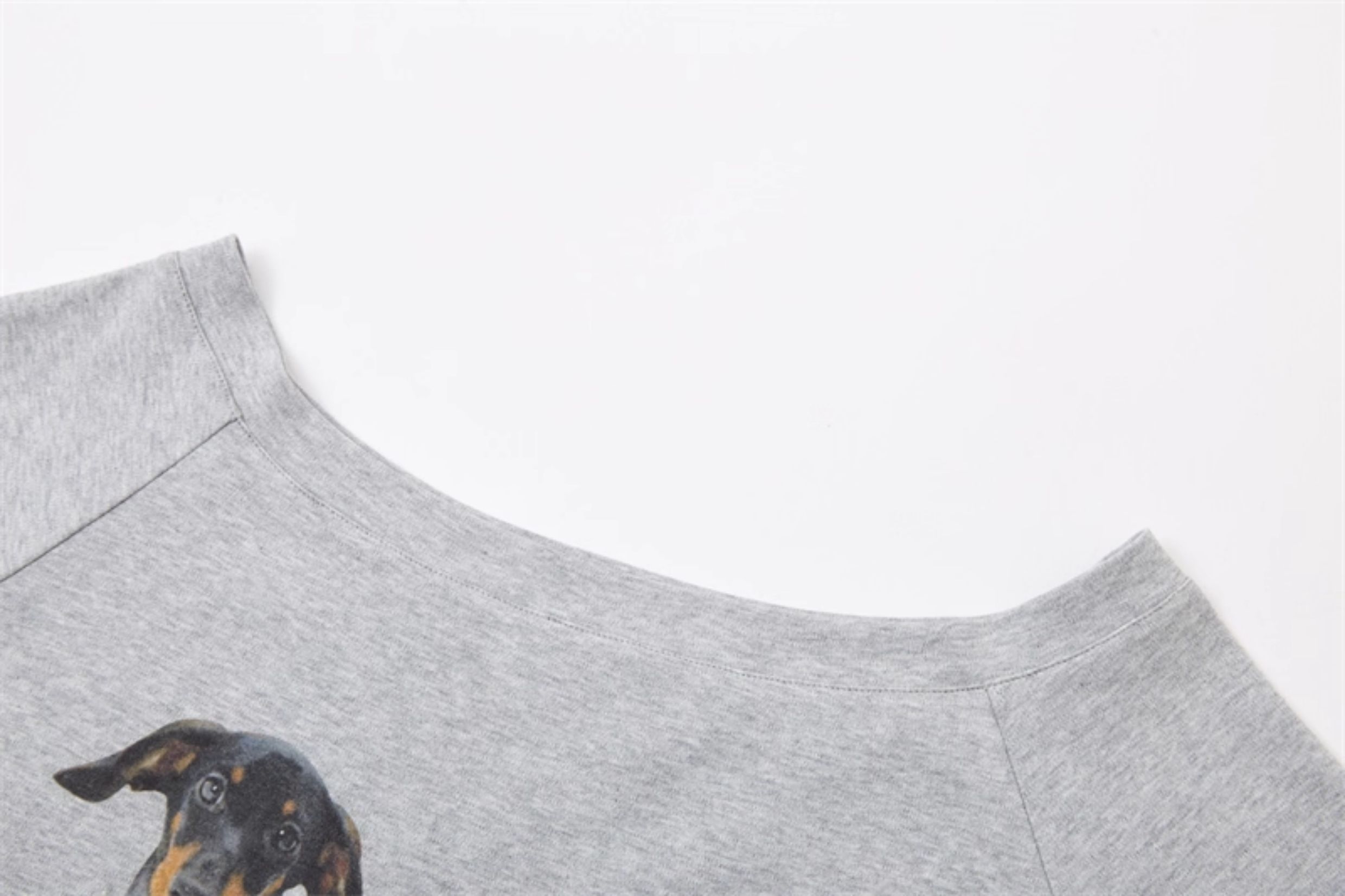 Xu Ruohan, Han Qizi, and Sun Yi's Same Style Somesowe Pearl Dachshund Off-Shoulder T-Shirt for Women, Designer Top