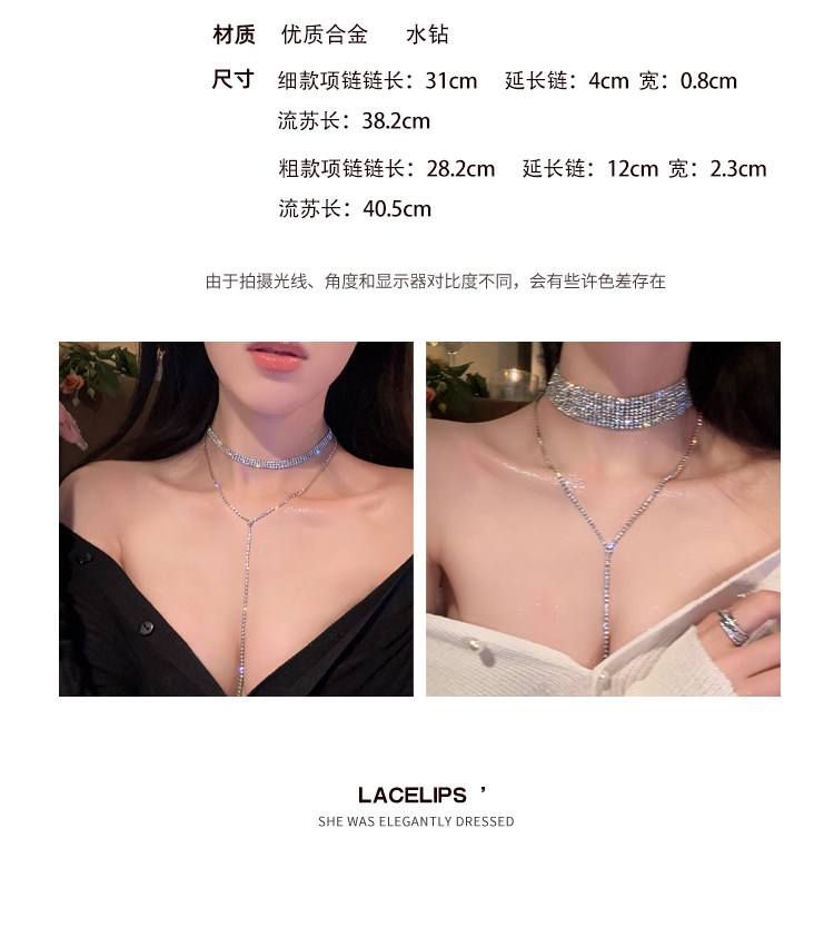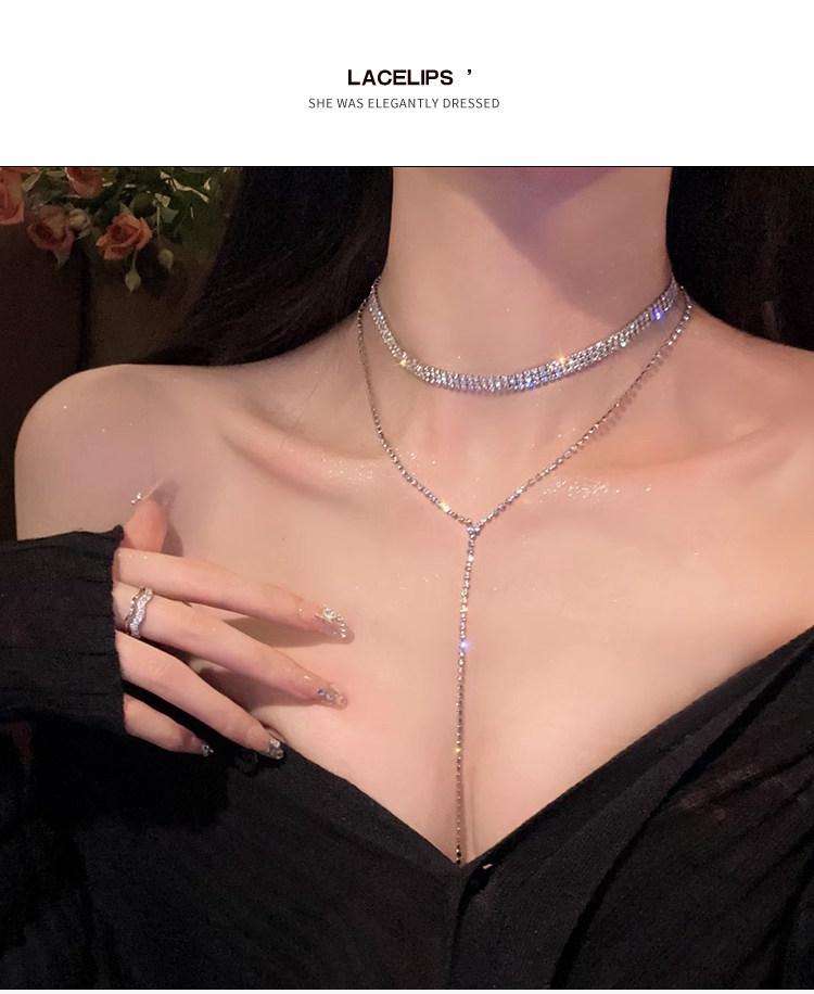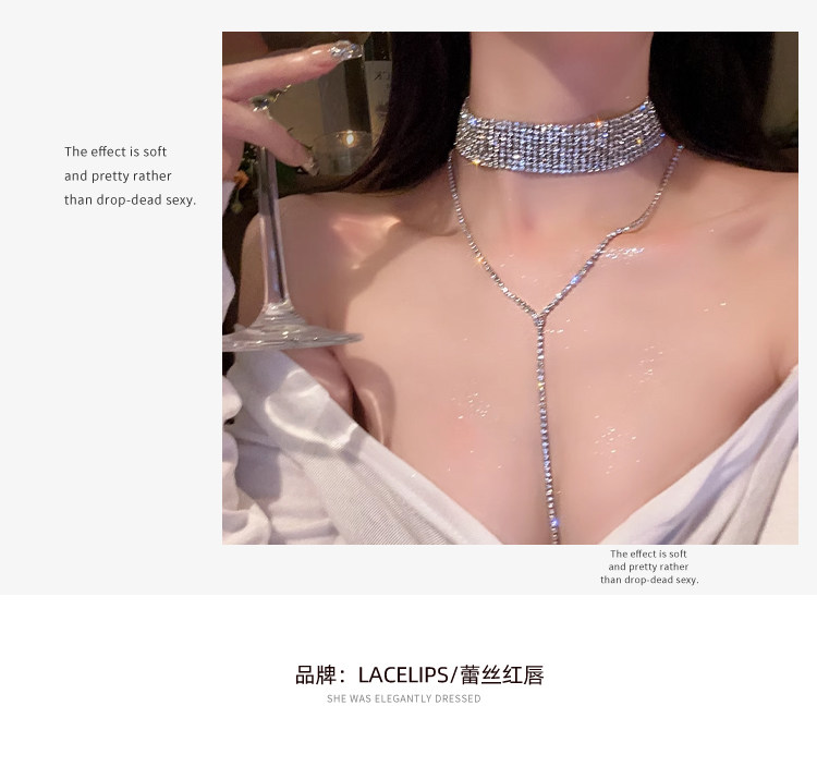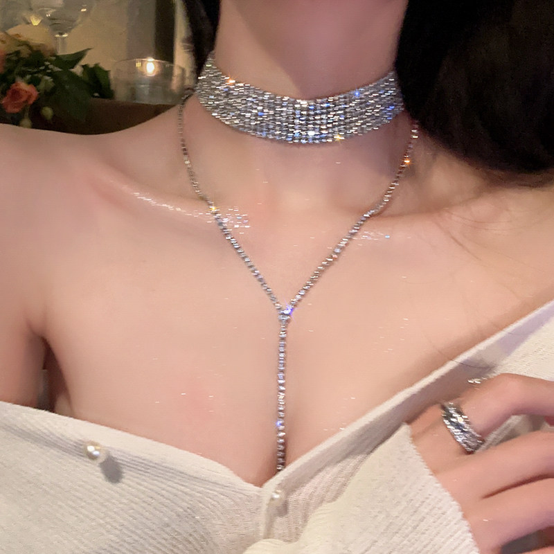 Dinner Together _ Full Diamond Super Shiny Tassel Necklace for Women, Light Luxury Niche Design Chest Chain, High-End Clavicle Chain, Neck Chain
