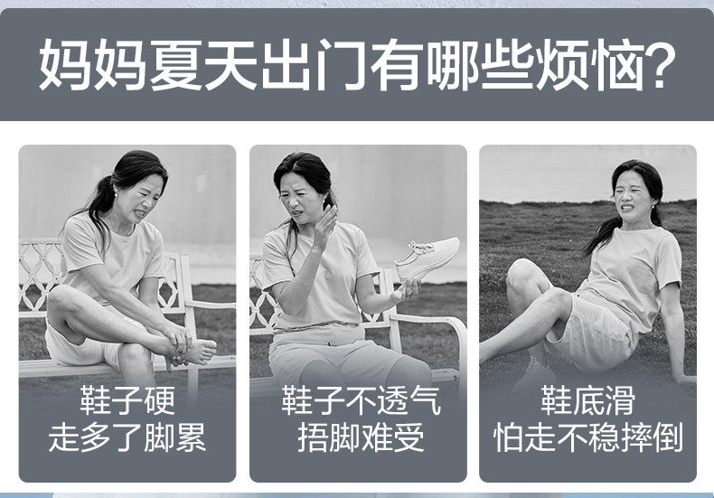 Footliger Elderly Shoes official store Summer Elderly Sandals Slip-On Breathable Mom Shoes Soft Sole Casual Shoes for Women