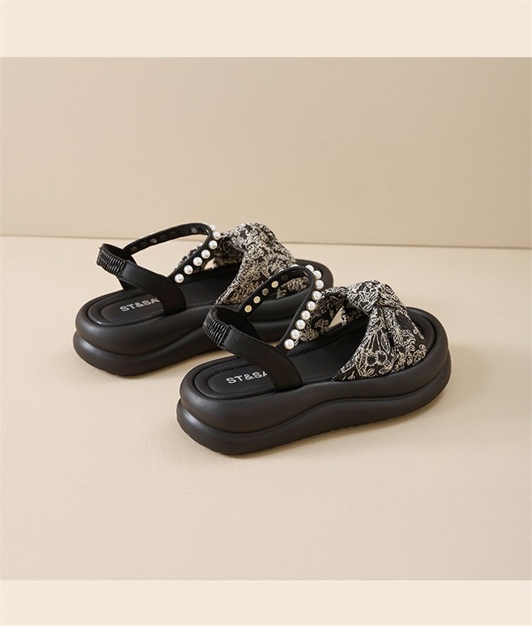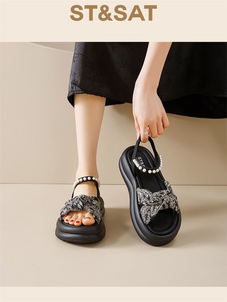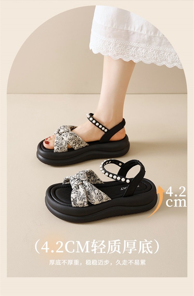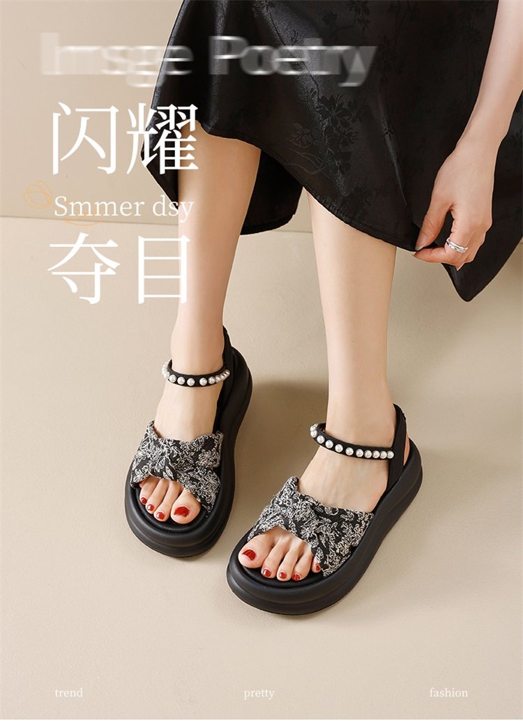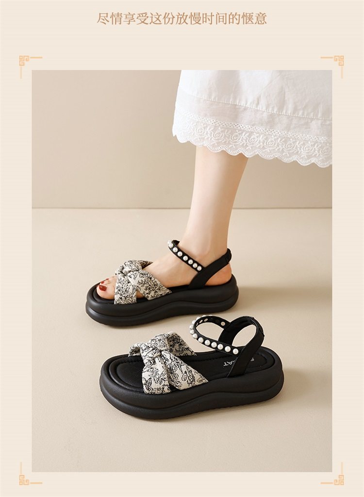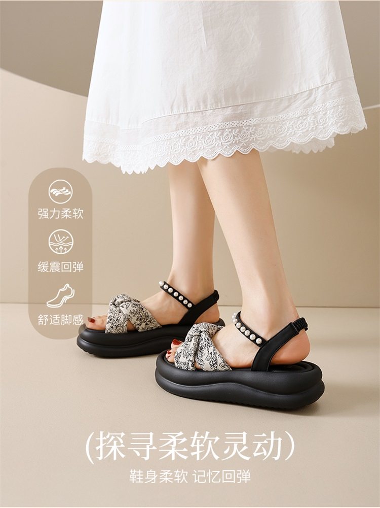 Saturday Thick-Soled Sandals That Don'T Tire Your Feet, Women's Summer Sandals That Go Well with Skirts, Pearl Bow, Super Pretty Women's Sandals