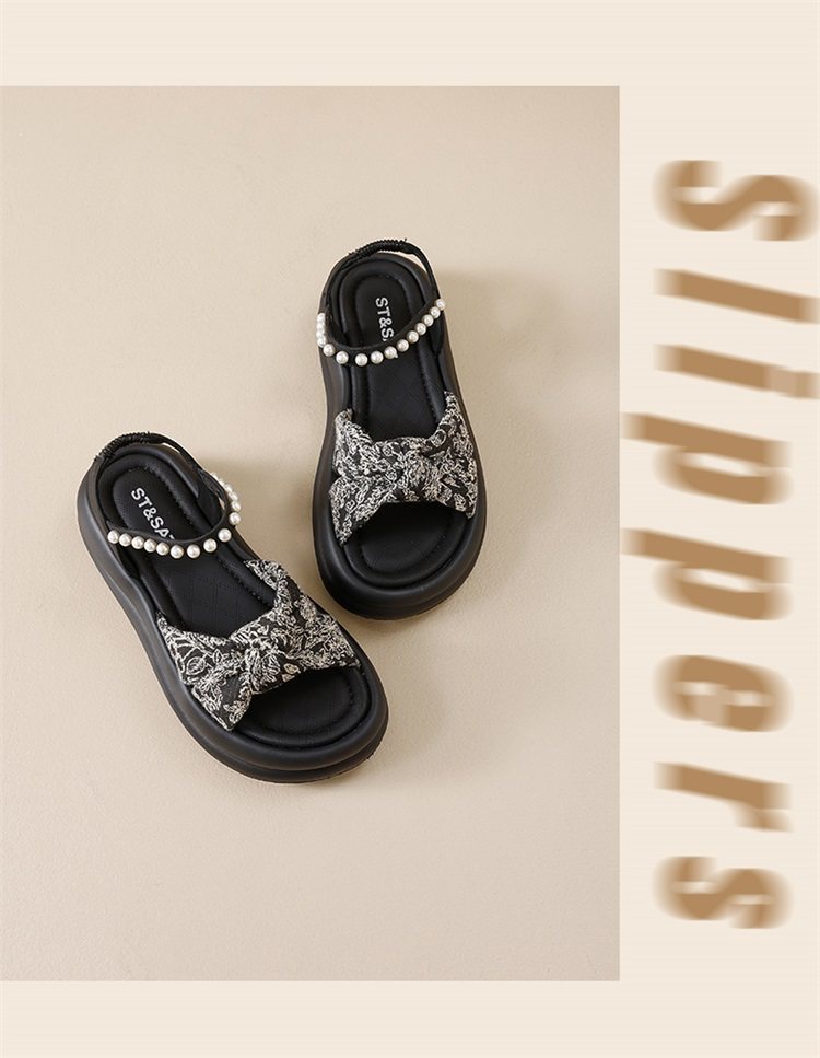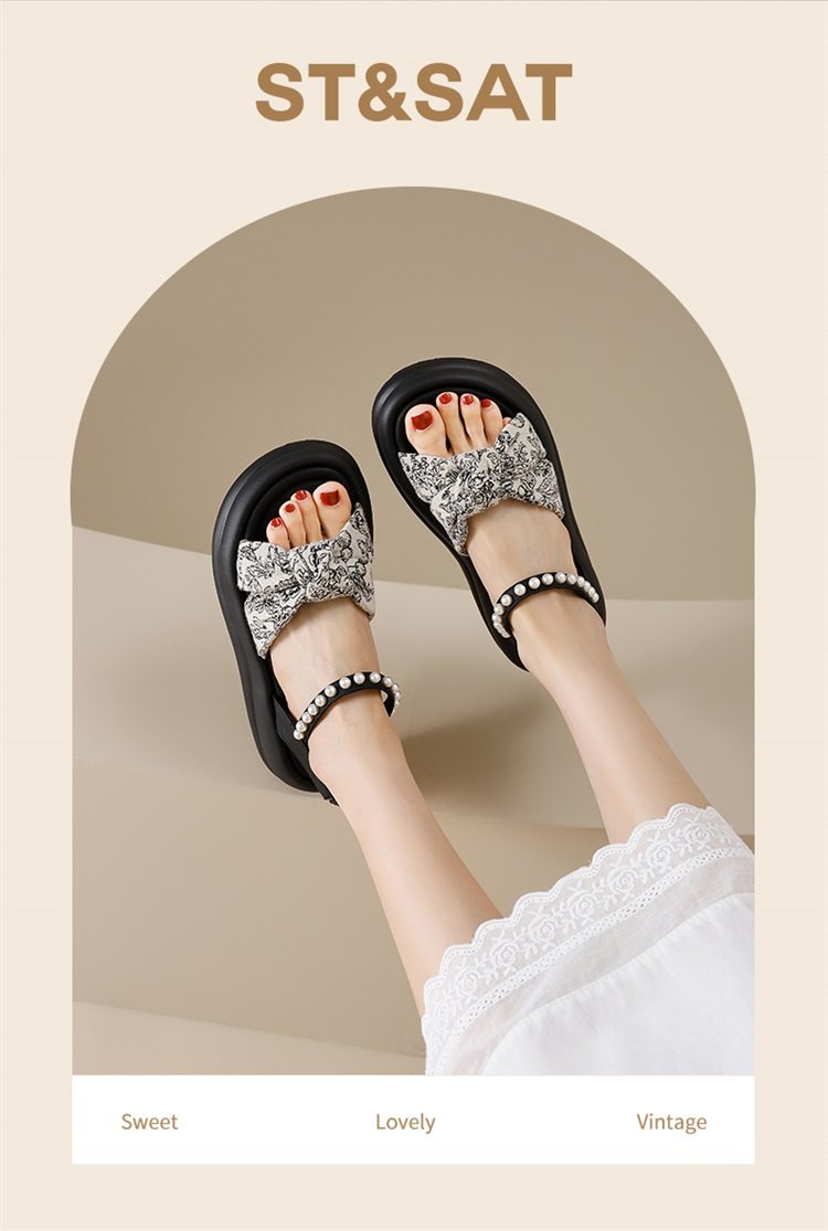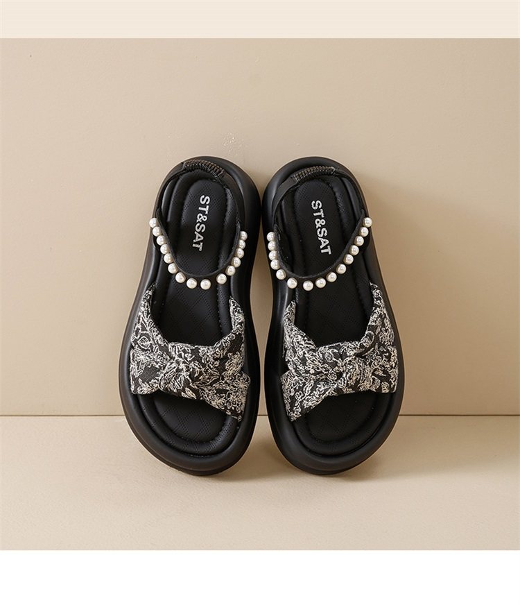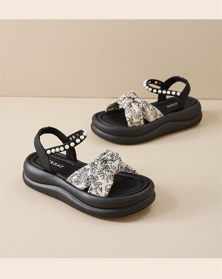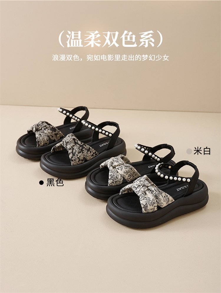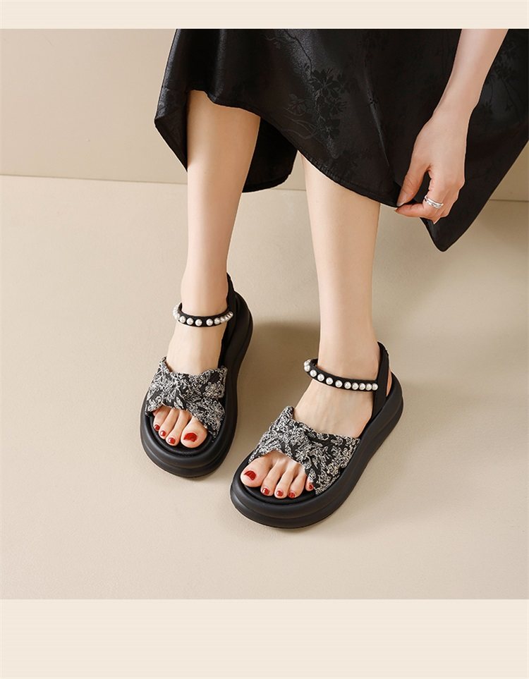Saturday Thick-Soled Sandals That Don'T Tire Your Feet, Women's Summer Sandals That Go Well with Skirts, Pearl Bow, Super Pretty Women's Sandals
